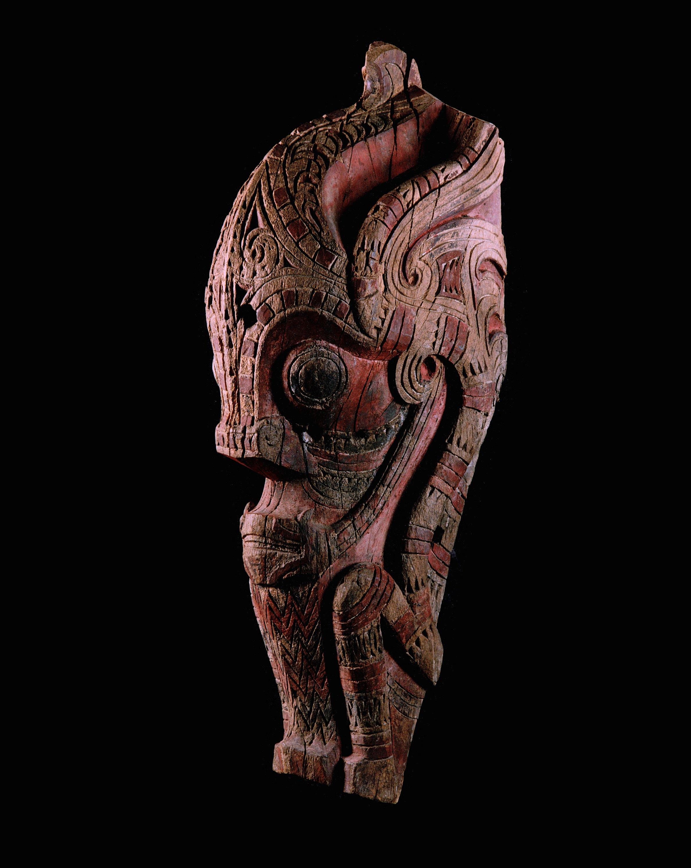 Sumatra, Toba Batak, Samosir Island, a fine carved Singha head,
