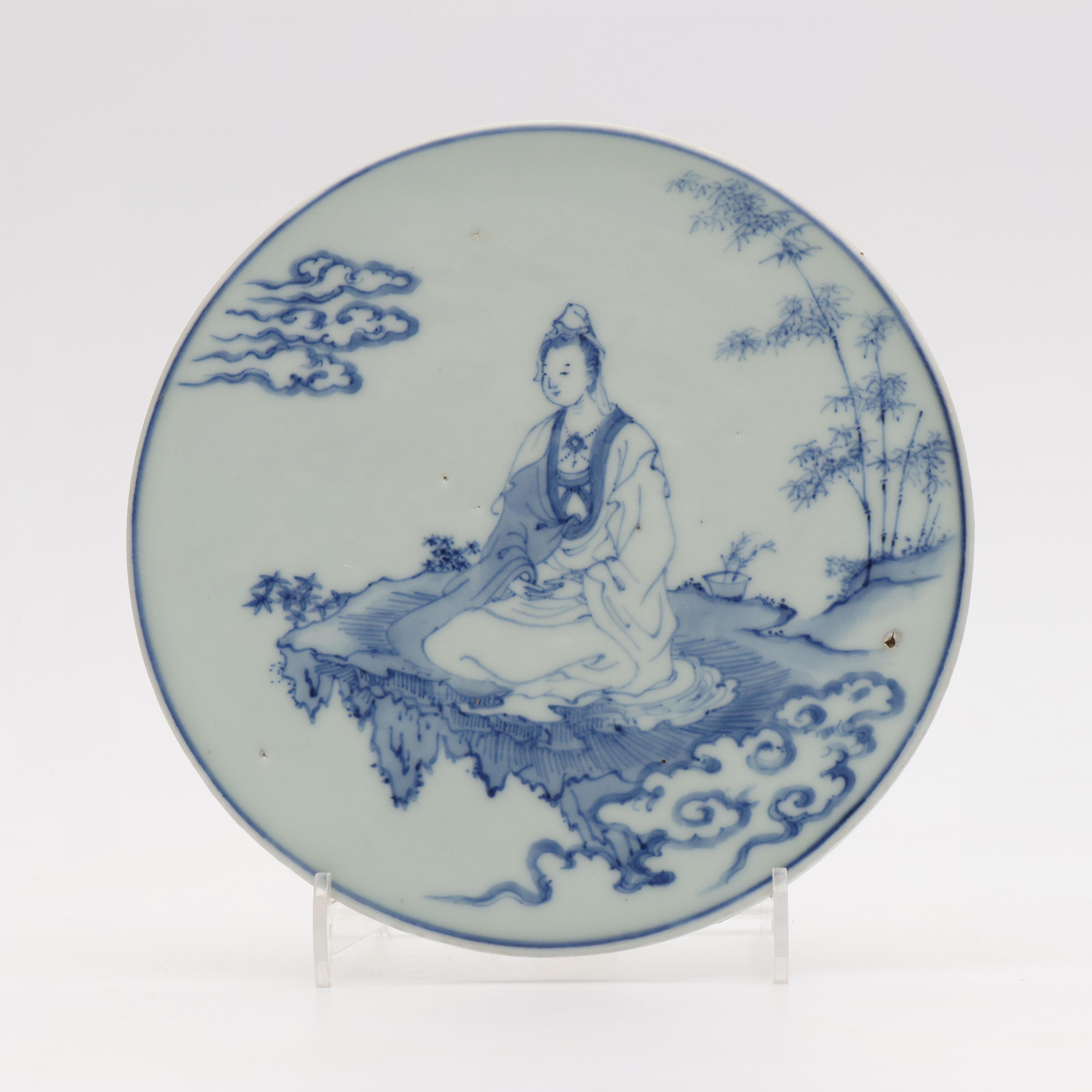 China, a blue and white porcelain roundel, late Qing dynasty (16744-1912),