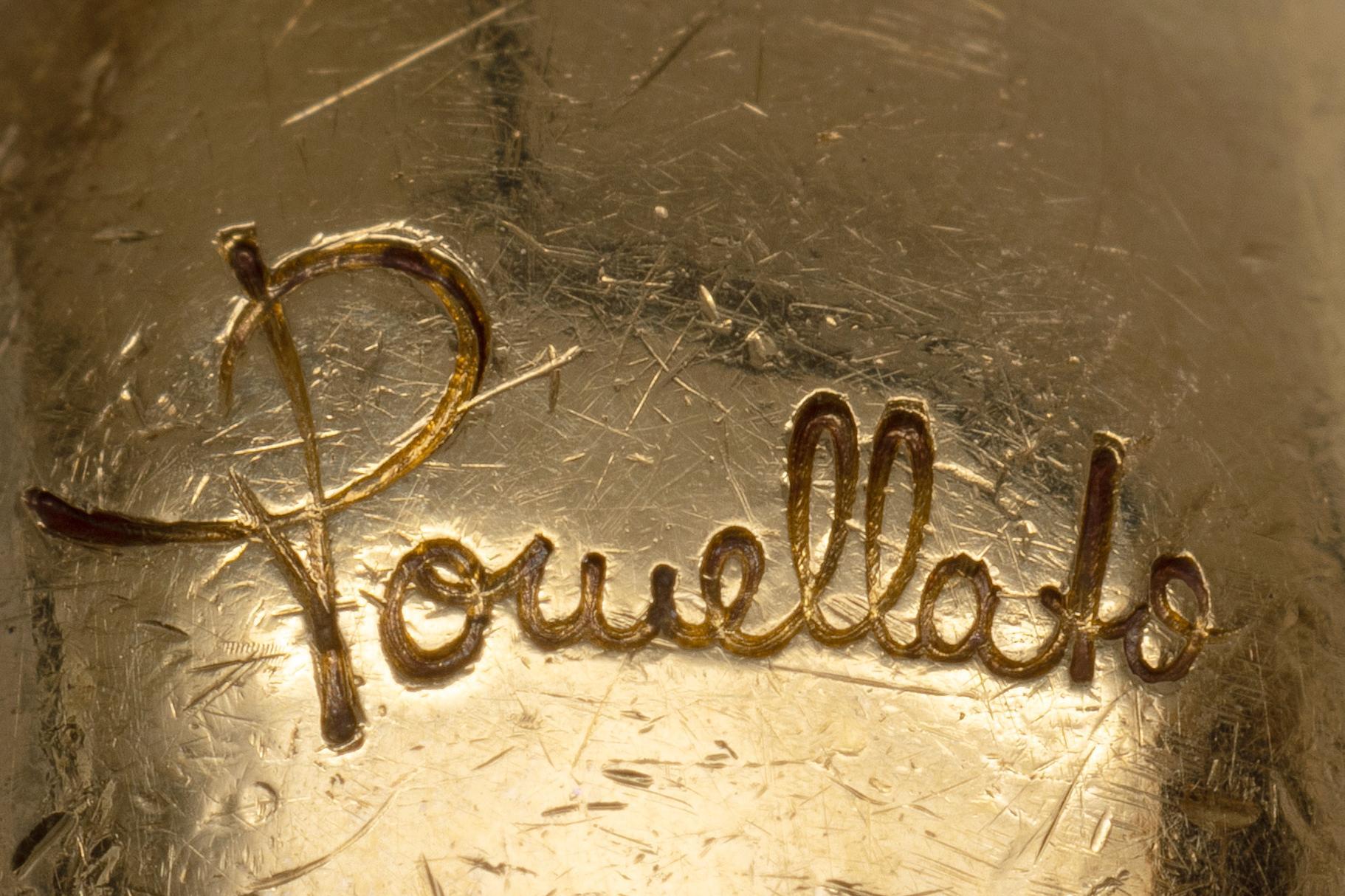 De bovenzijde met witgouden cirkel waarin een briljant geslepen diamant van ca. 0.24 ct. De binnenzijde met meesterteken J. Steltman, Den Haag, 1968-heden