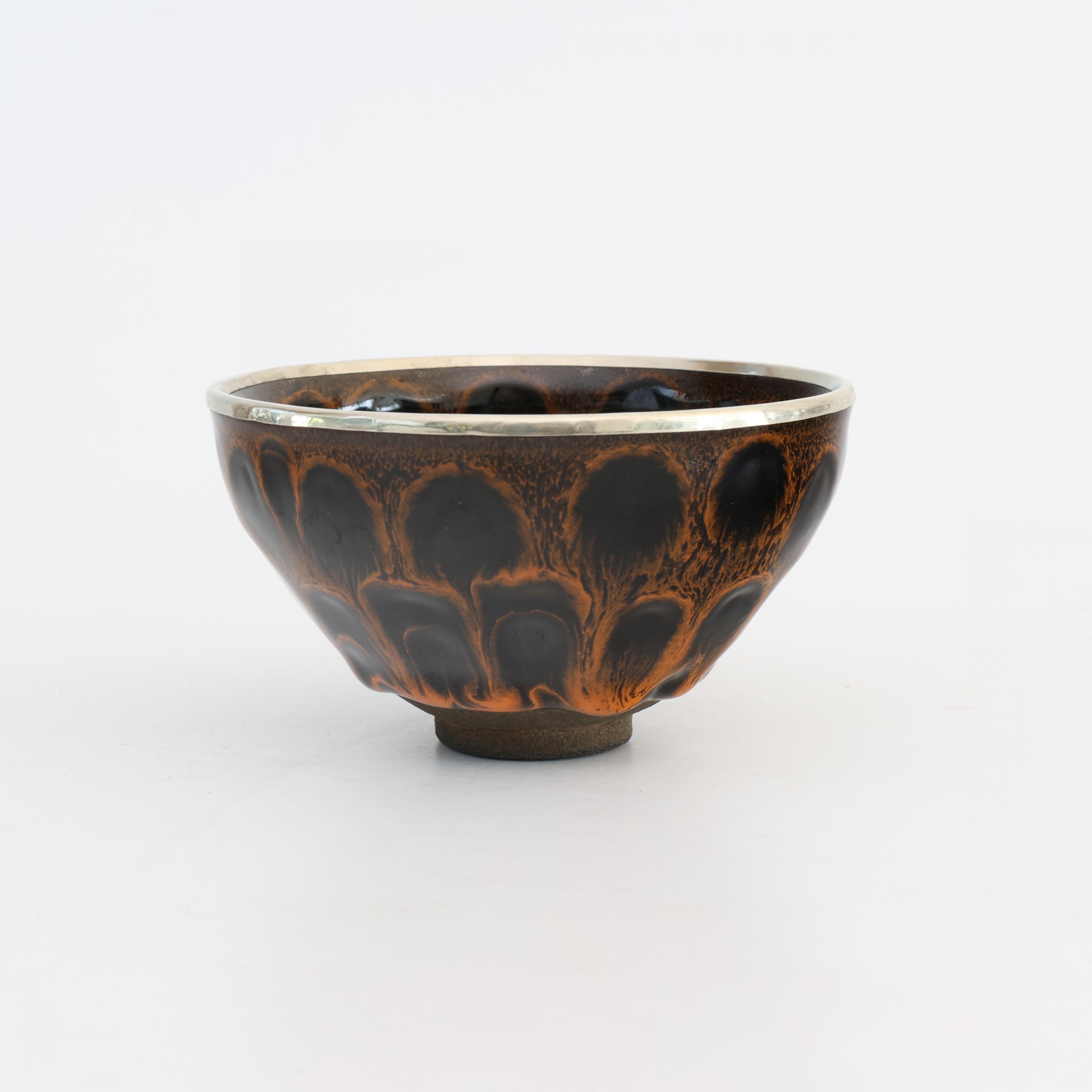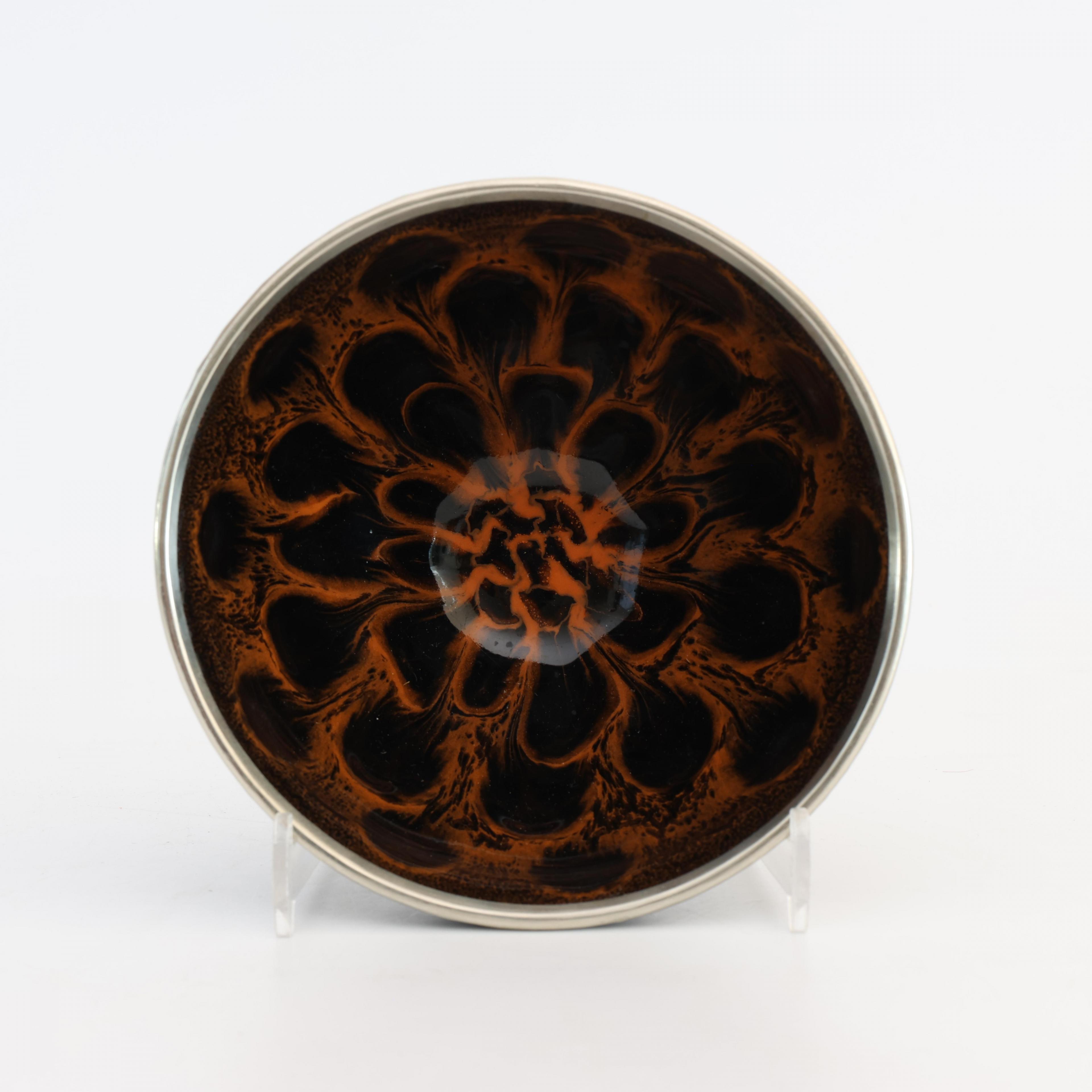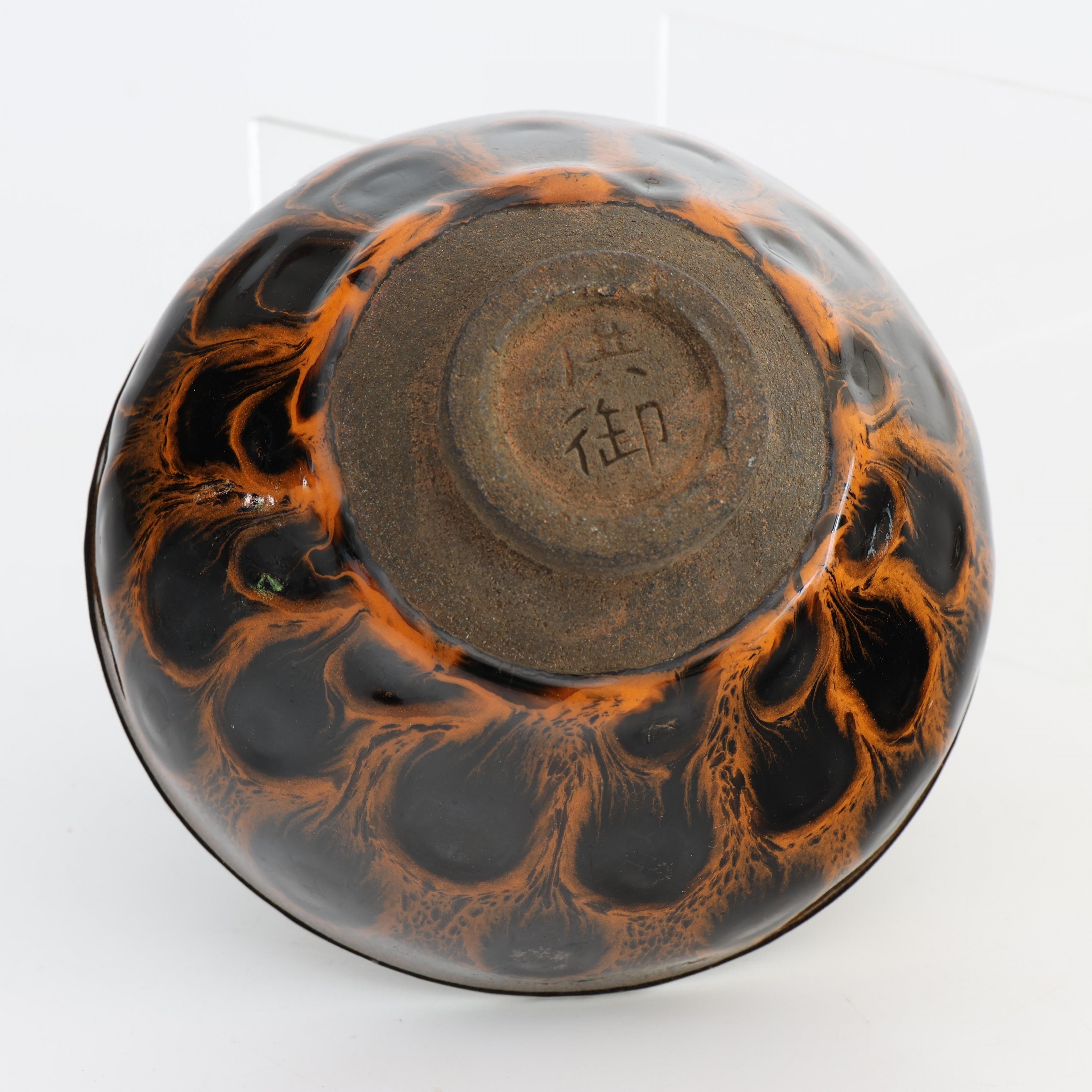 with thick feathered black and russet glaze, the base with incised masrk