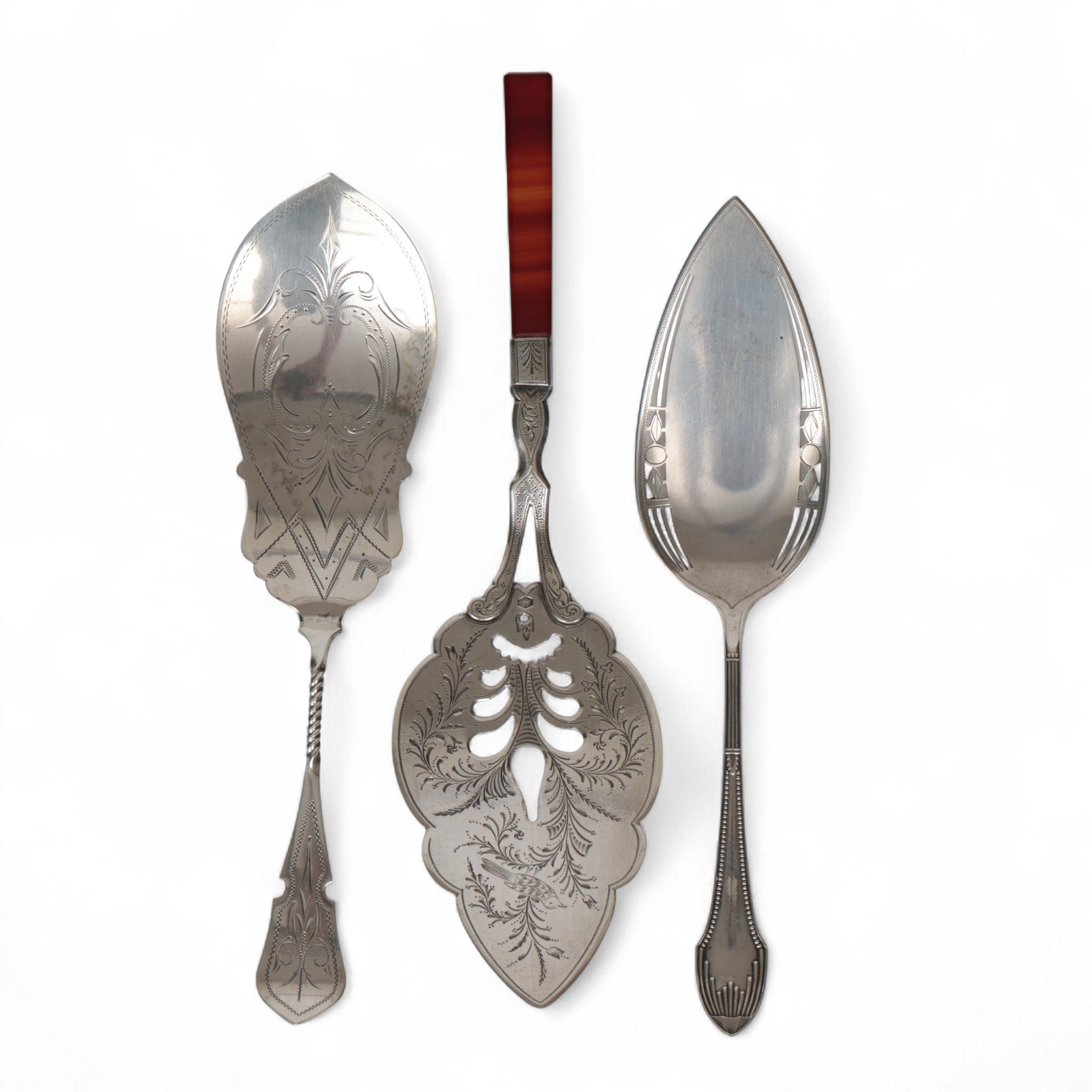 Twee taartscheppen en één visschep, 19e eeuw en Art Deco,