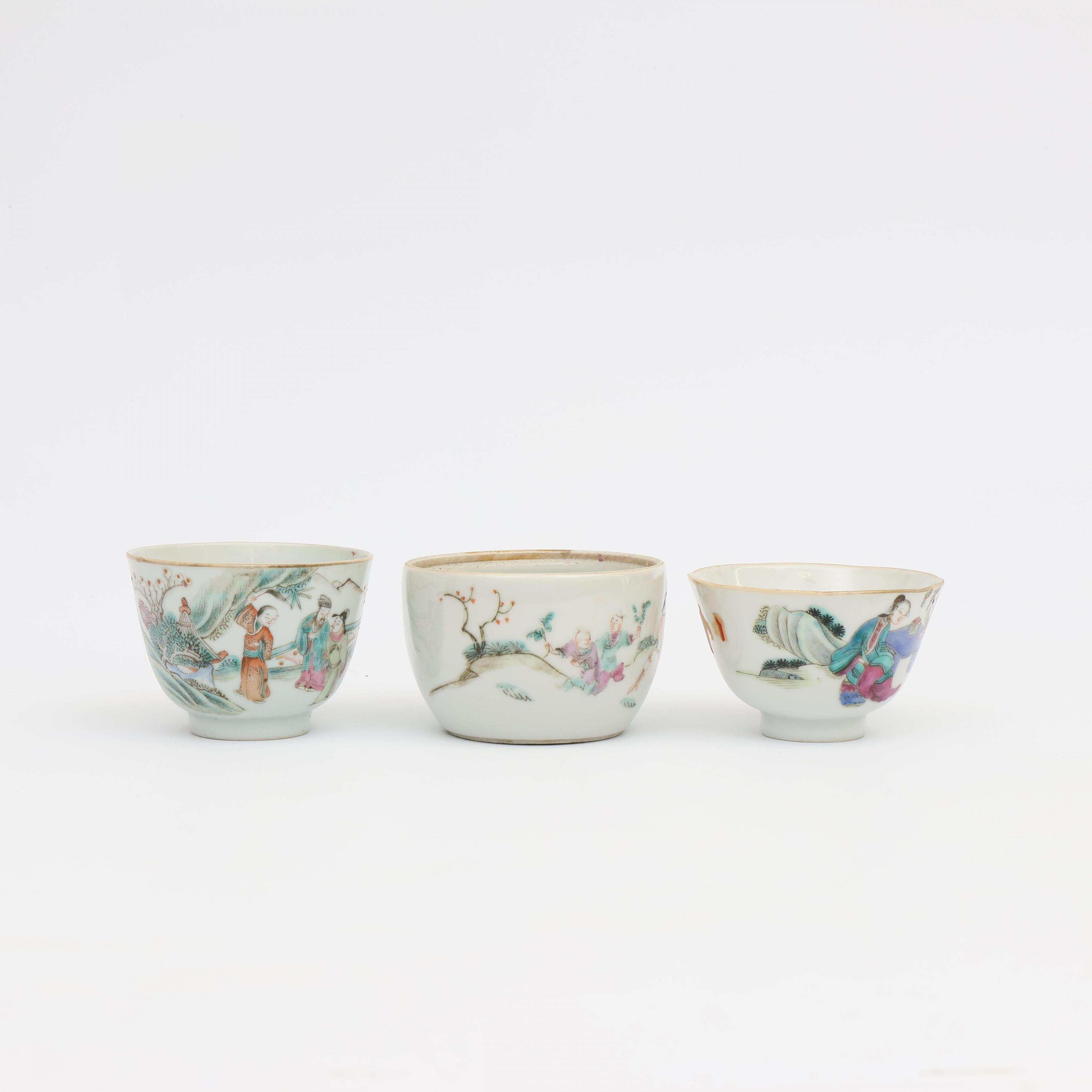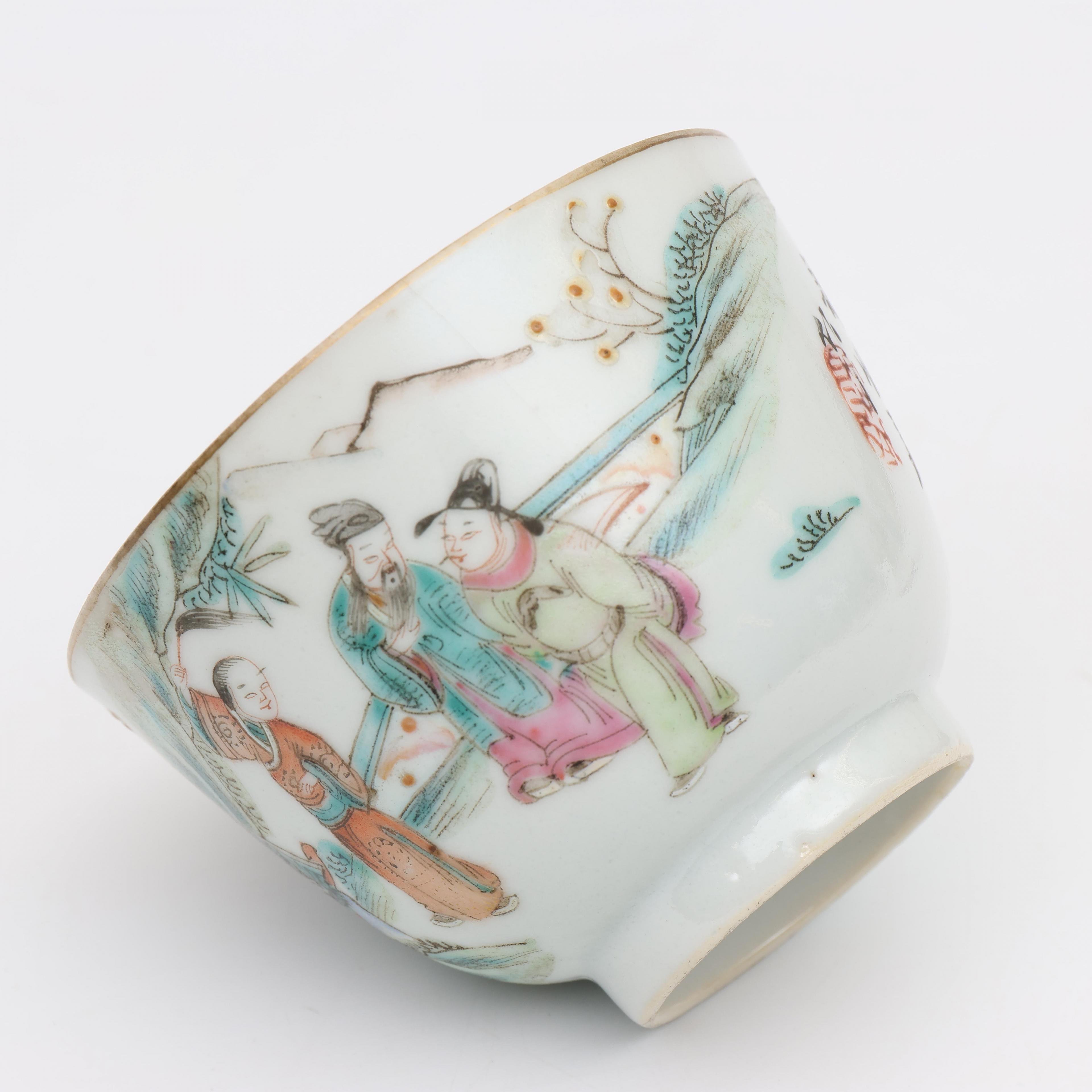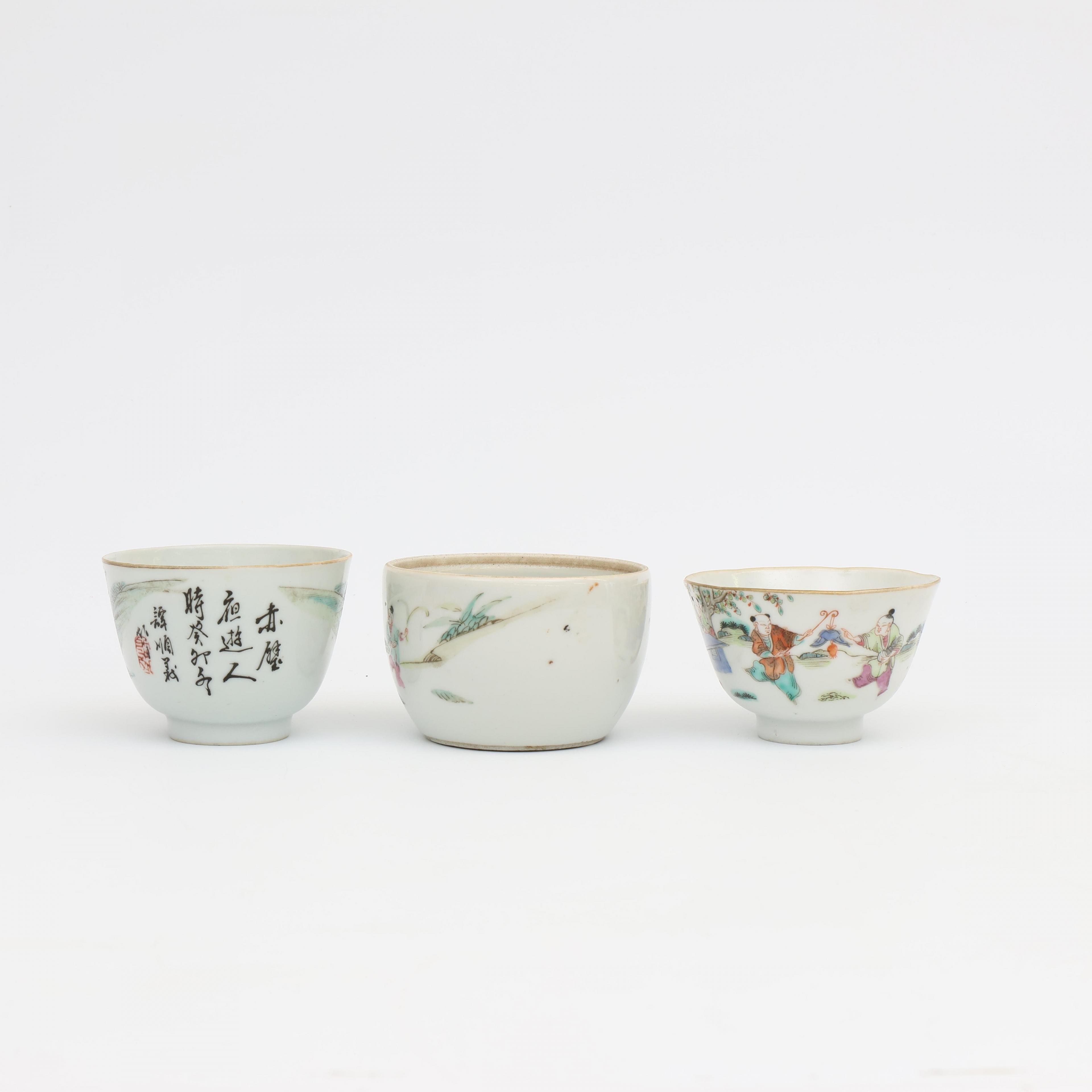 each variously decorated with figures in a garden, various marks (one with hairlines)