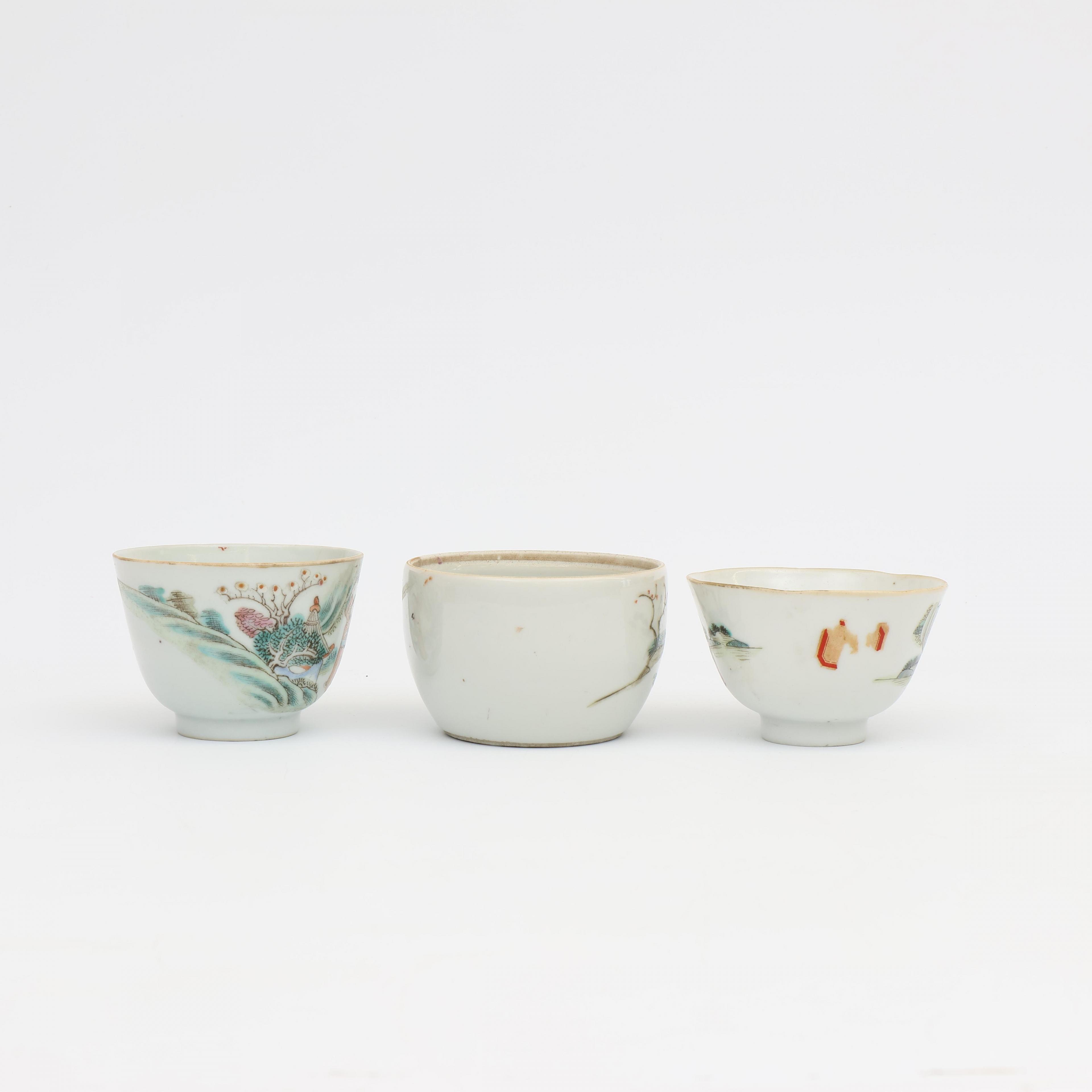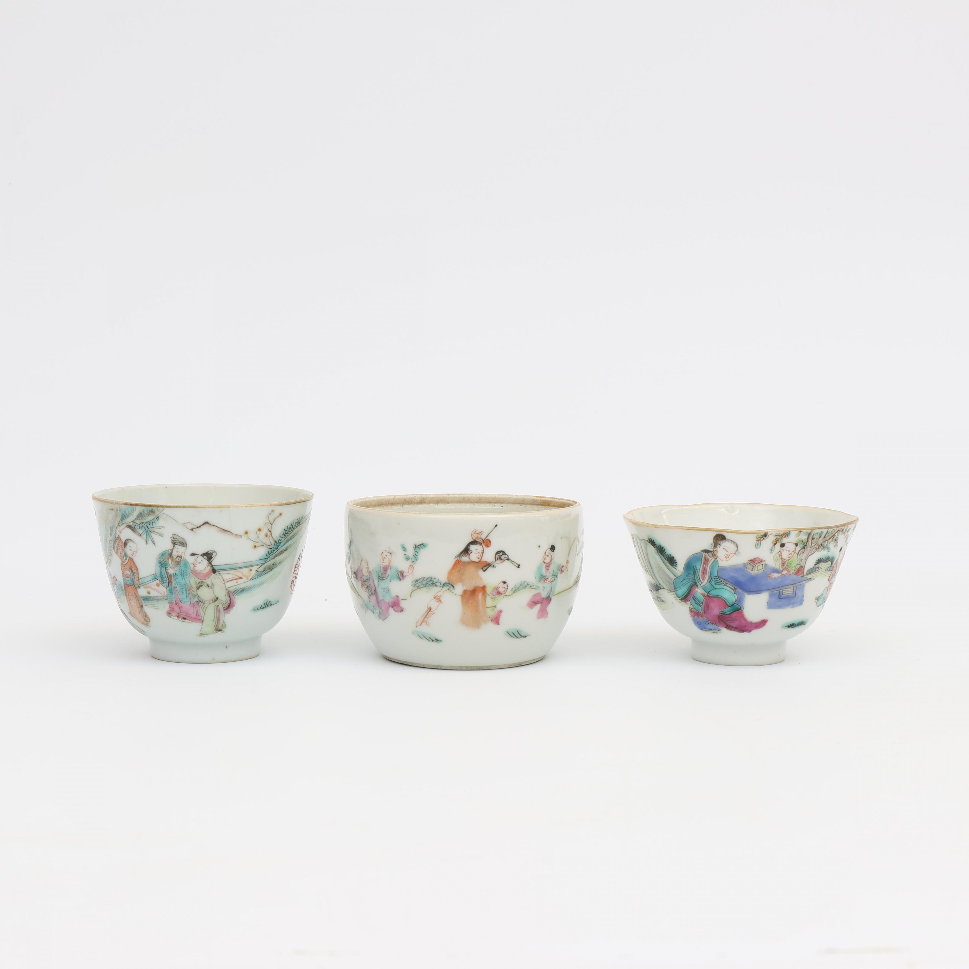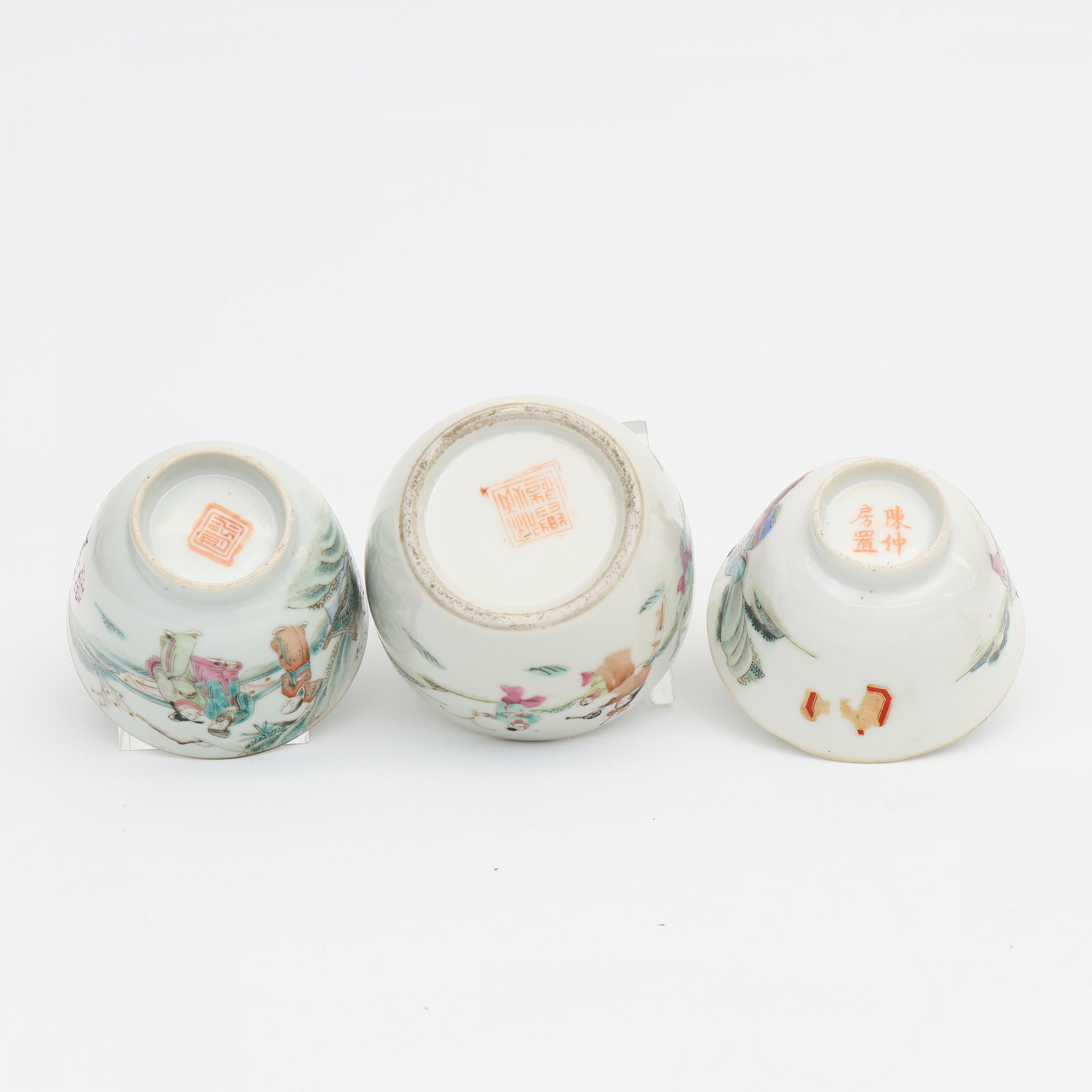 each variously decorated with figures in a garden, various marks (one with hairlines)