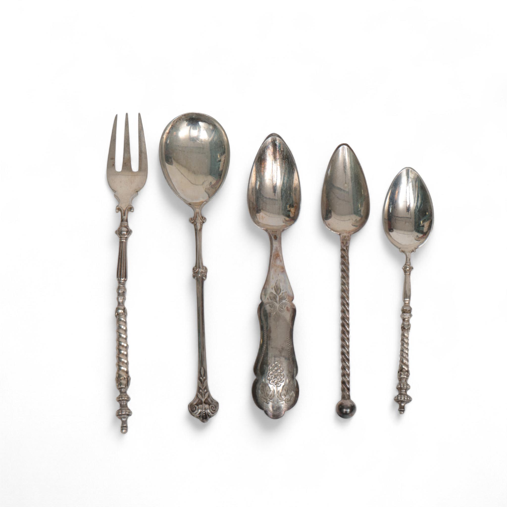 Diverse sets thee- en mokkalepeltjes en set van twaalf taartvorkjes, eind 19e en vroeg 20e eeuw,