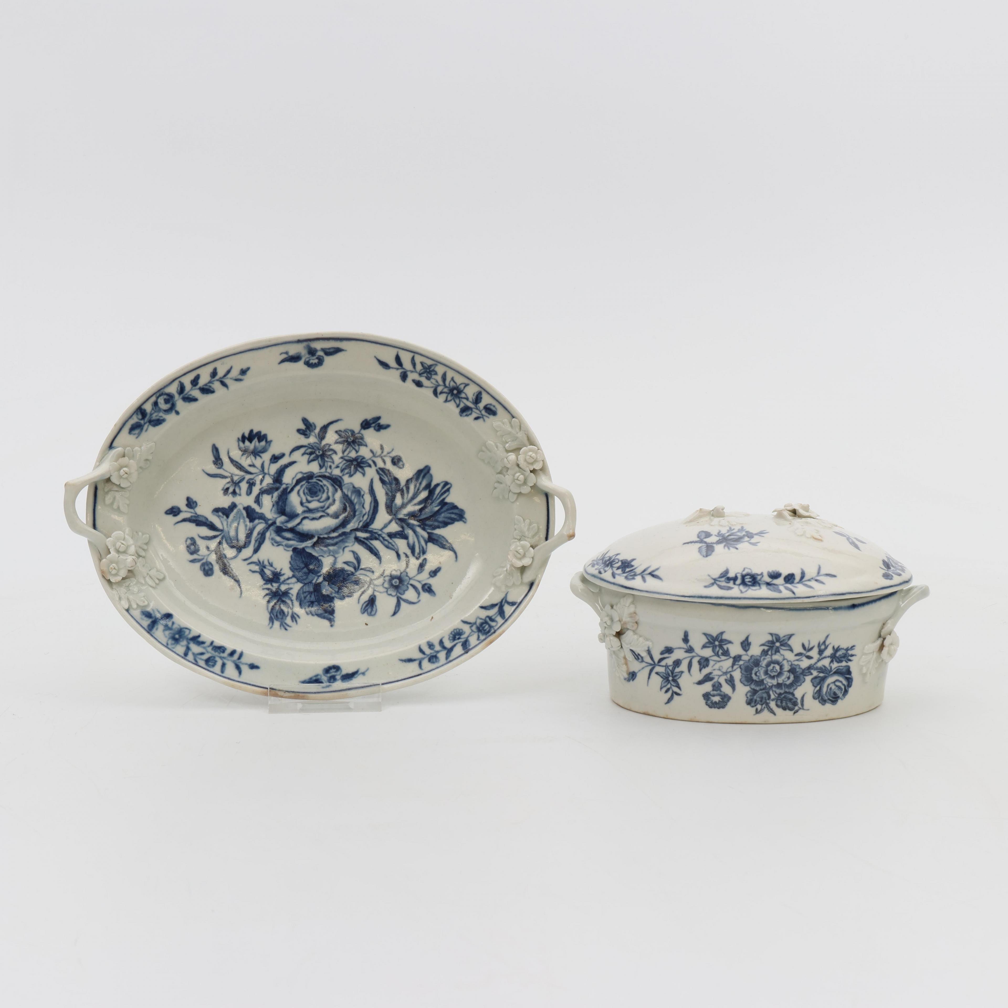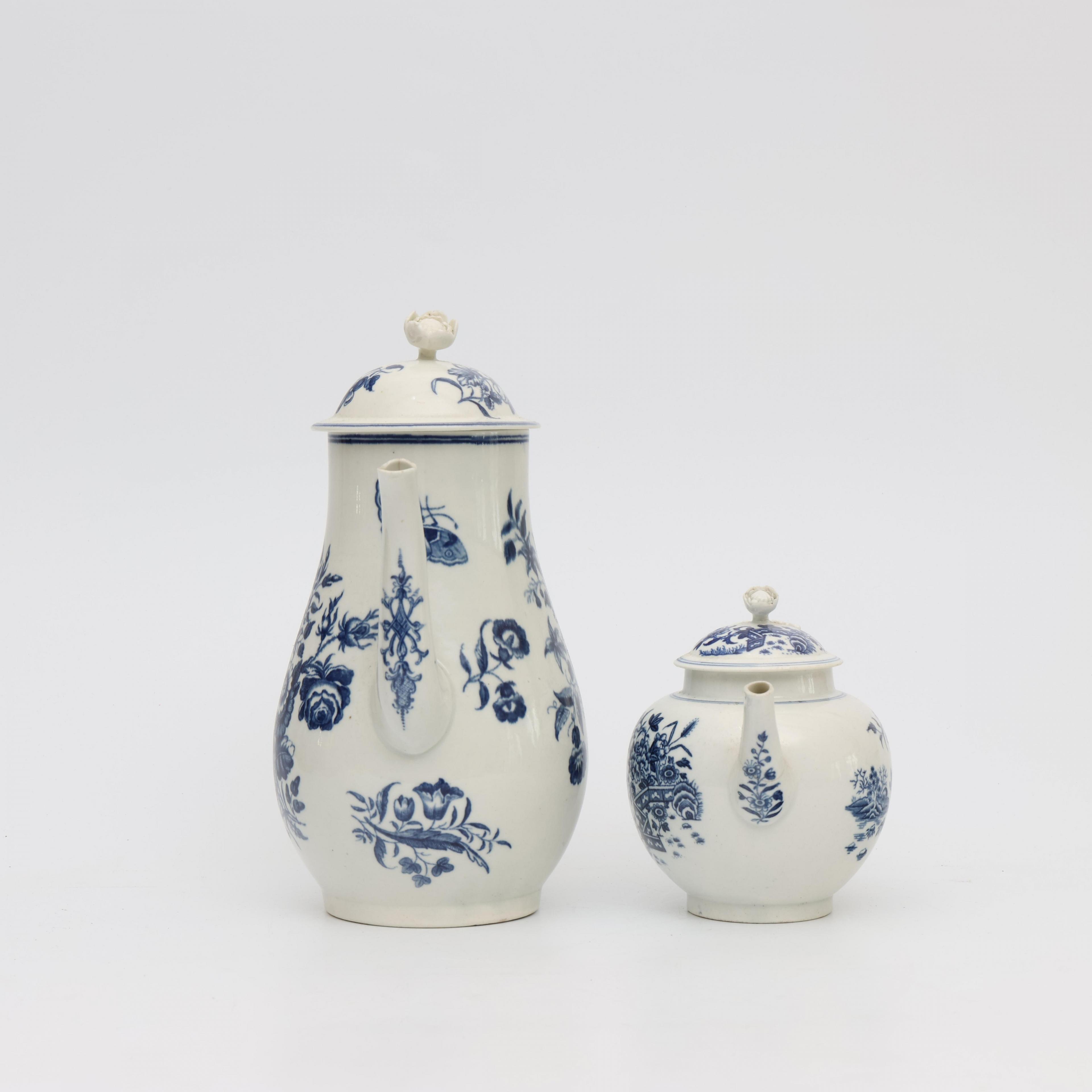 Engeland, blauw wit porseleinen Worcester theepot, koffiekan en botervloot, 1755-1790;