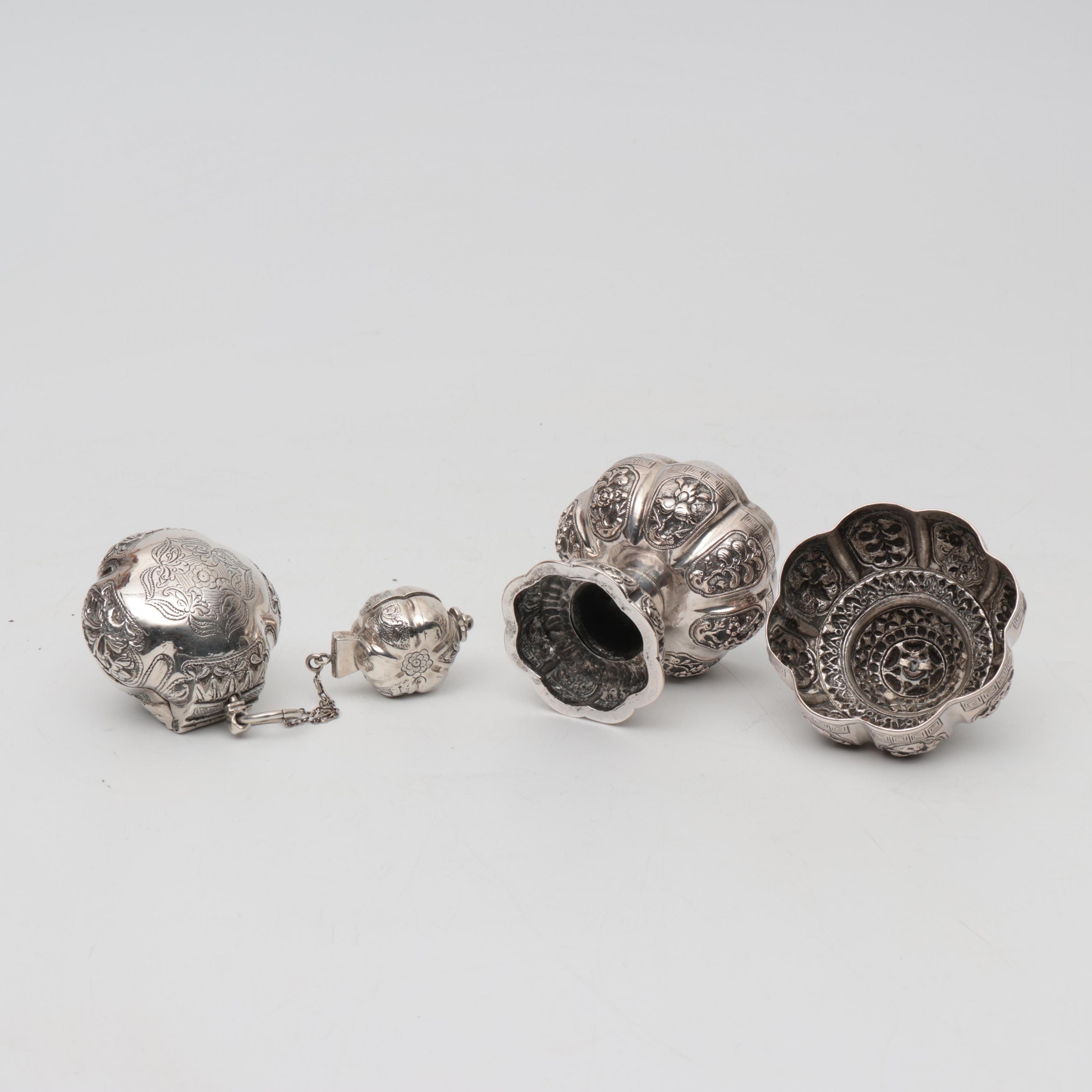 China, a silver coupe and cover, below legal alloy and Indonesia, Sumatra silver betelset, 20th century,