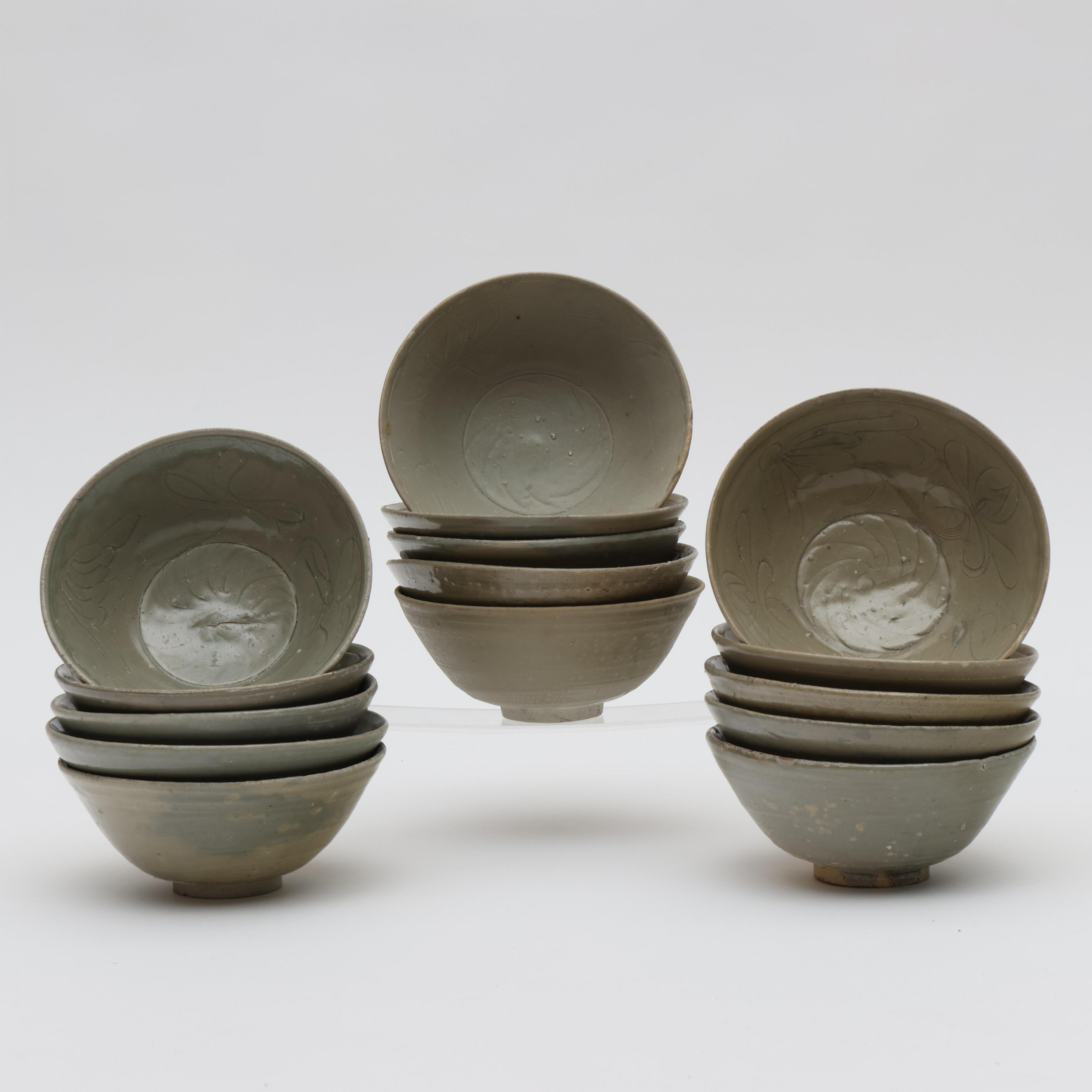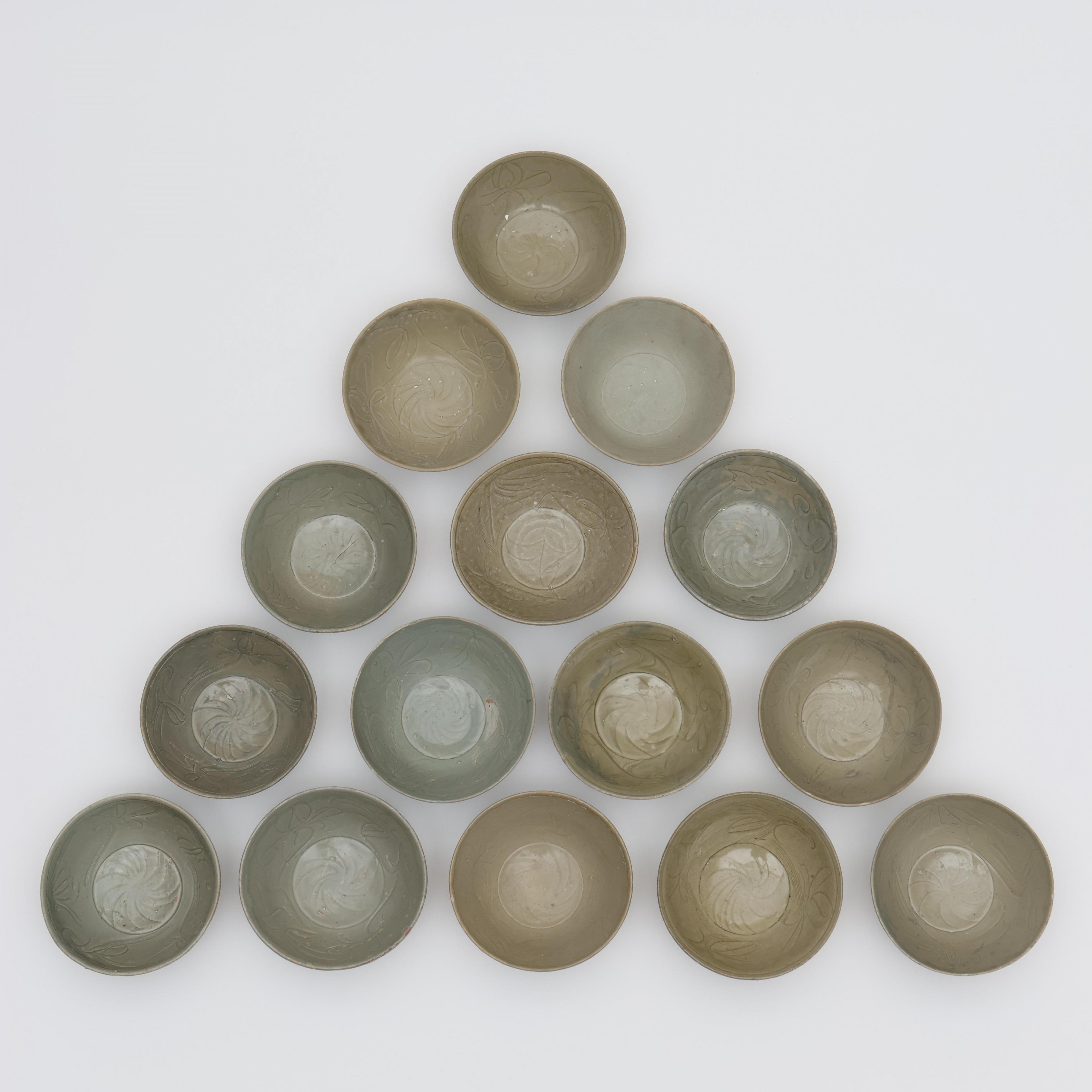 China, a collection of fifteen celadon-glazed bowls, Song dynasty, 10th-12th century,