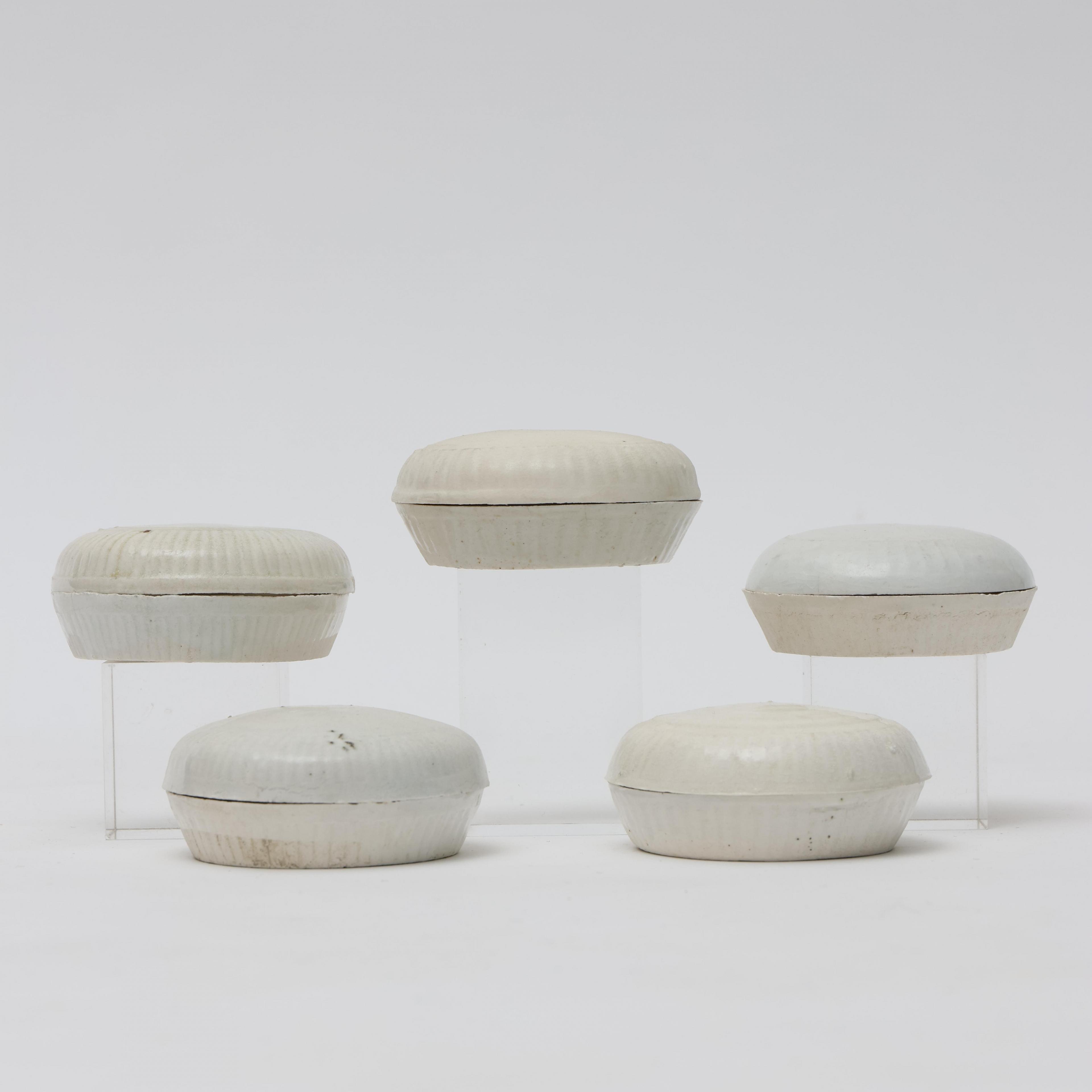 China, a collection of five white-glazed cosmetics boxes and covers, Song dynasty, 10th-12th century,
