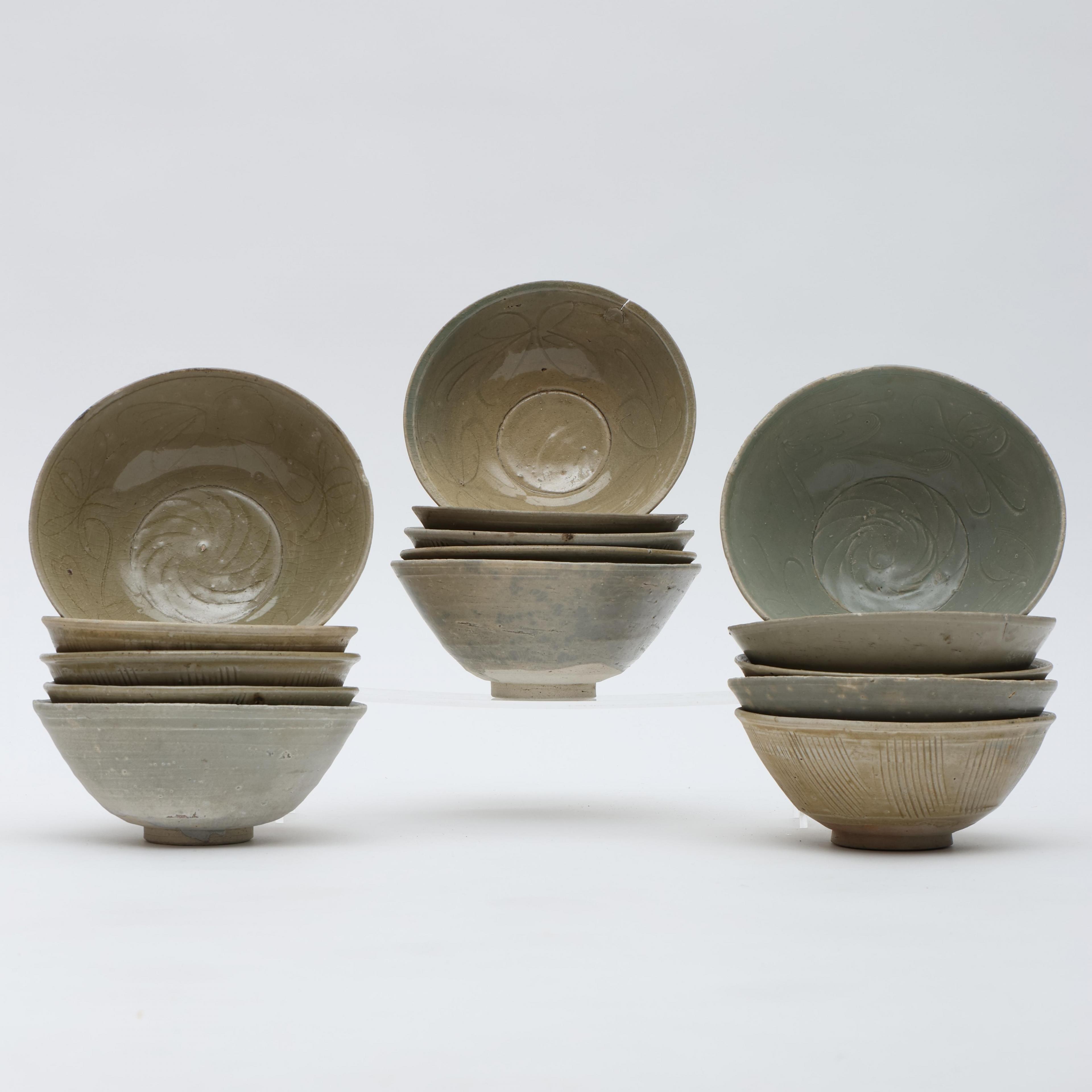 China, a collection of fifteen celadon-glazed bowls, Song dynasty, 10th-12th century,