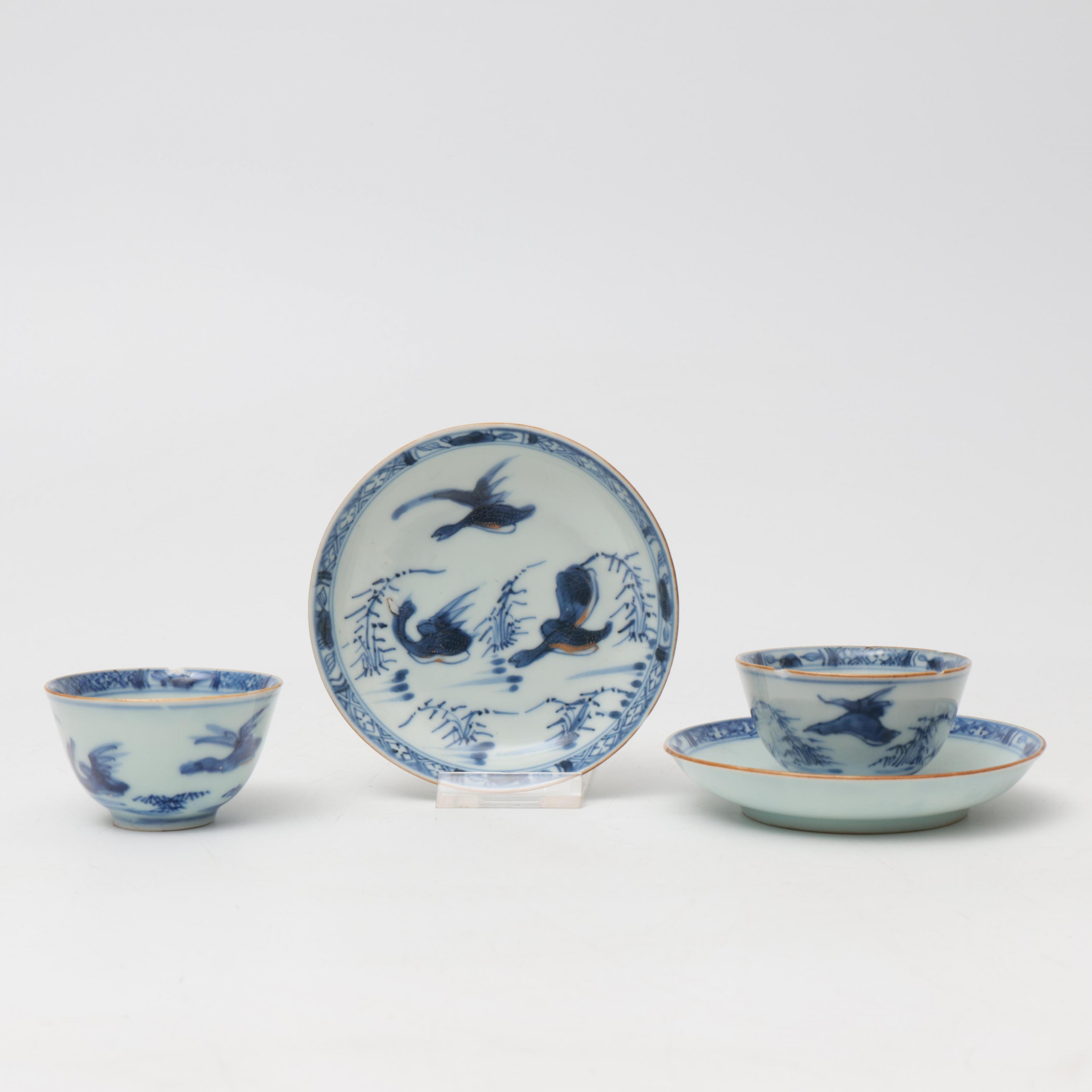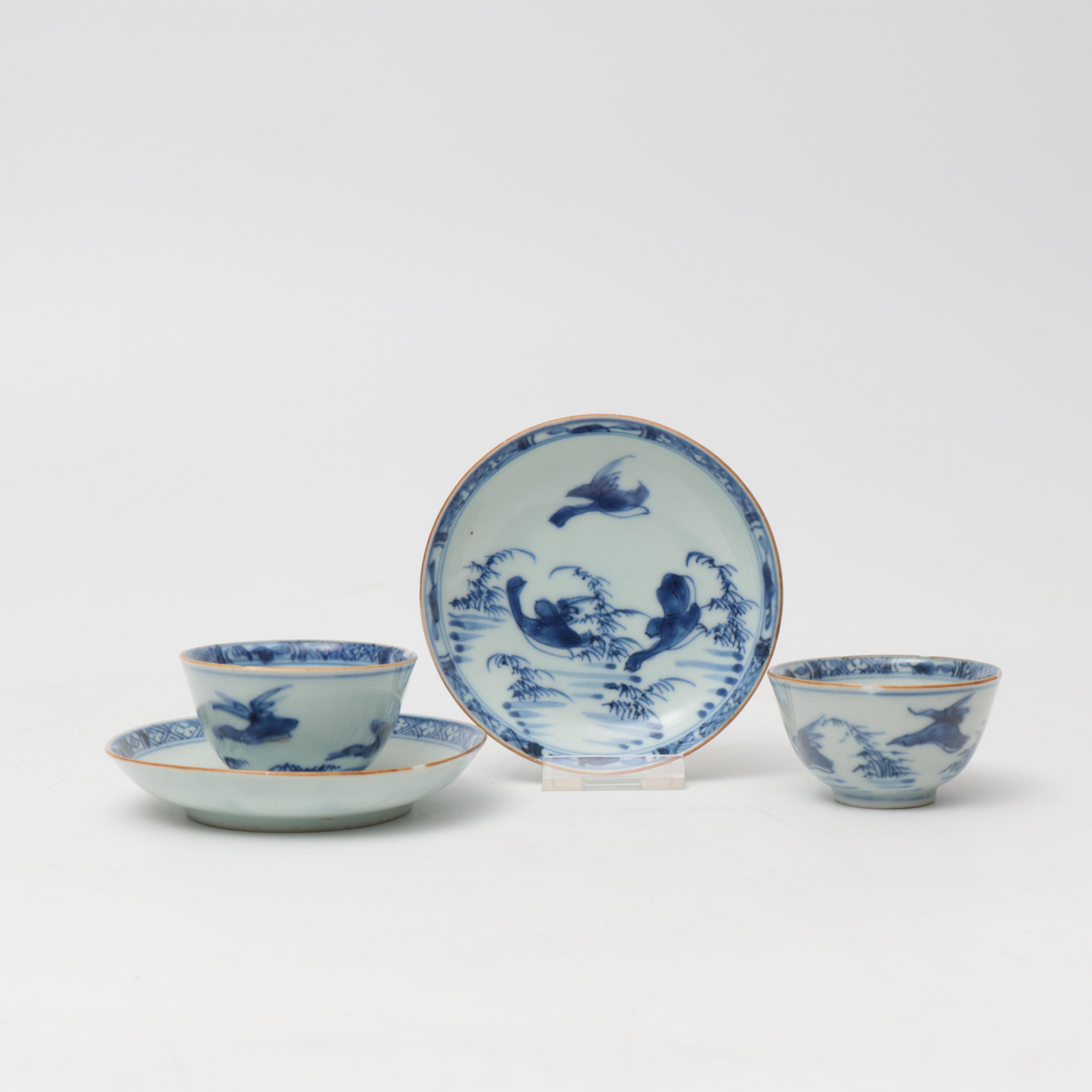 China, a pair of blue and white porcelain cups and saucers, 18th century,