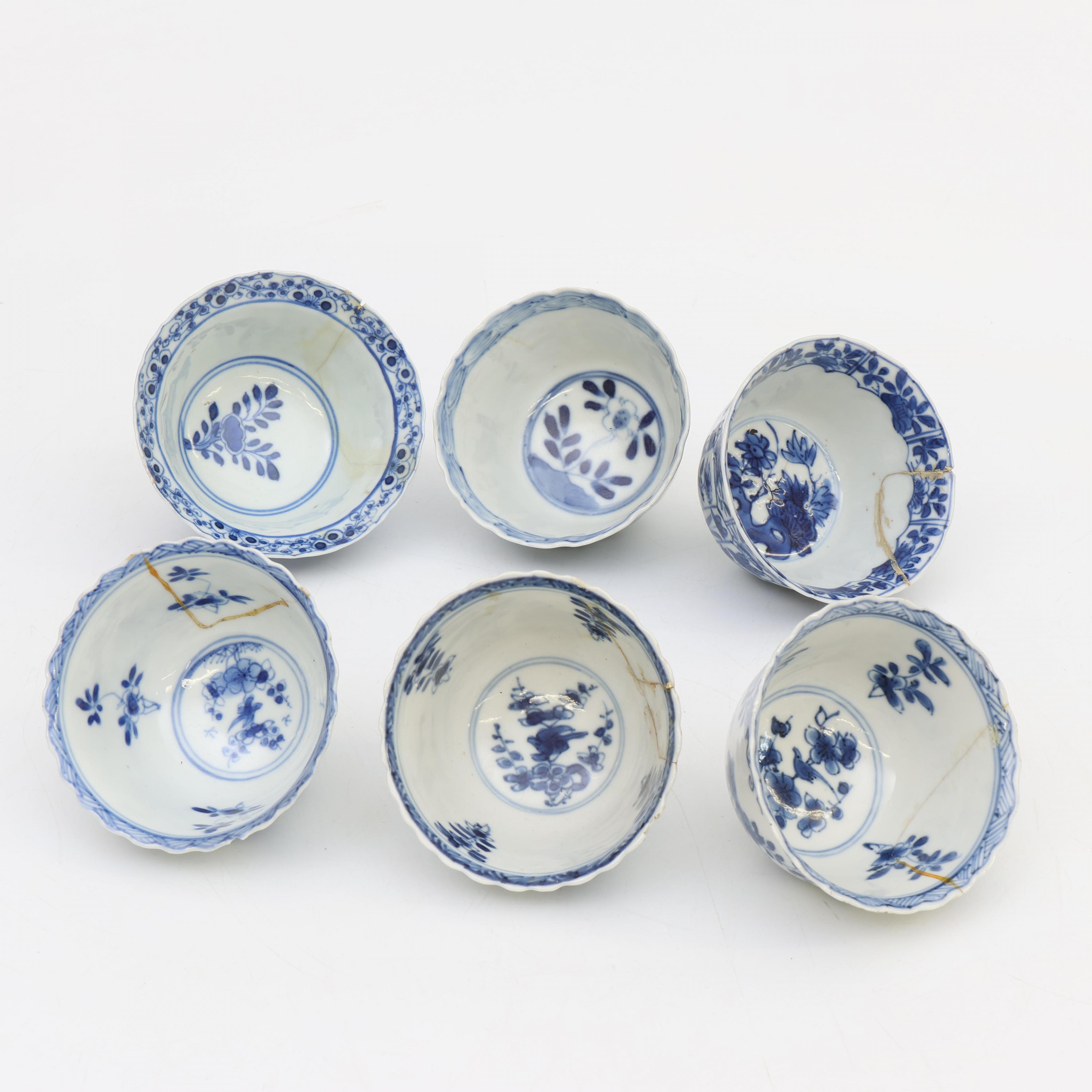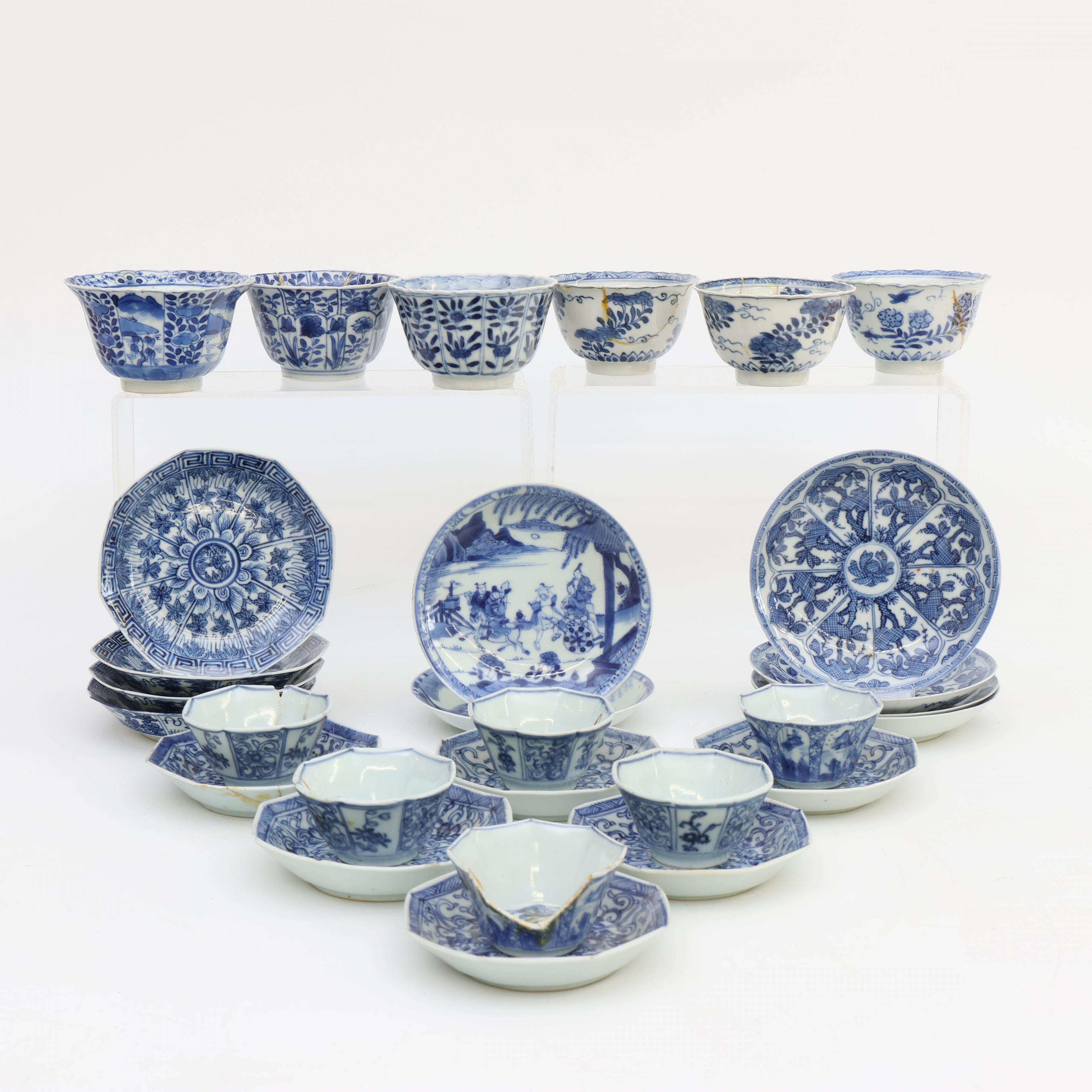China, a collection of various blue and white porcelain cups and saucers, mainly 18th century,
