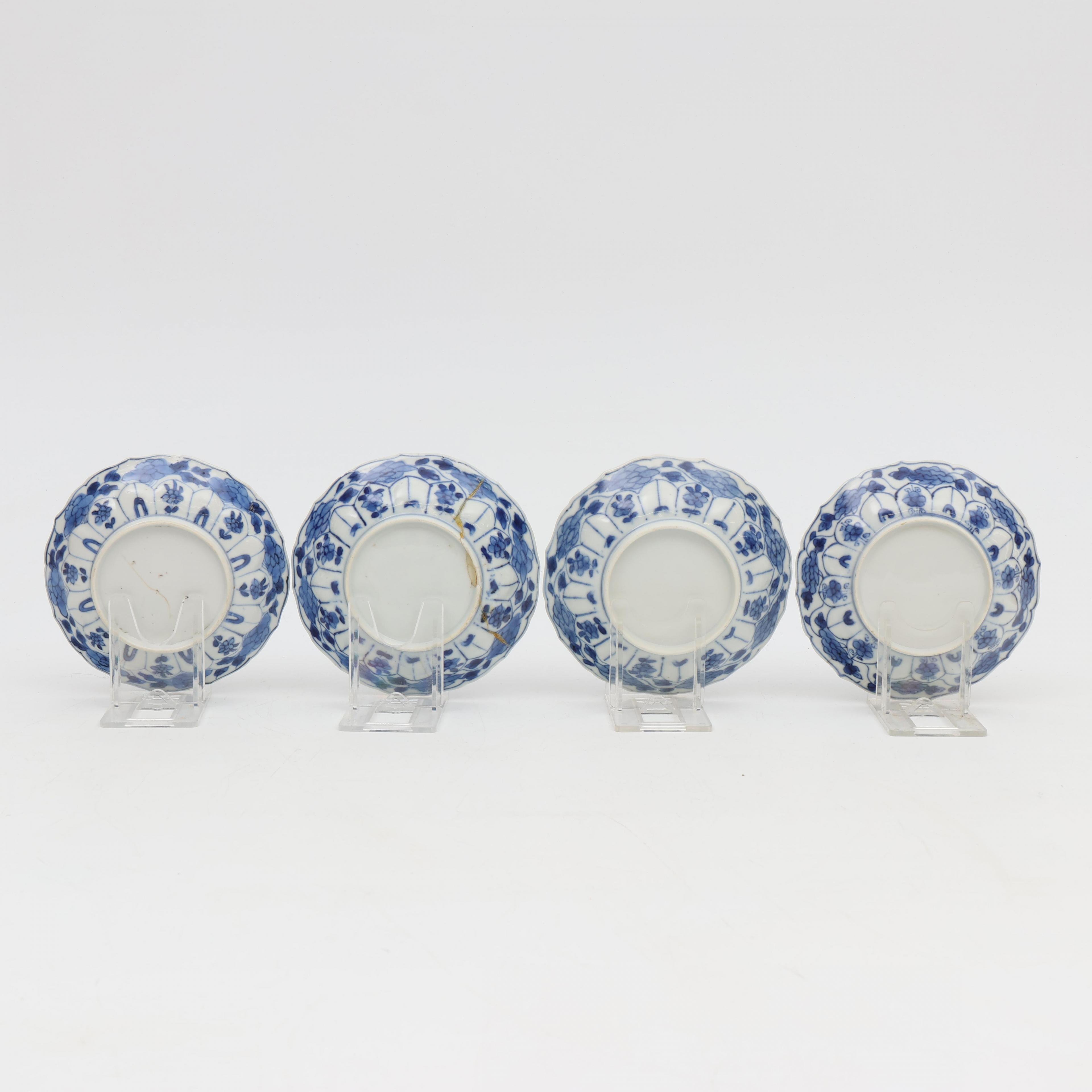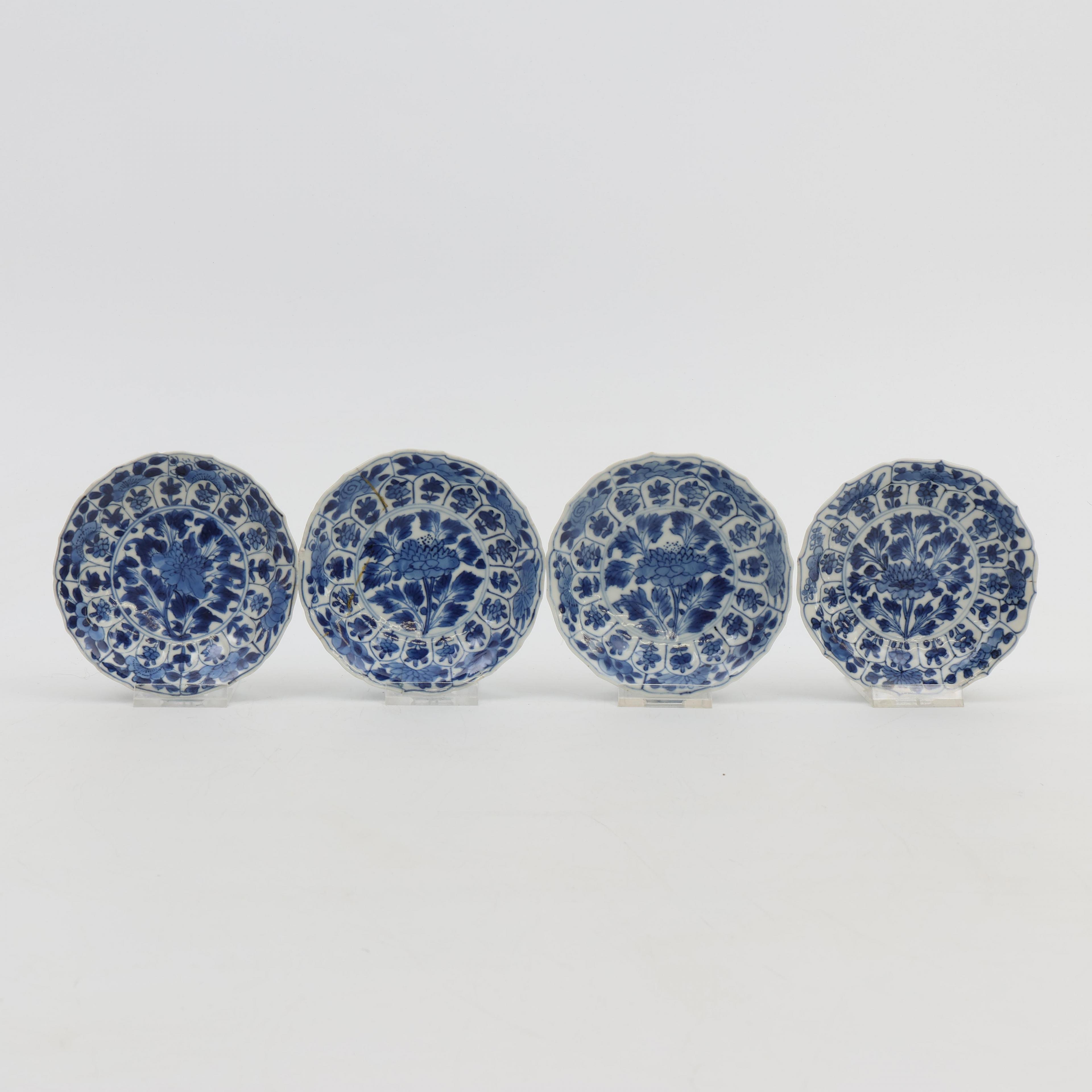 each moulded with petal-shaped floral panels and decorated with further flowers (one restored and one with crack to base)