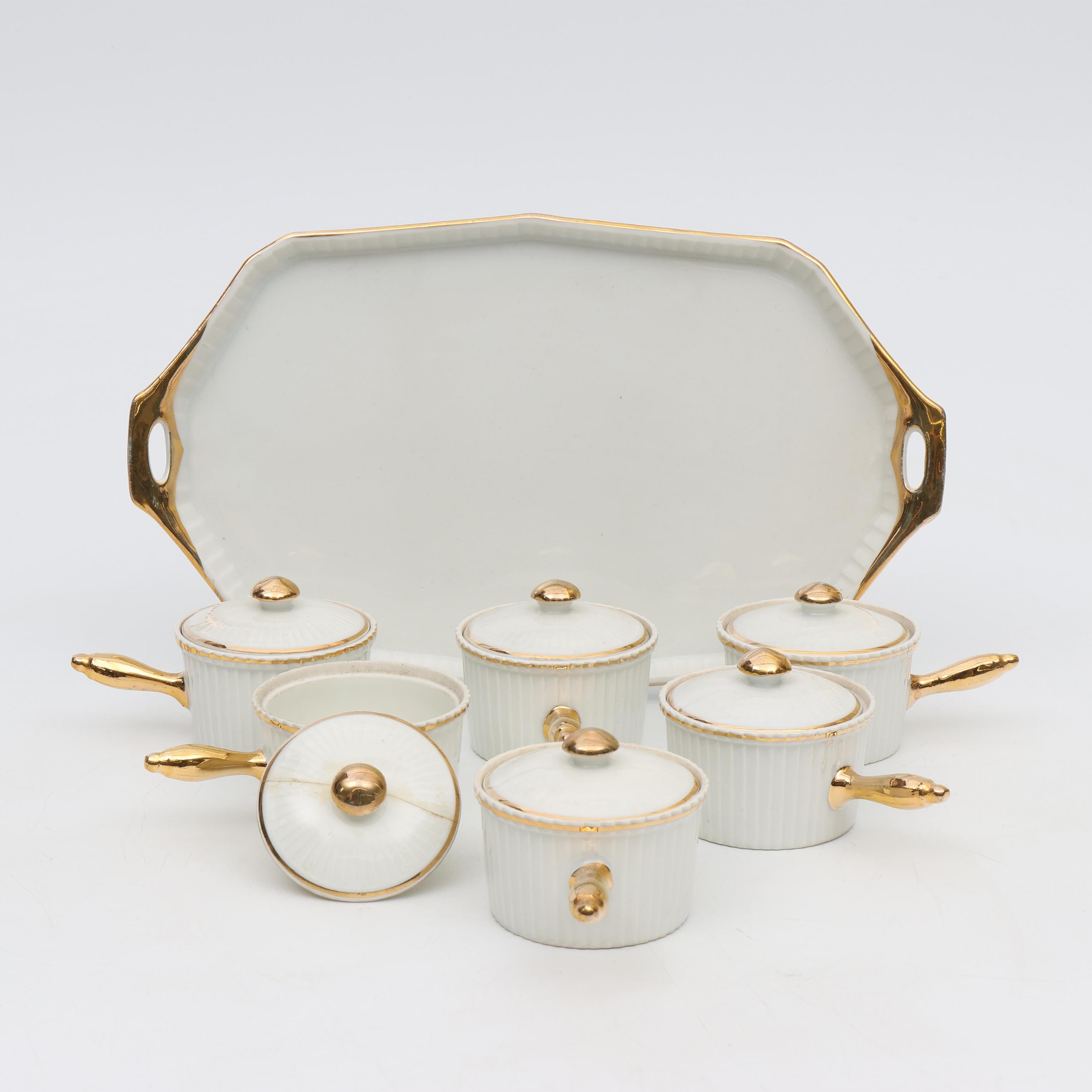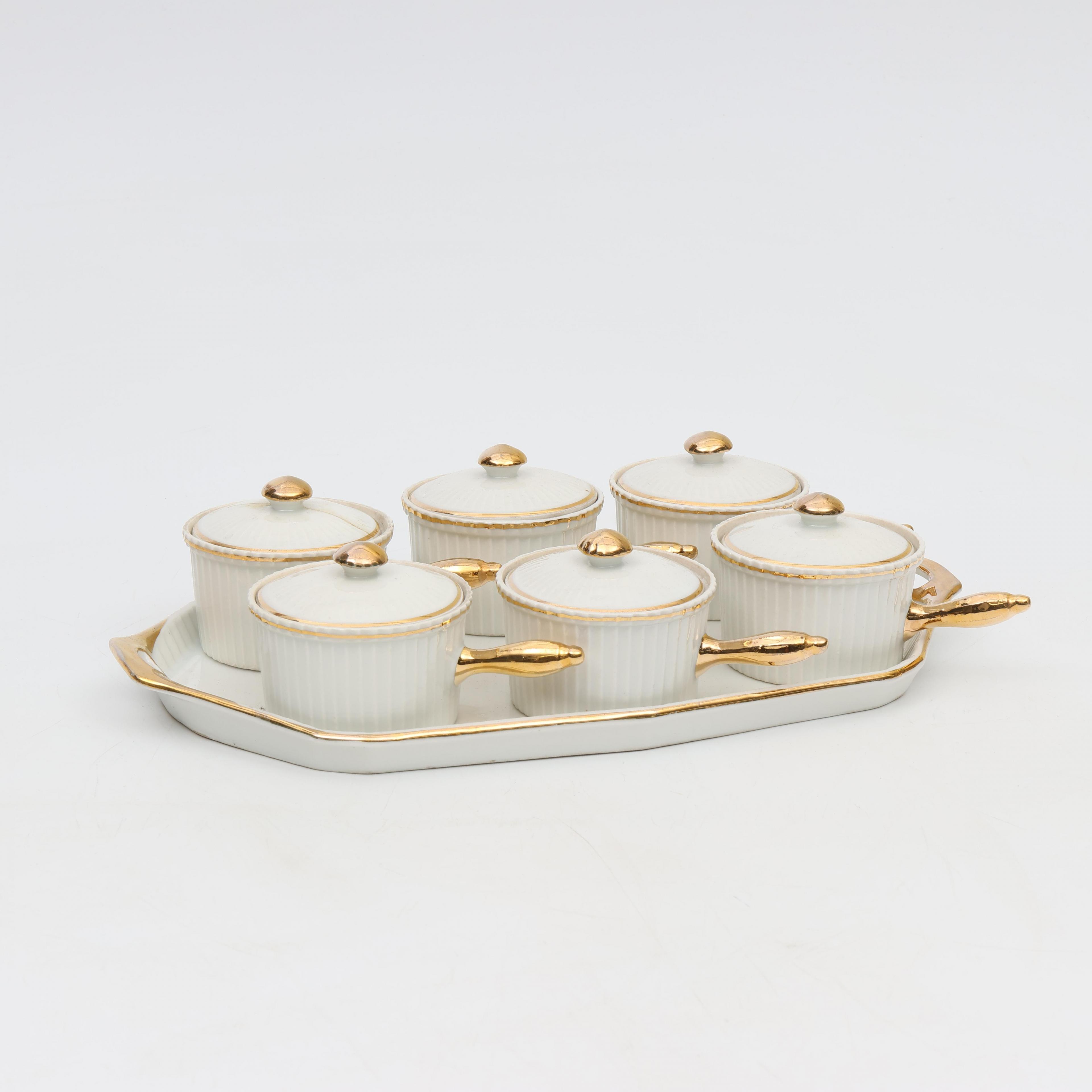 Duitsland, set van zes pot-de-creme op serveerblad, SPM, Walküre, midden 20e eeuw;