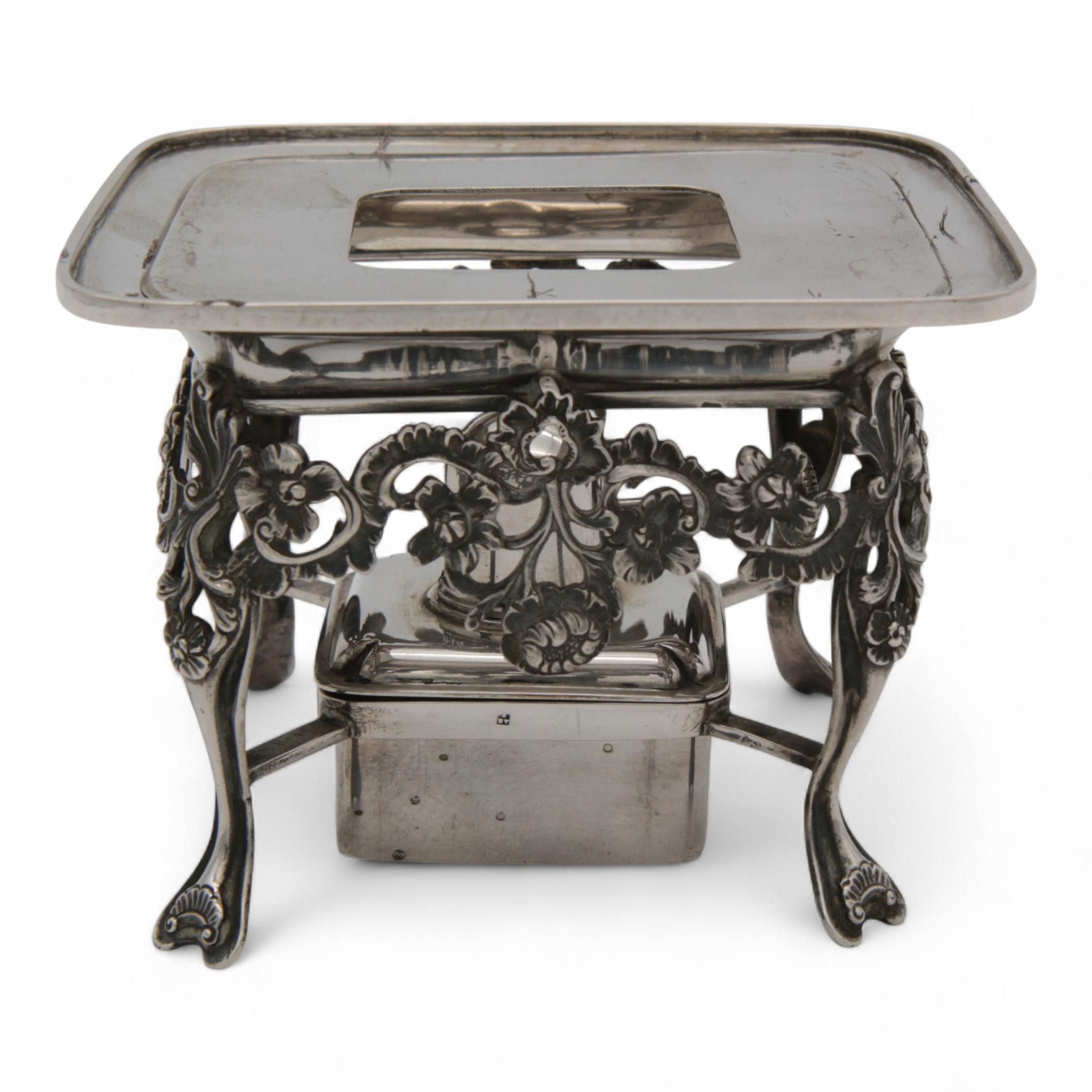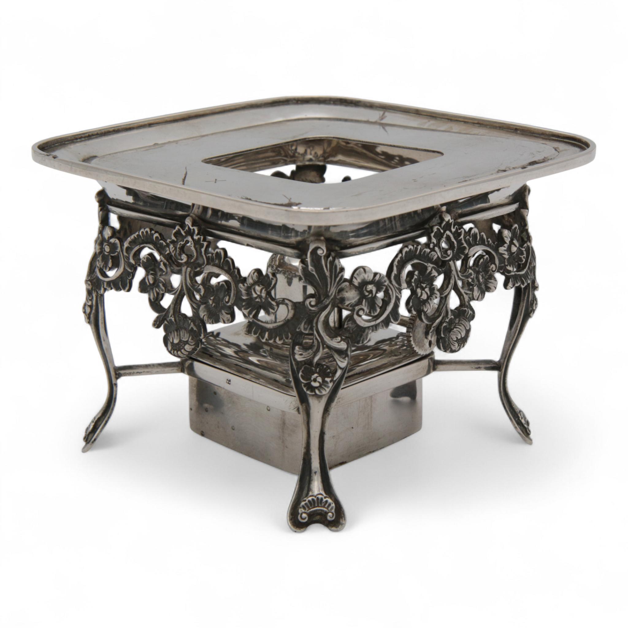 vierkant model met afgeronde hoeken en versieringen van bloem- en bladmotieven, mt. Jhr. T.M.A.A. van Andringa de Kempenaar Leeuwarden 1902, 2e gehalte,