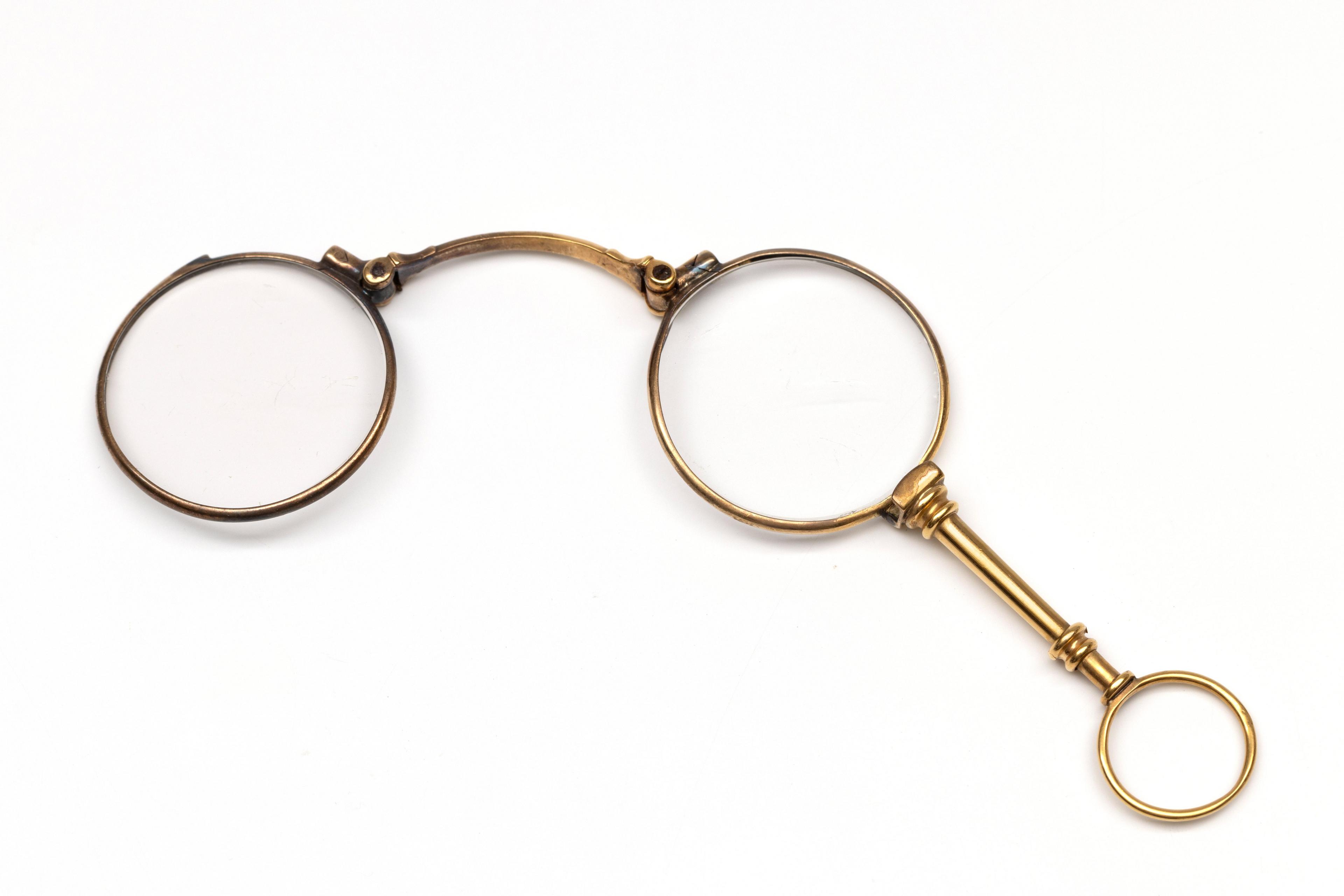 18 k. Gold lorgnette, ca. 1900. Hallmarked with French export hallmark for 18 k. gold and Dutch tax hallmark V, for foreign, for small foreign works 1906-1953
