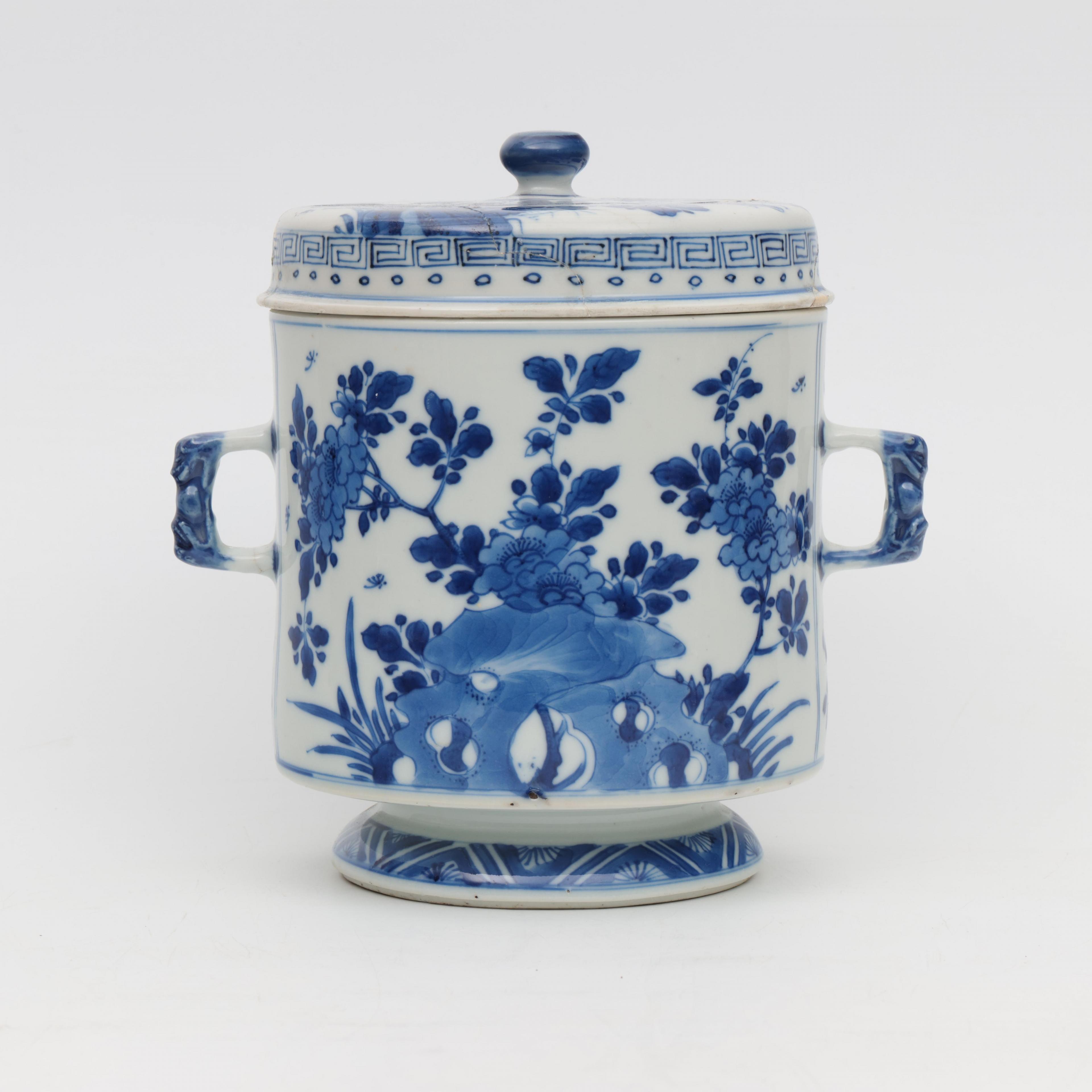 China, a blue and white porcelain two-handled jar and cover, Kangxi period (1662-1722),