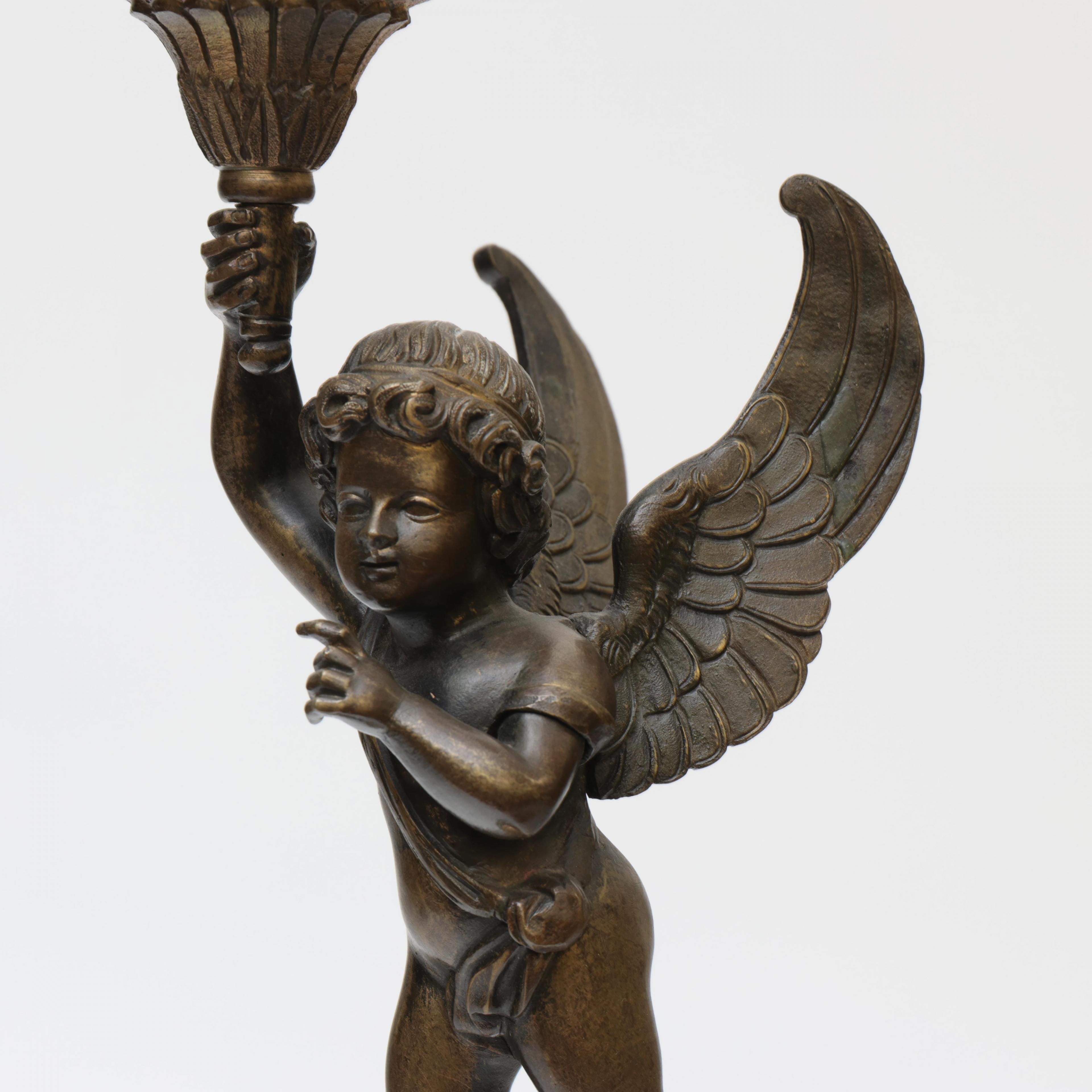 Uitgevoerd met gespiegelde putti welke applique draagt. Geheel op geciseleerde voet.
