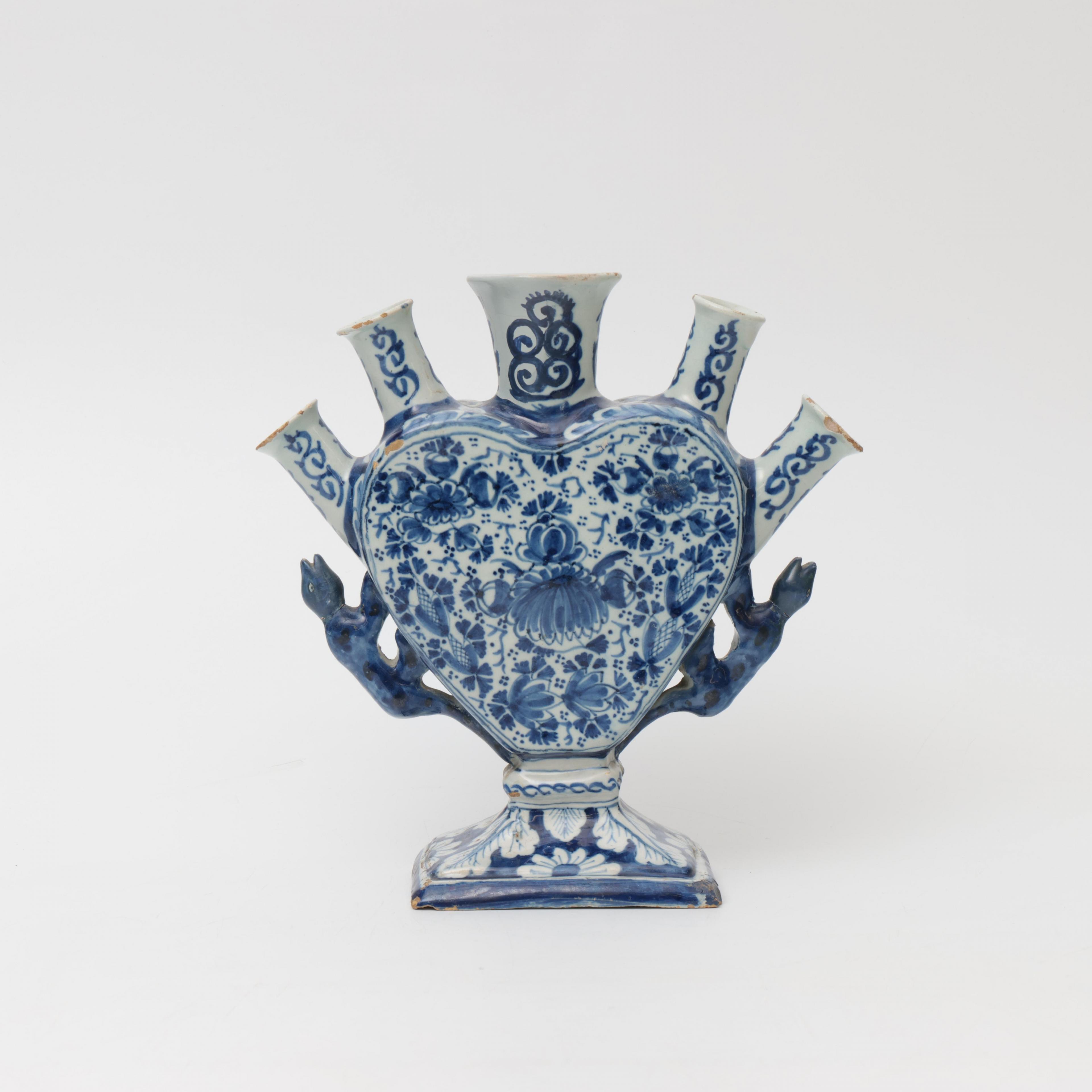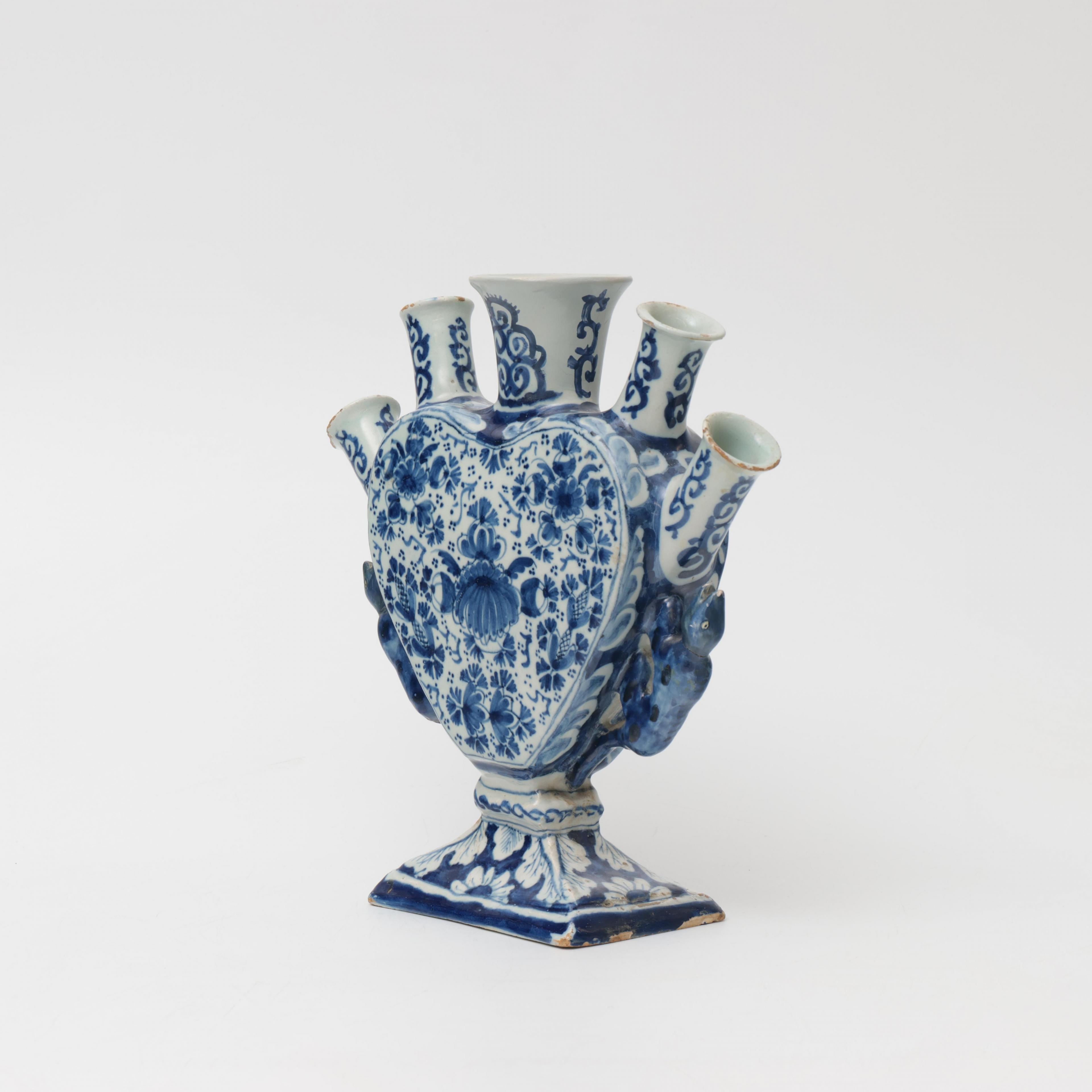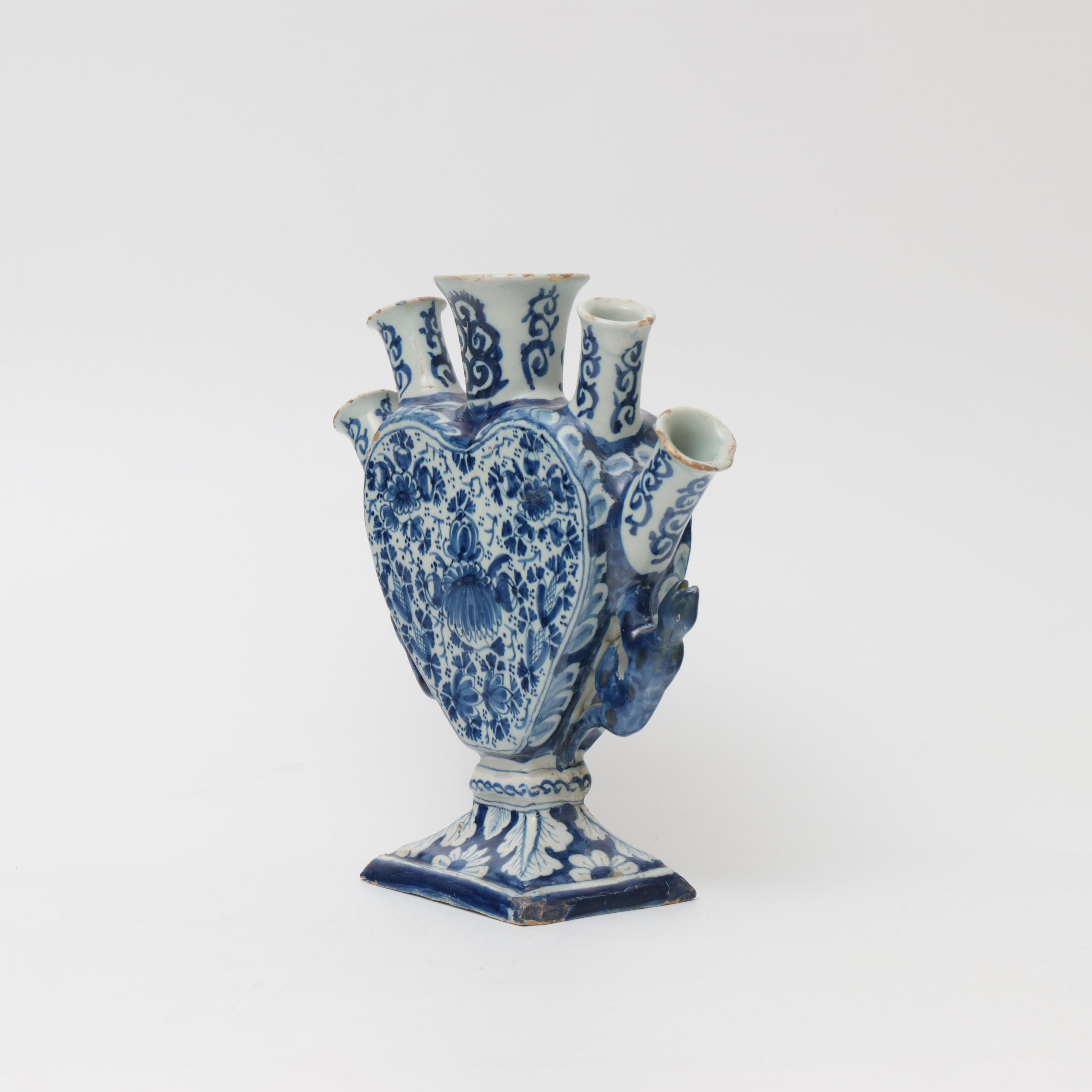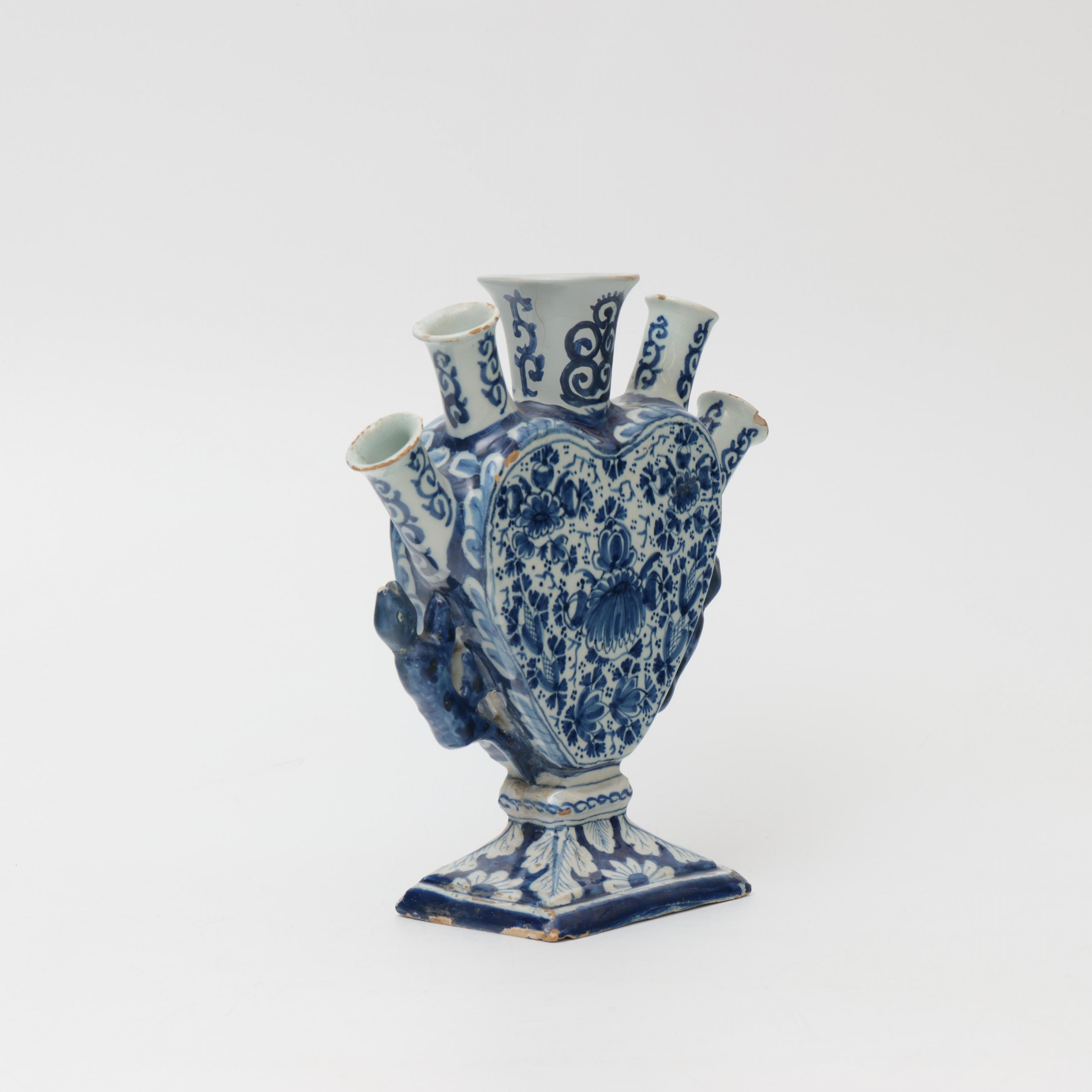 Delft, blauw wit aardewerk tulpenvaas, 18e eeuw;