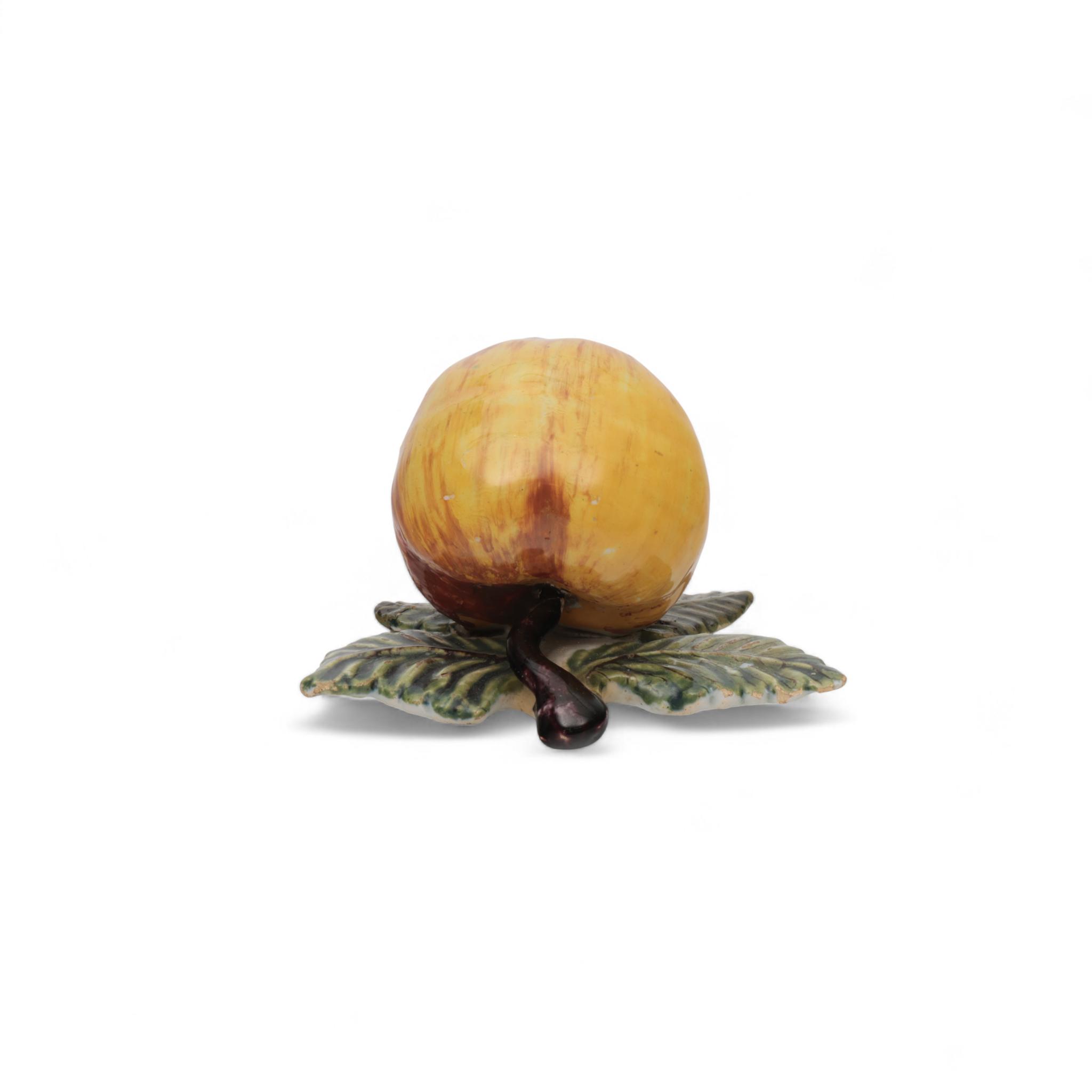Delft, polychroom geschilderd vormstuk appel, 18e eeuw.