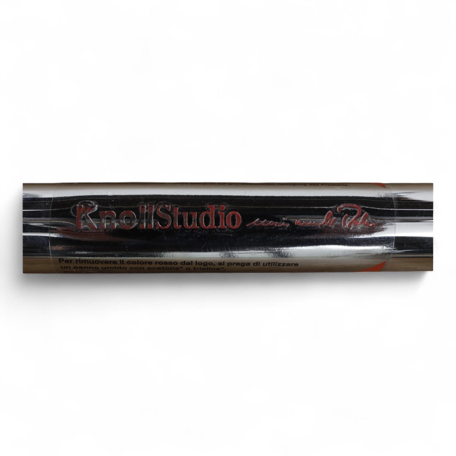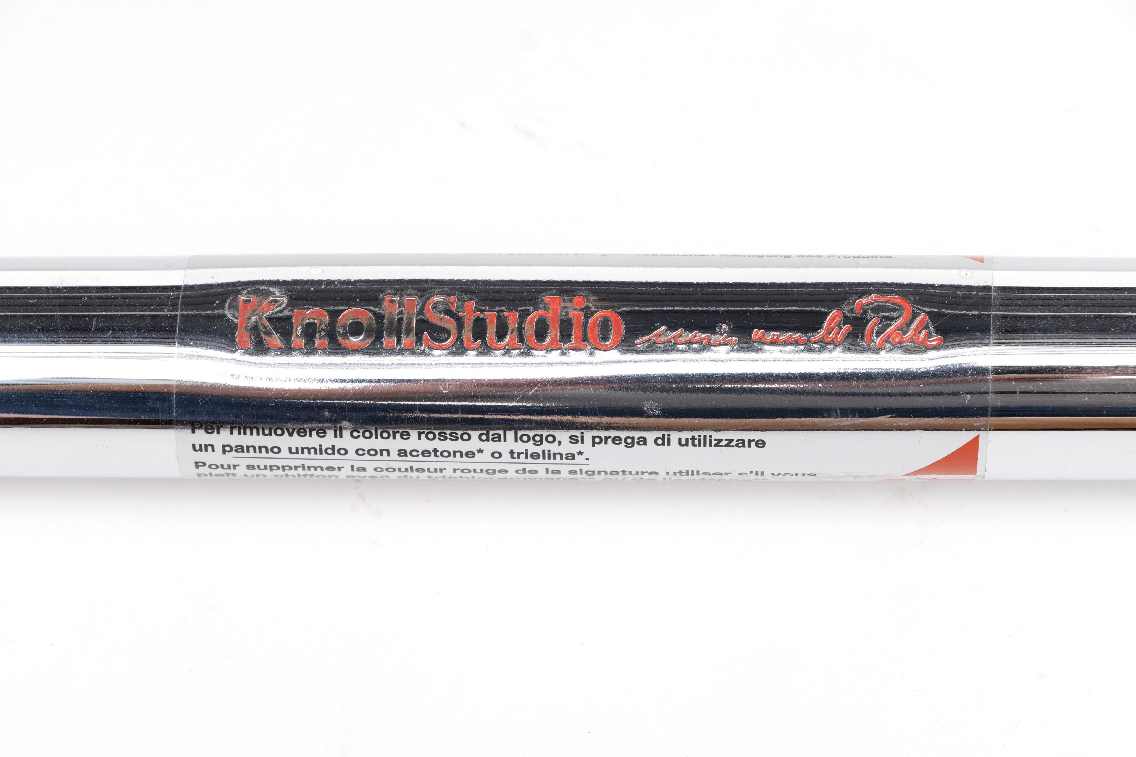 Verchroomd staal met zwart leder. Met certificaat. (Eén drukknopje onderzijde zitting defect)