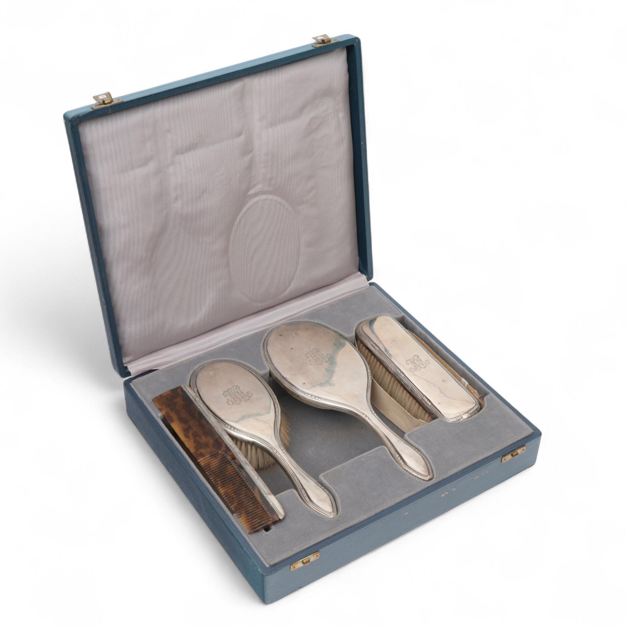 Vierdelige kaptafelset met lettermonogram gravure,