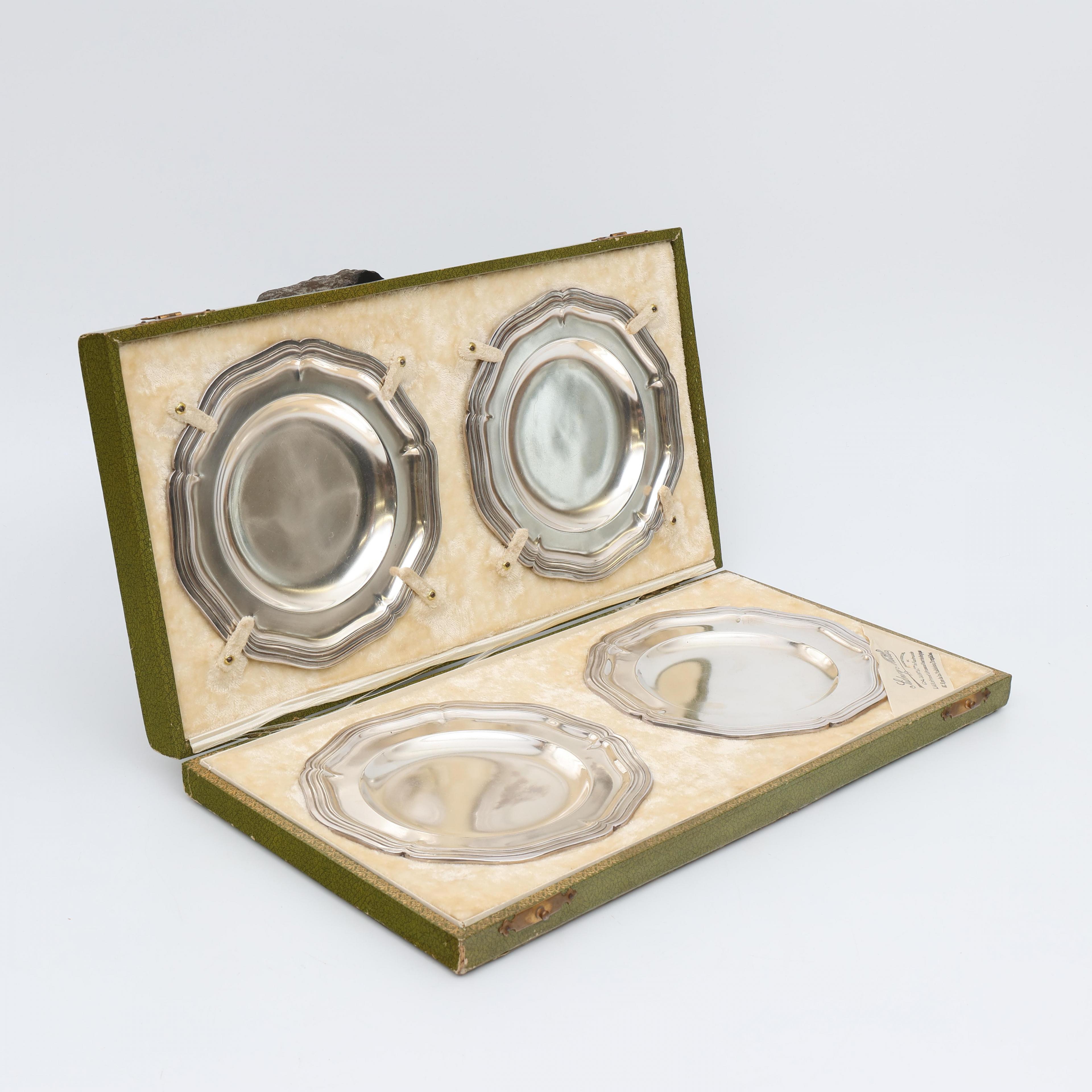 Vier pleet schotels in etui, Sidney Mills, Bruxelles;