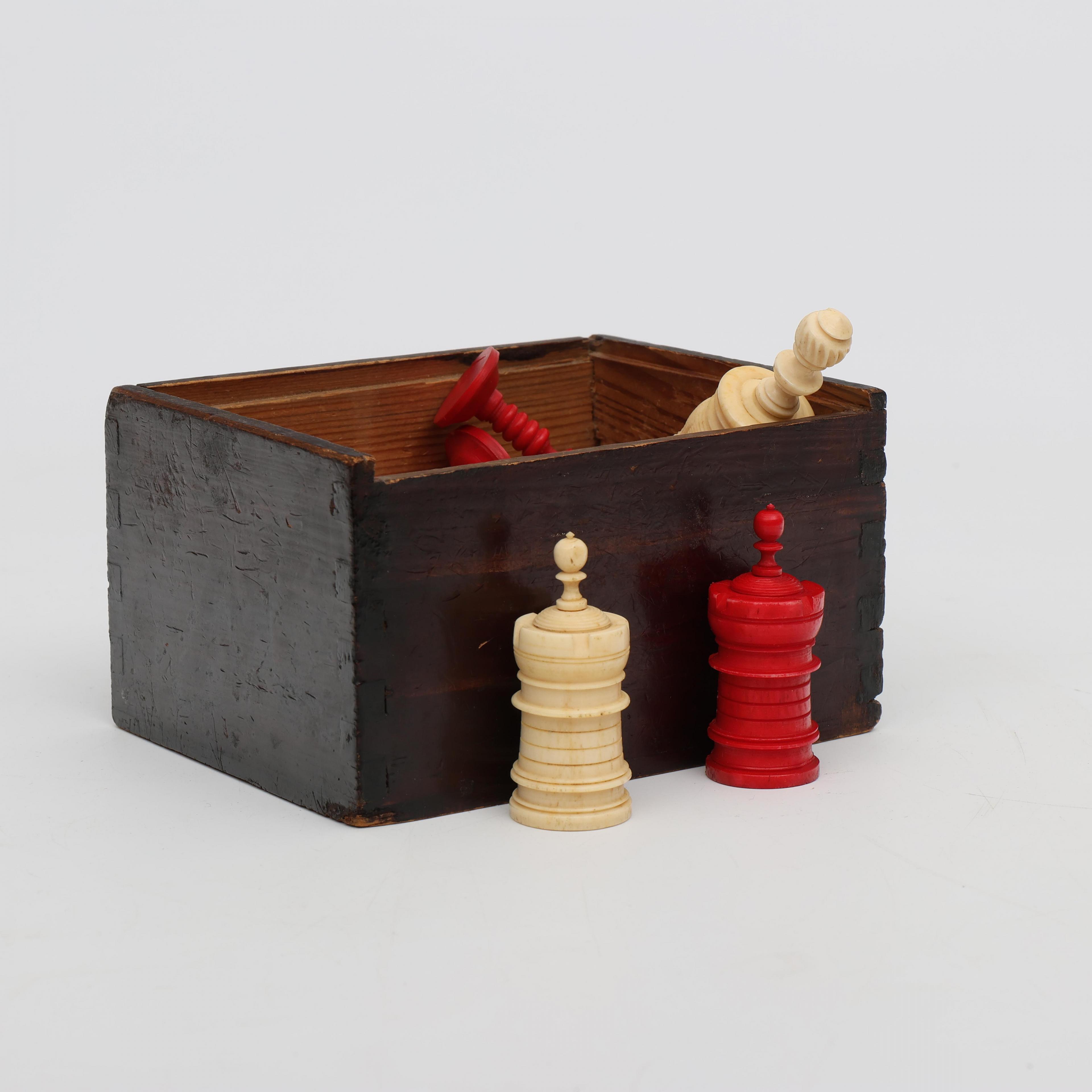 Uitgevoerd in rood/wit. Met houten kistje, deksel manco. (enkele restauraties).
