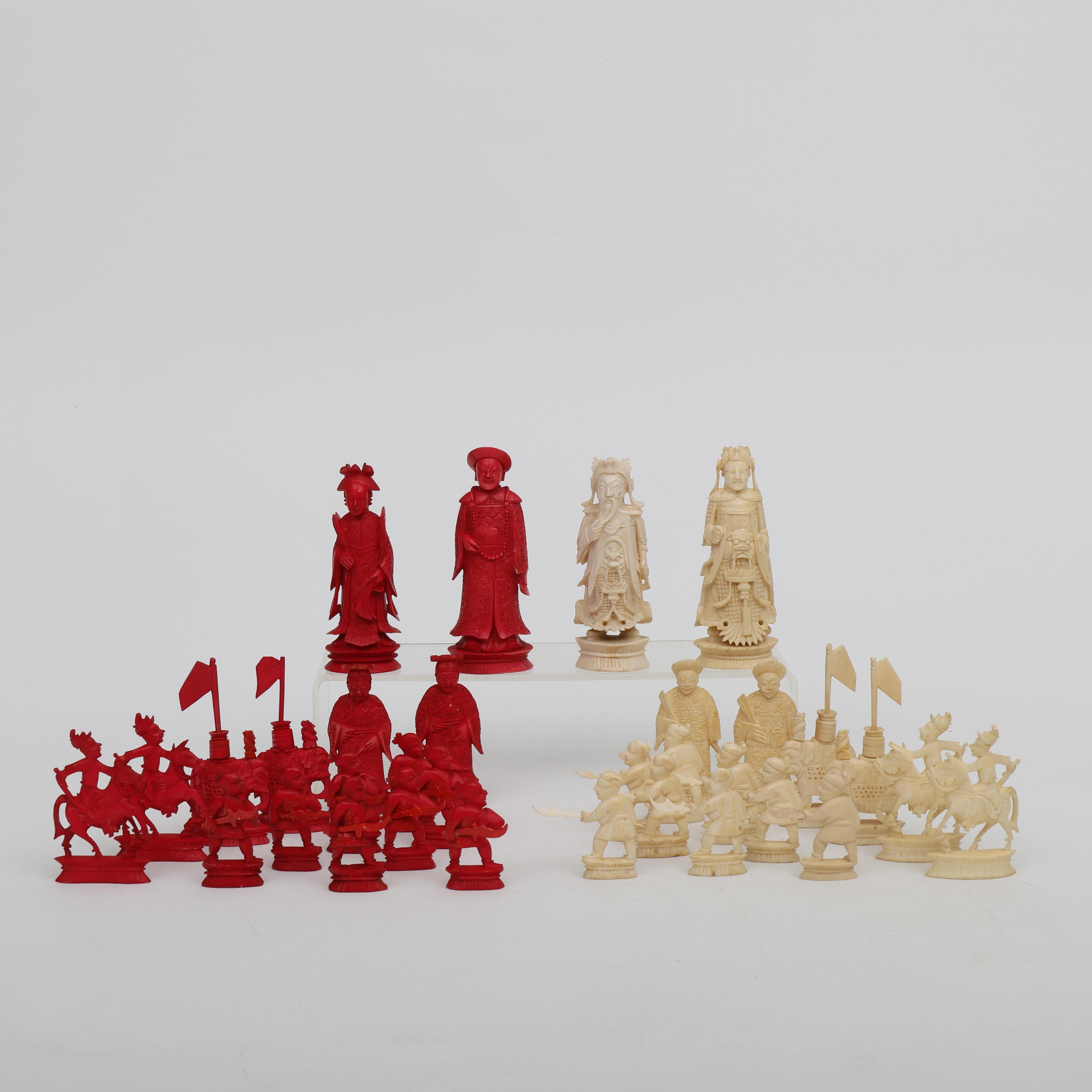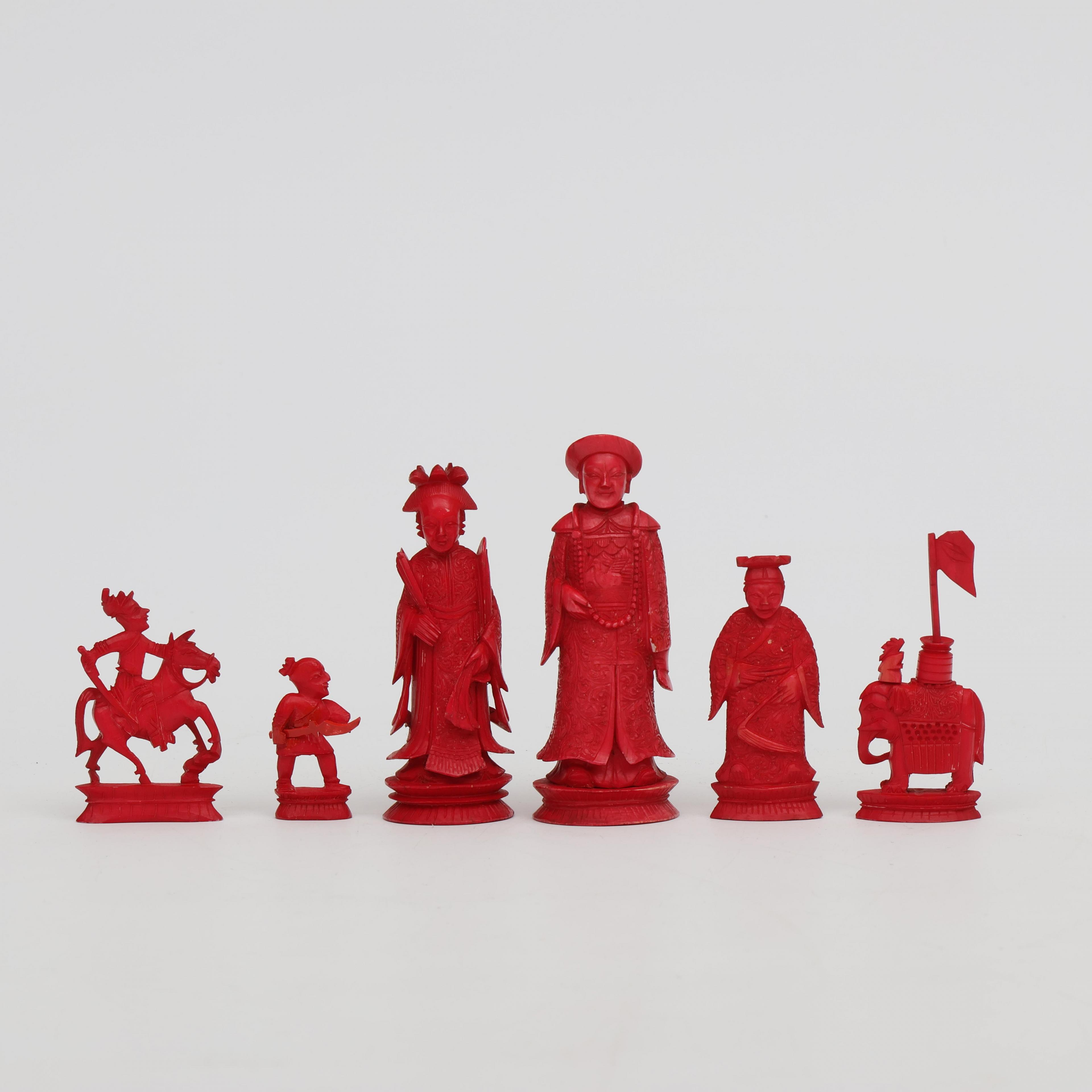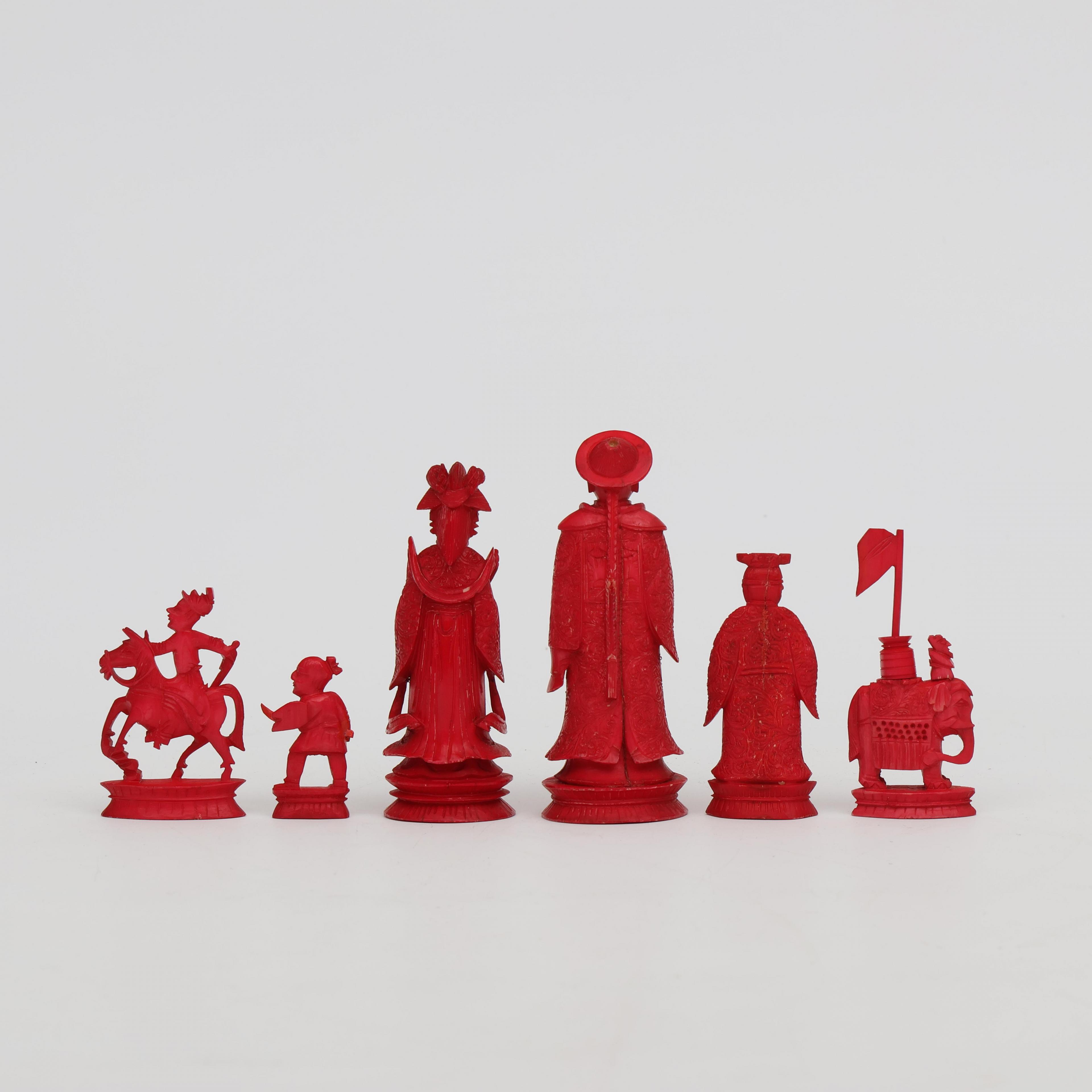 China, rood wit ivoren schaakspel, Kanton, 19e eeuw;