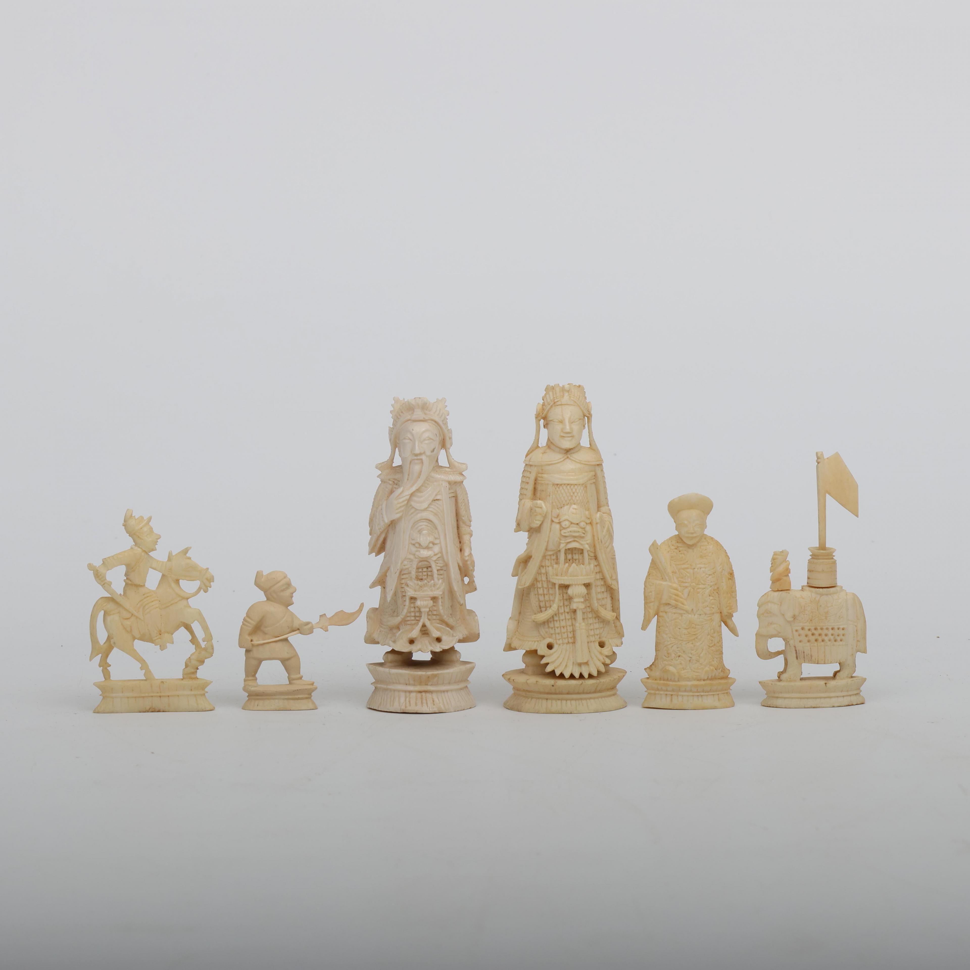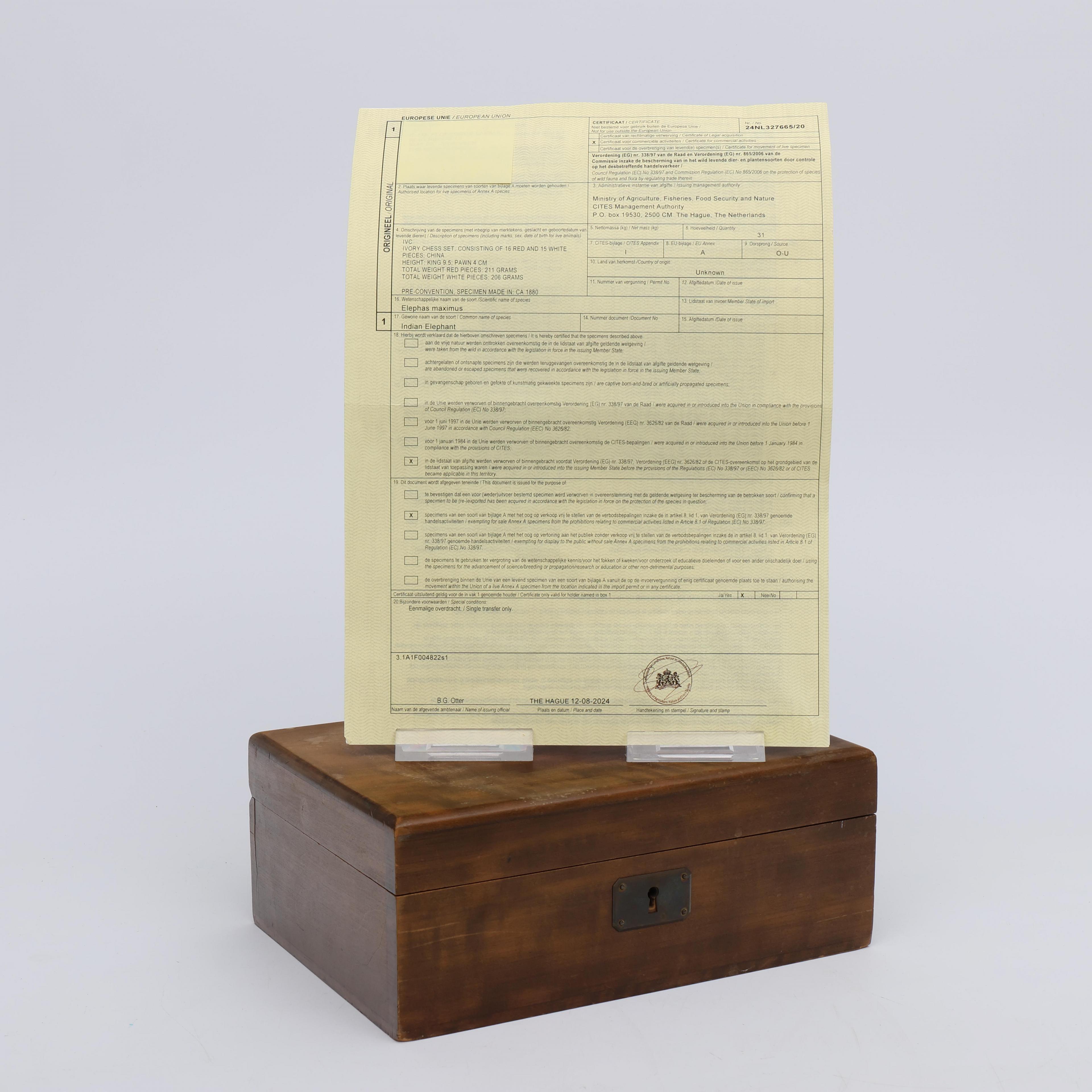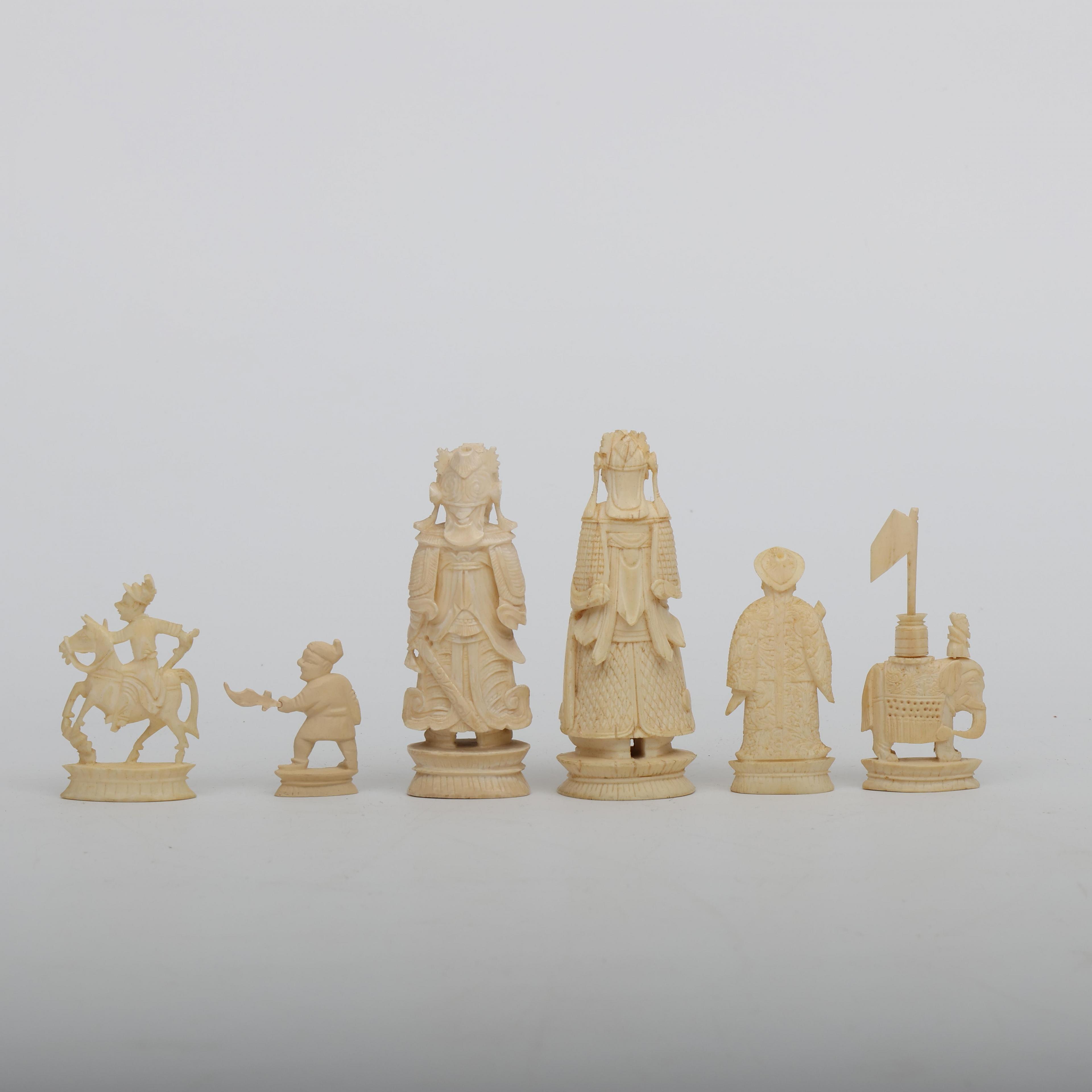 China, rood wit ivoren schaakspel, Kanton, 19e eeuw;