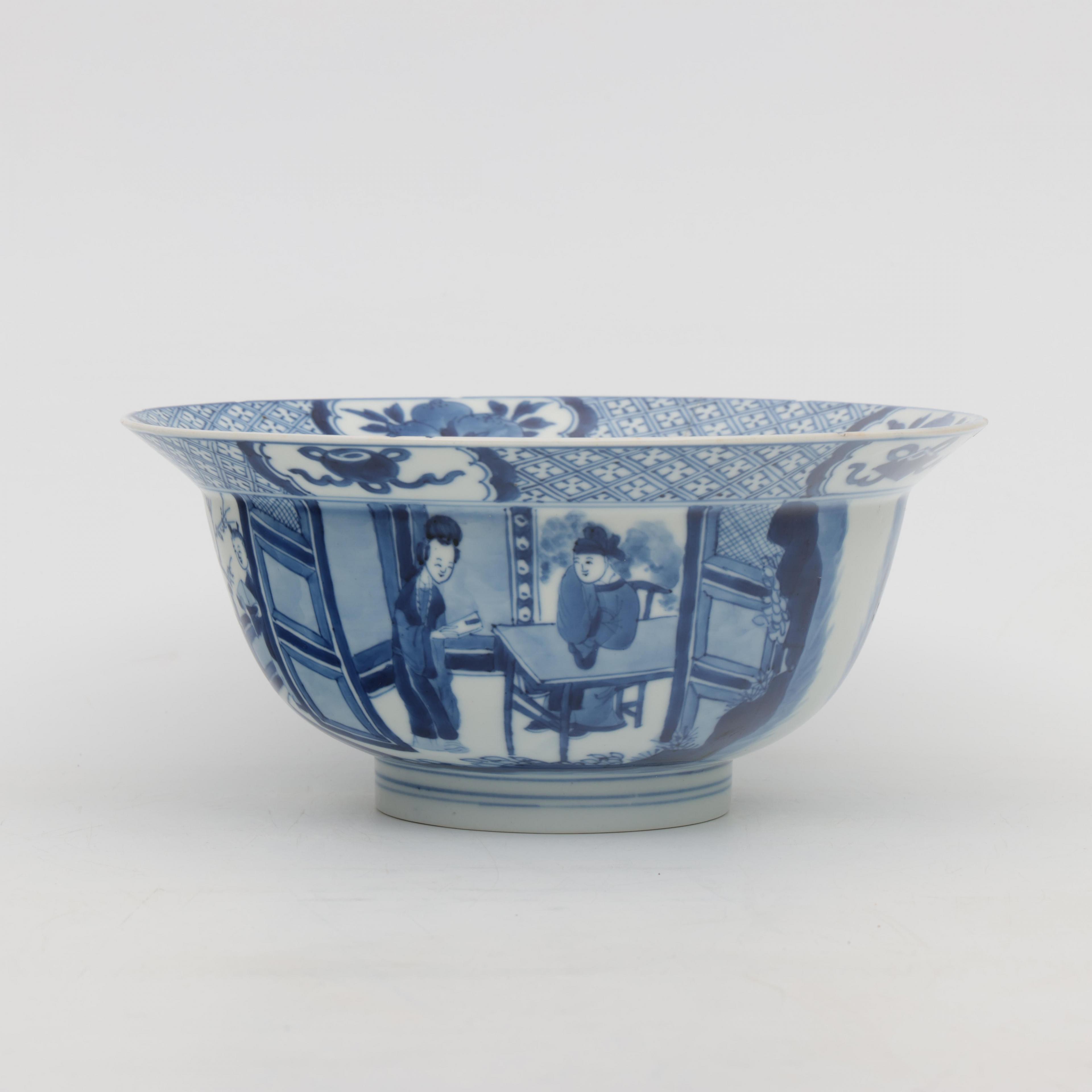 China, a blue and white porcelain 'Romance of the Western Chamber' bowl, Kangxi period (1662-1722),
