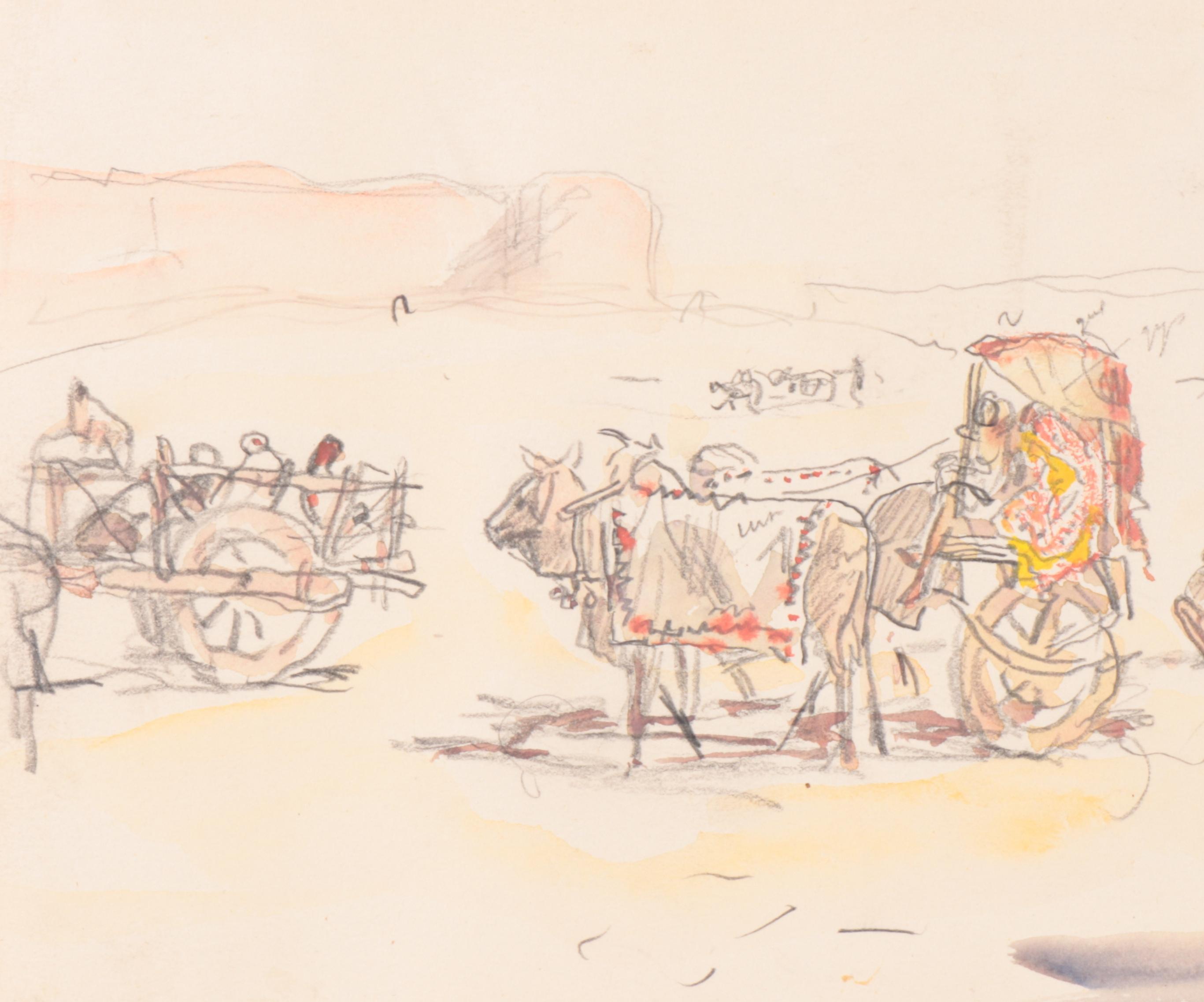 potlood en aquarel, met atelierstempel, van Wisselingh no. 5410, 13 x 18 cm.