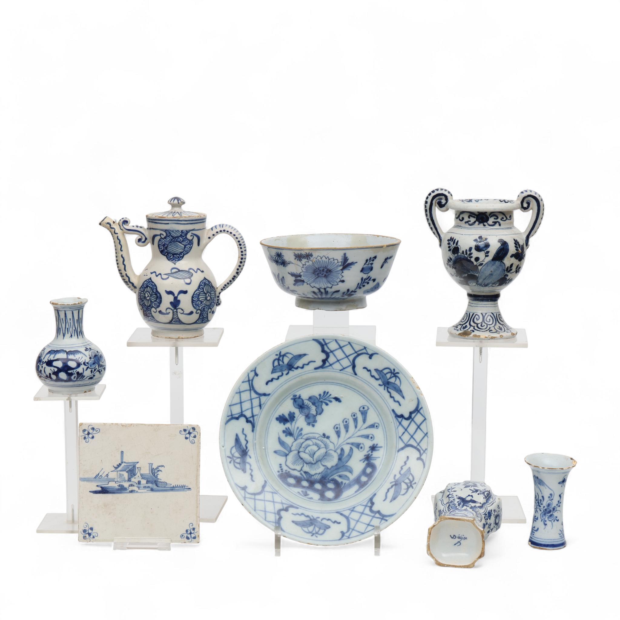 Delft, divers blauw wit aardewerk, 18e eeuw;