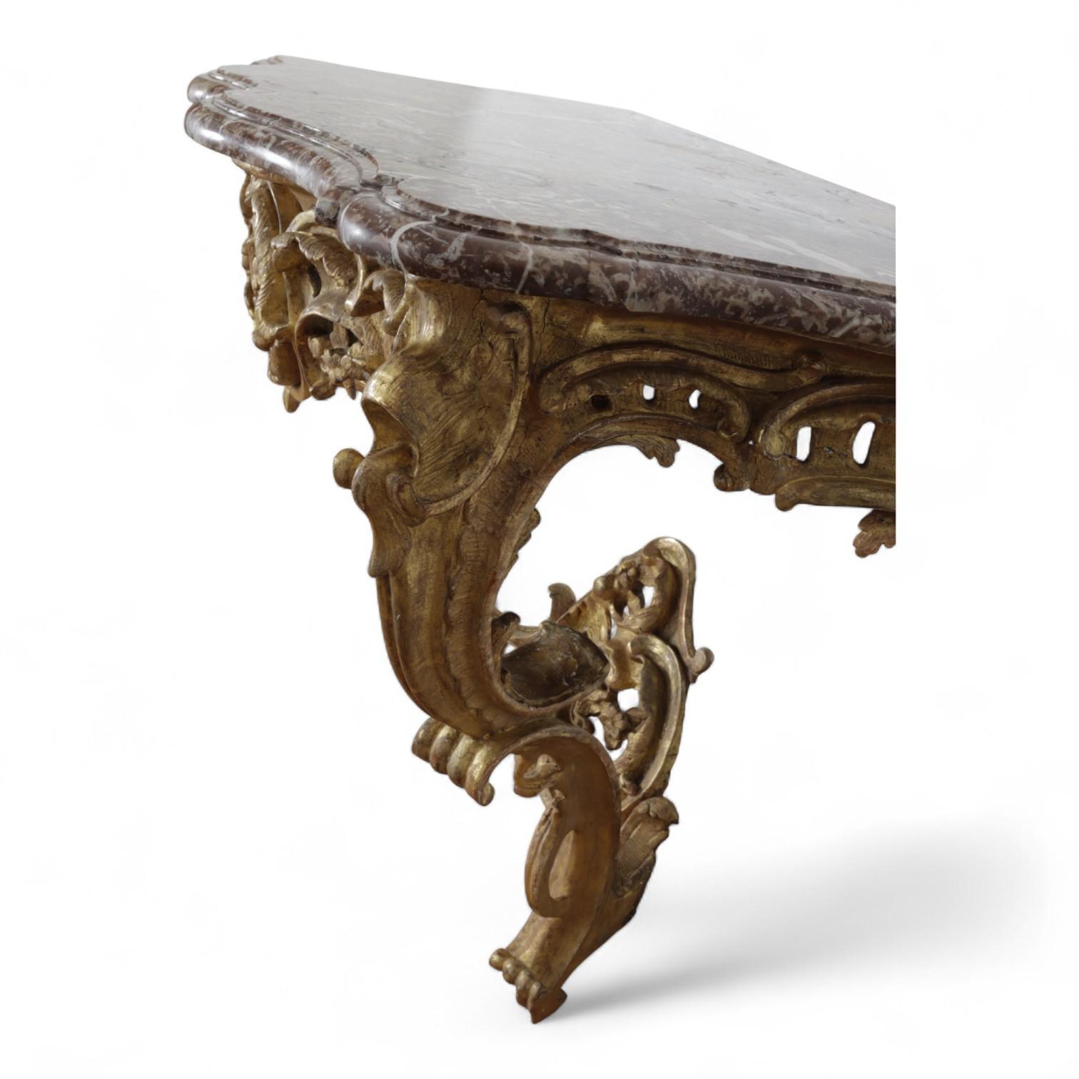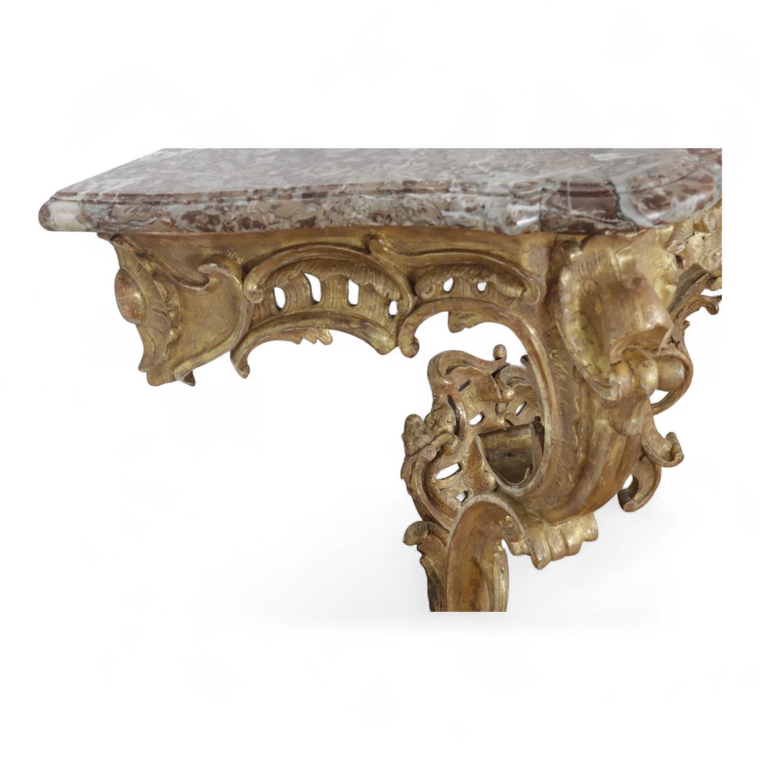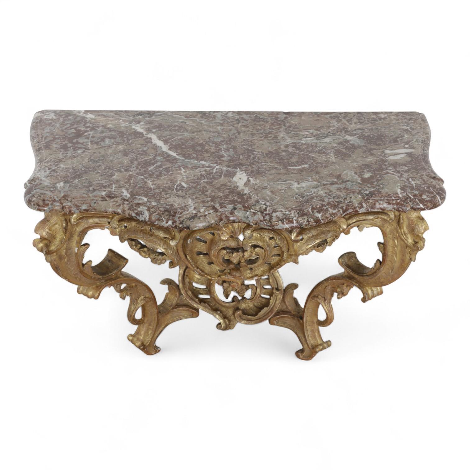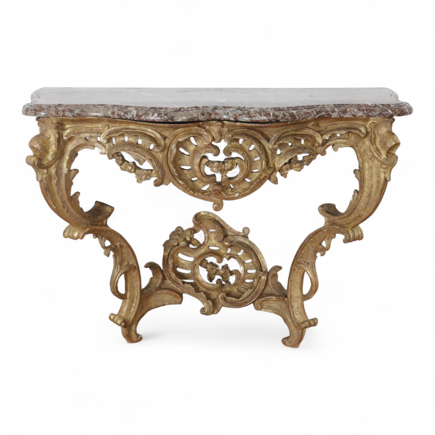 Frankrijk, verguld eikenhouten console, Rococo, 18e eeuw,