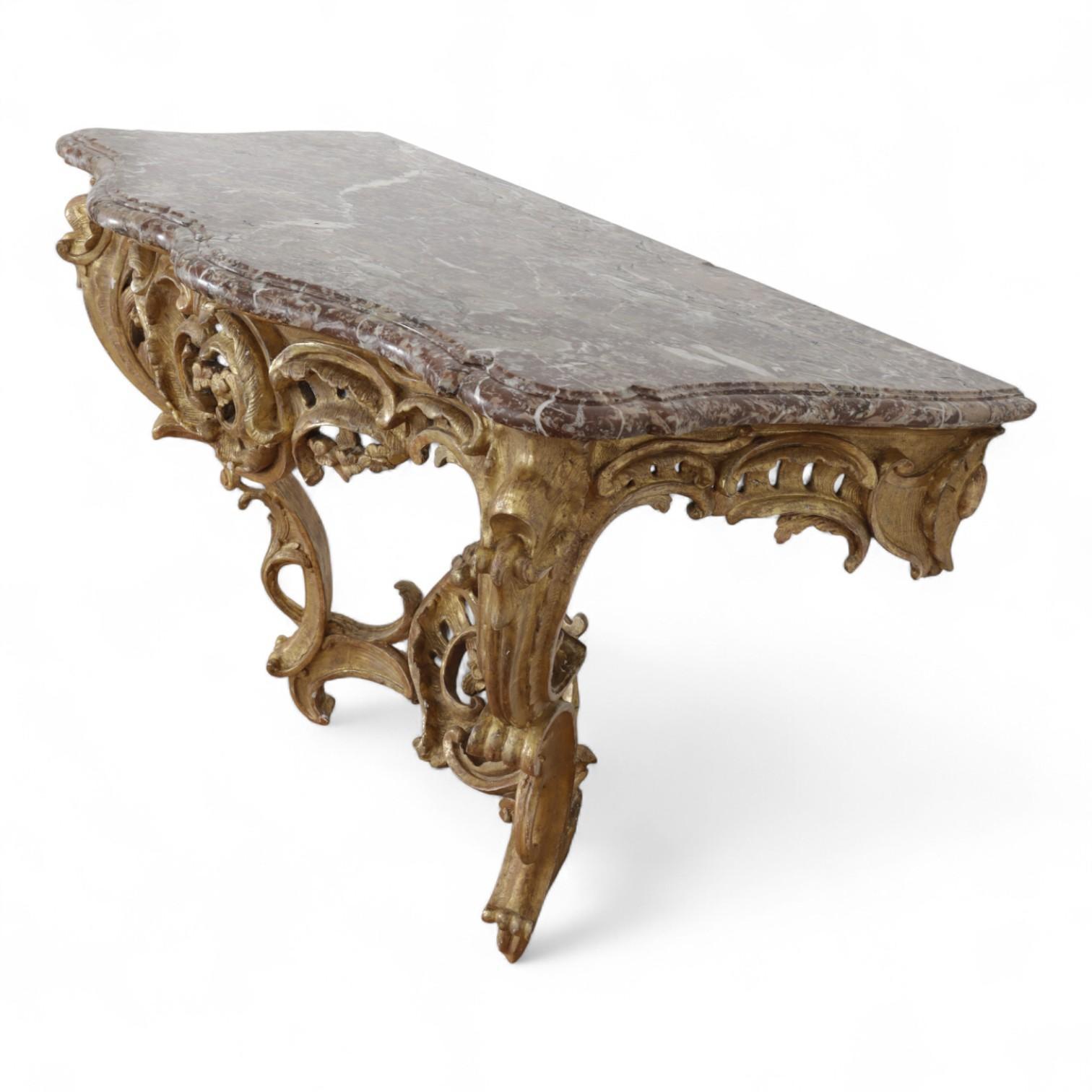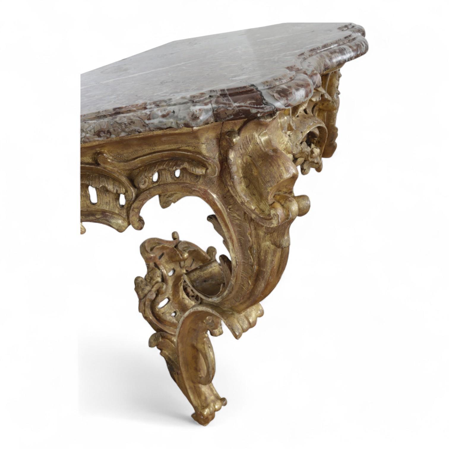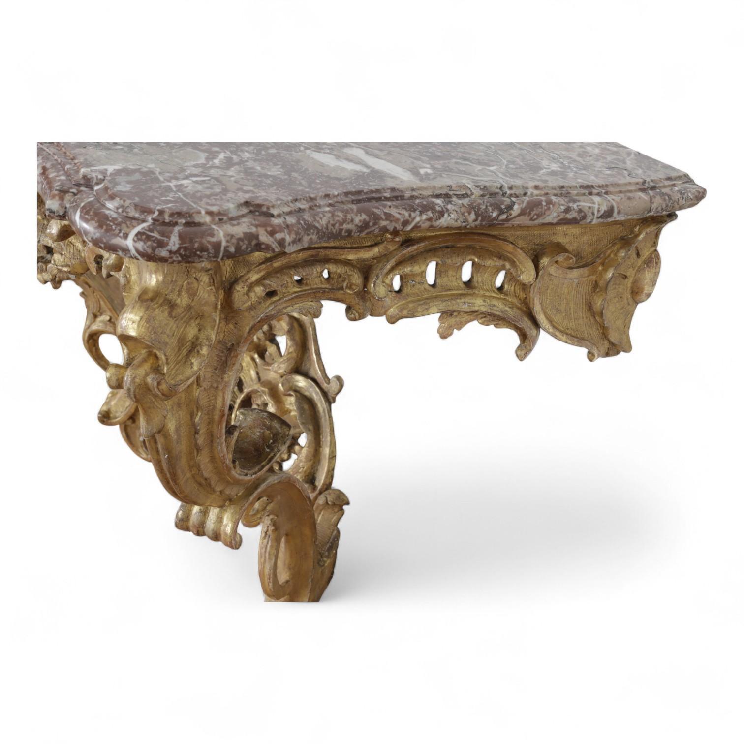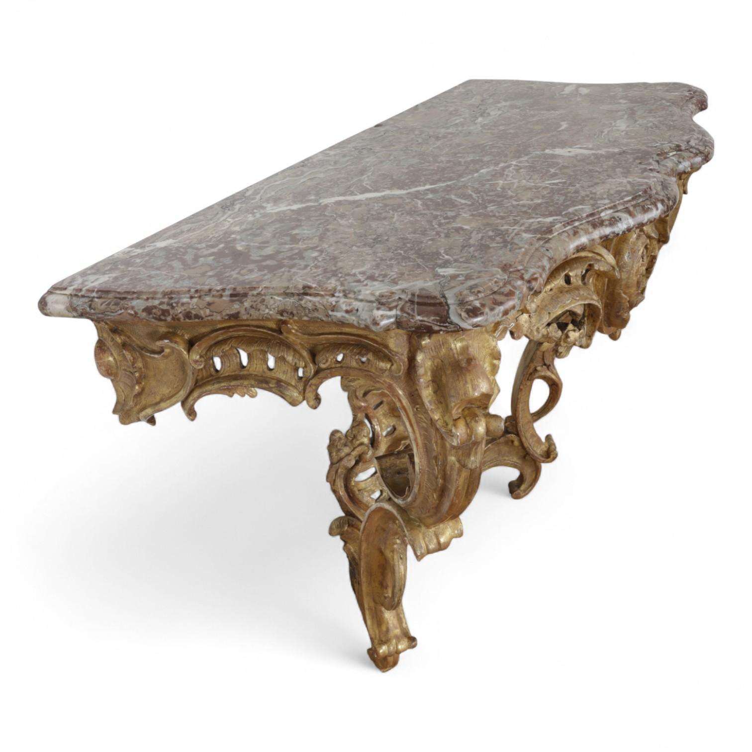 Frankrijk, verguld eikenhouten console, Rococo, 18e eeuw,