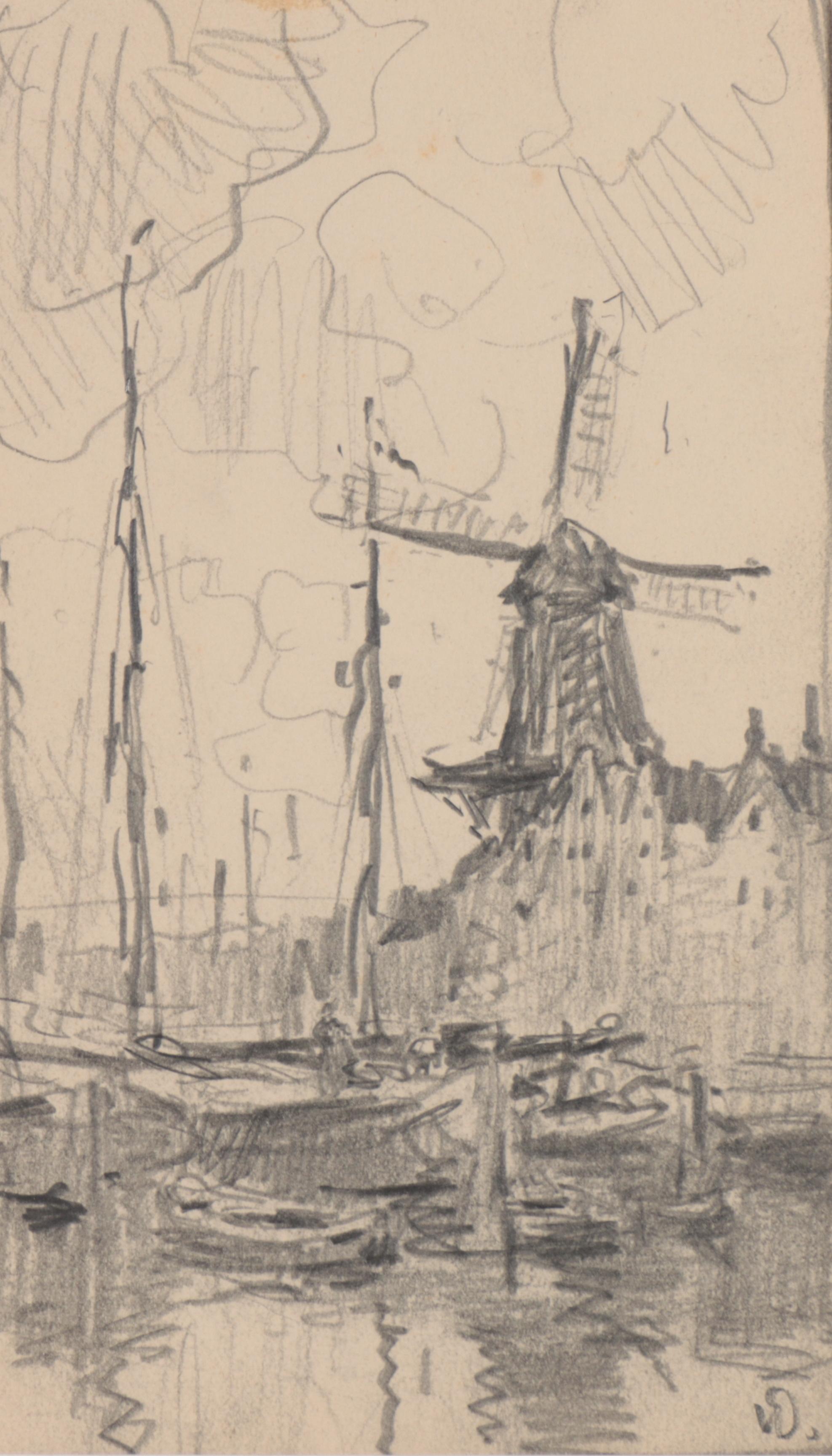 houtskool, gesigneerd rechtsonder, 17,5 x 10,5 cm.
