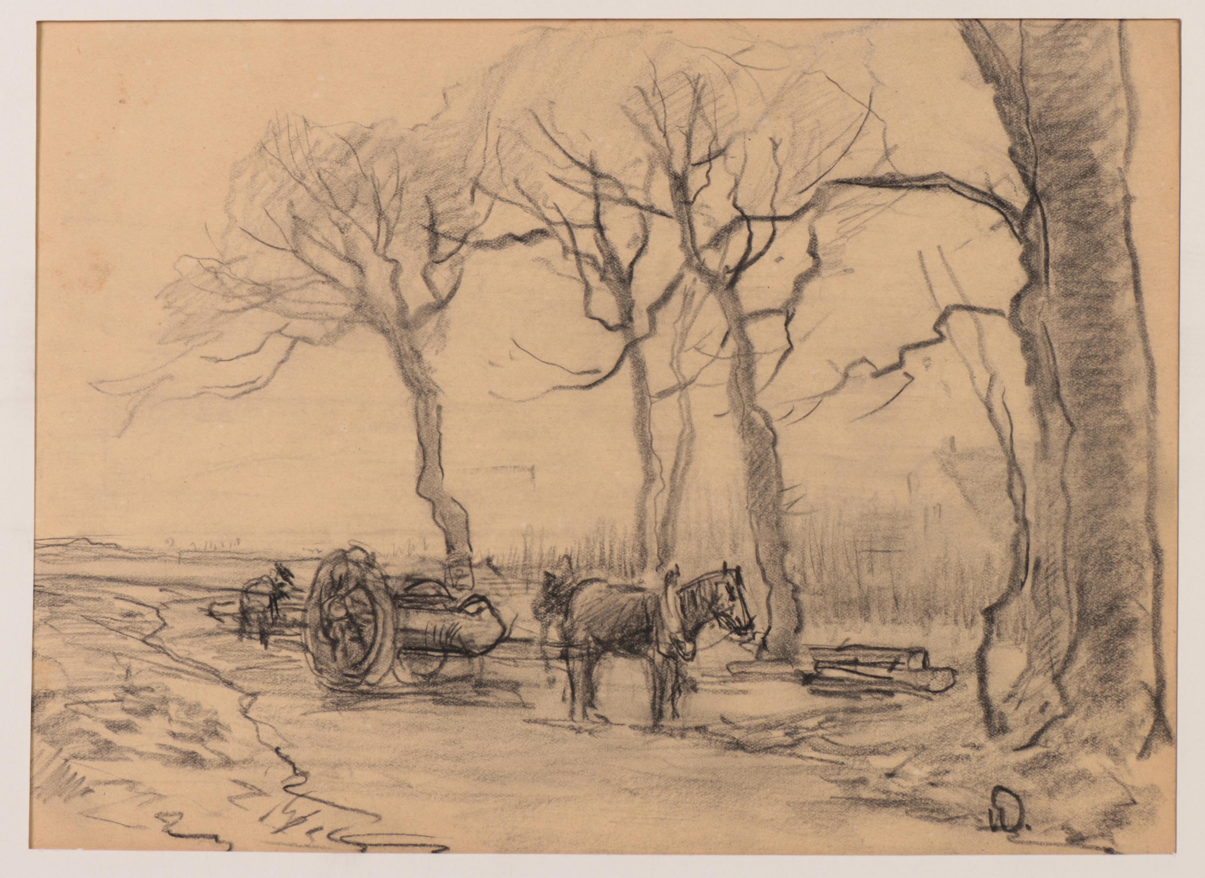Houtvesters met paardenkar