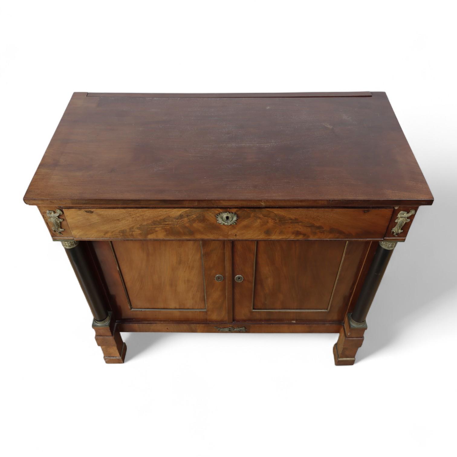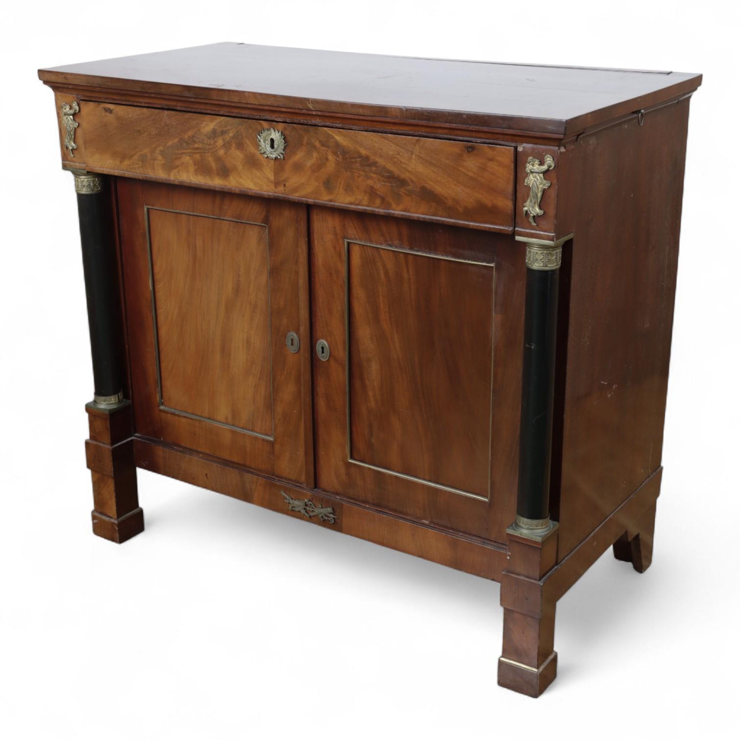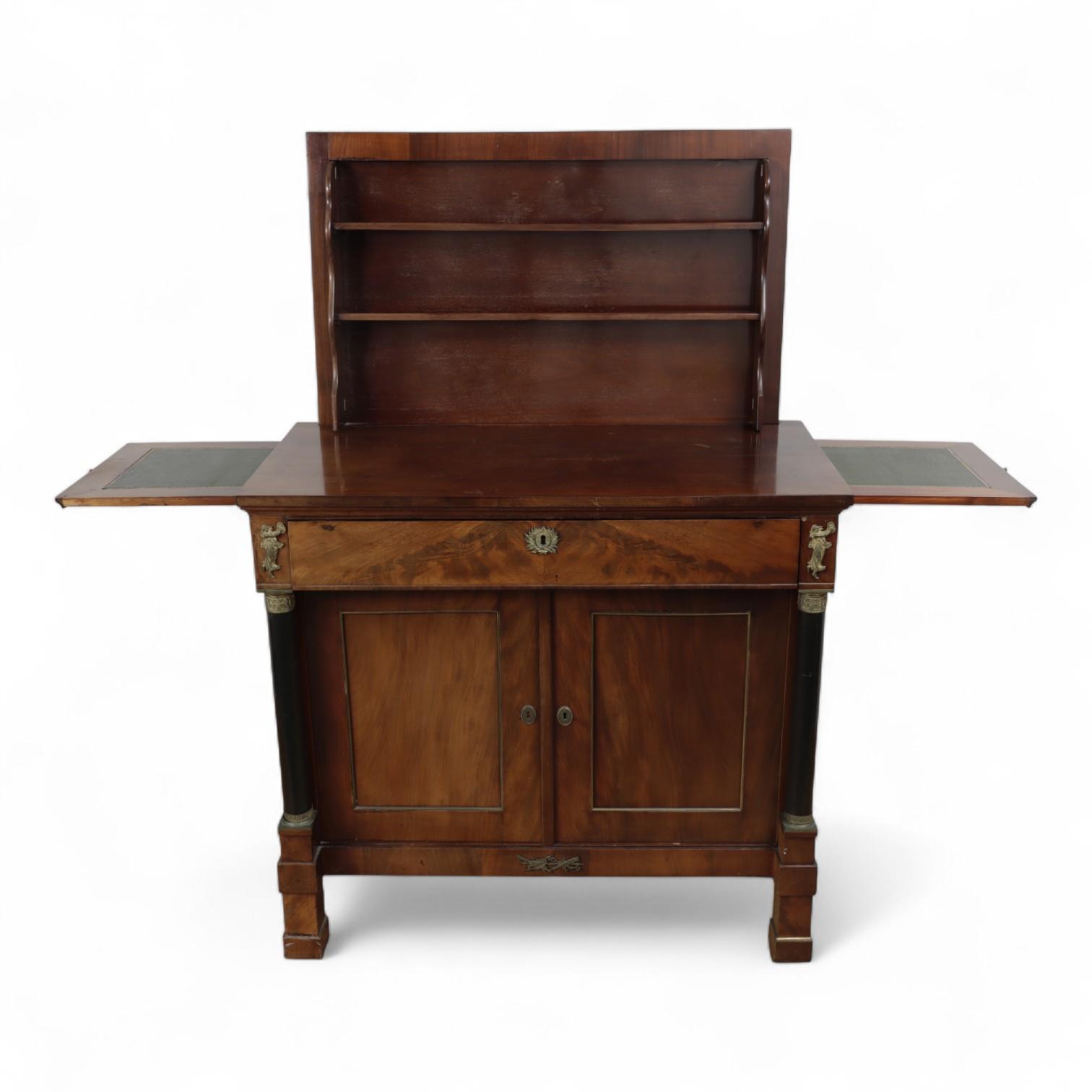 met uitschuifbare glasetagère, lade, twee deuren en uitrekbladen, Voor de hoekstijlen vrijstaande gezwarte kolommen