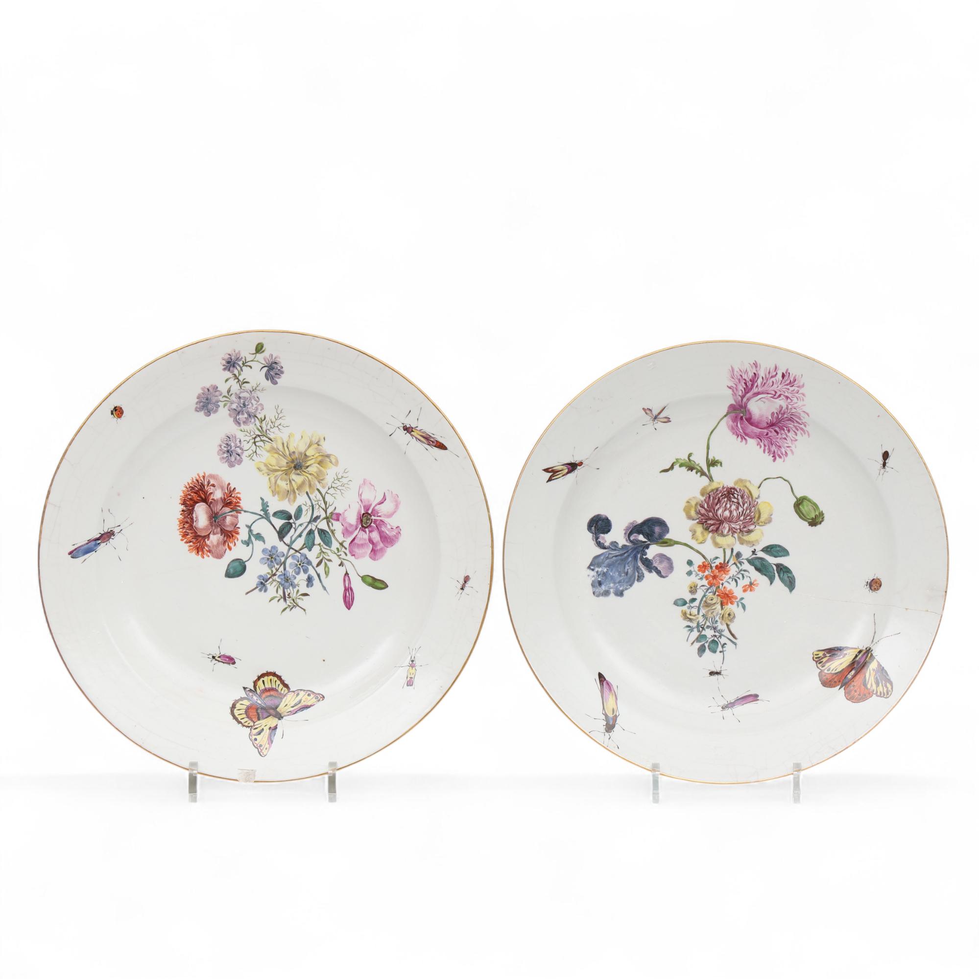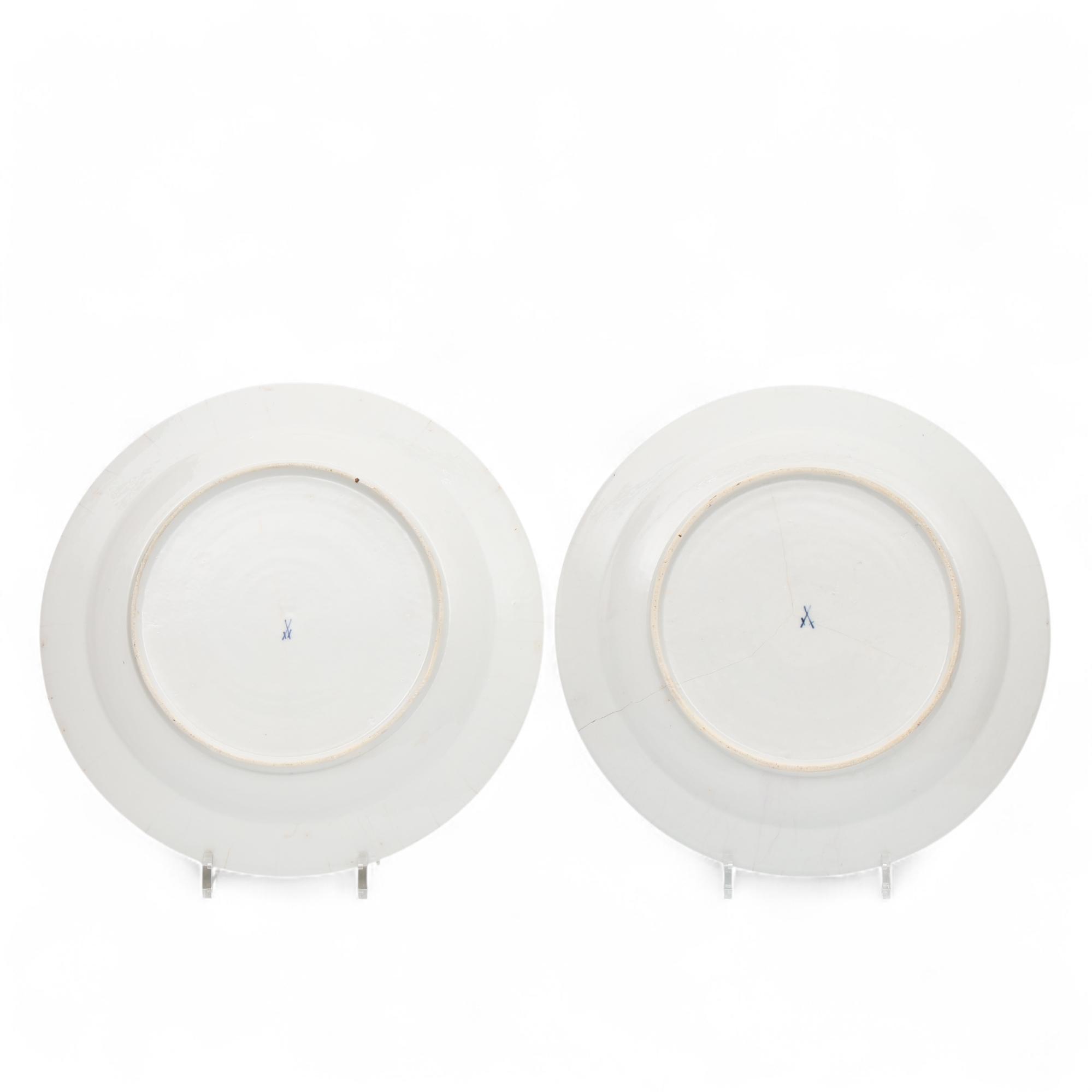 Meissen, twee wit aardewerk en polychroom beschilderde schotels, 18e eeuw;