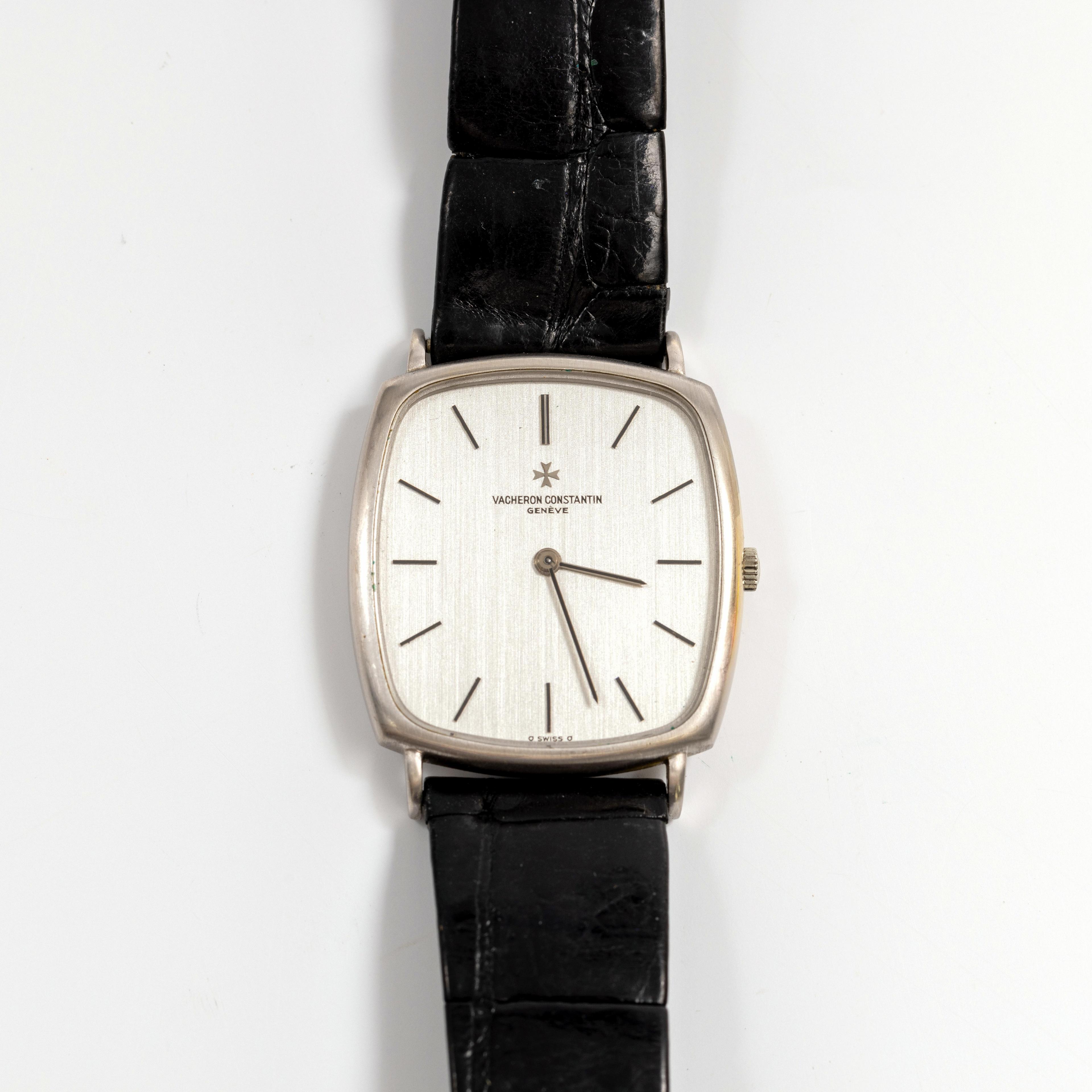 Vacheron Constantin, 18 k. white gold wristwatch. Manual winding. Silver-coloured dial with batons at the hours. On an original black crocodile leather strap. The inside numbered 2137 and S11188.