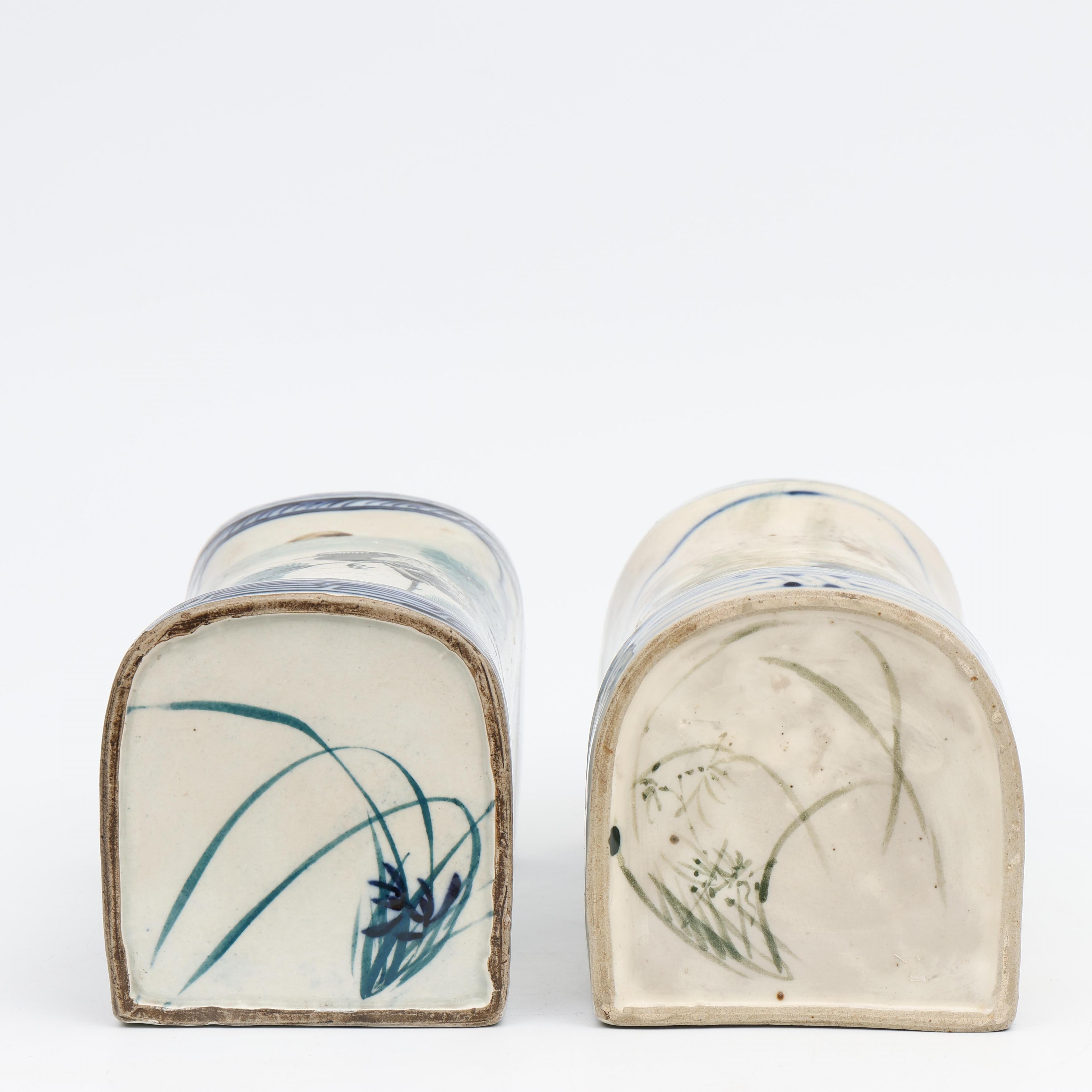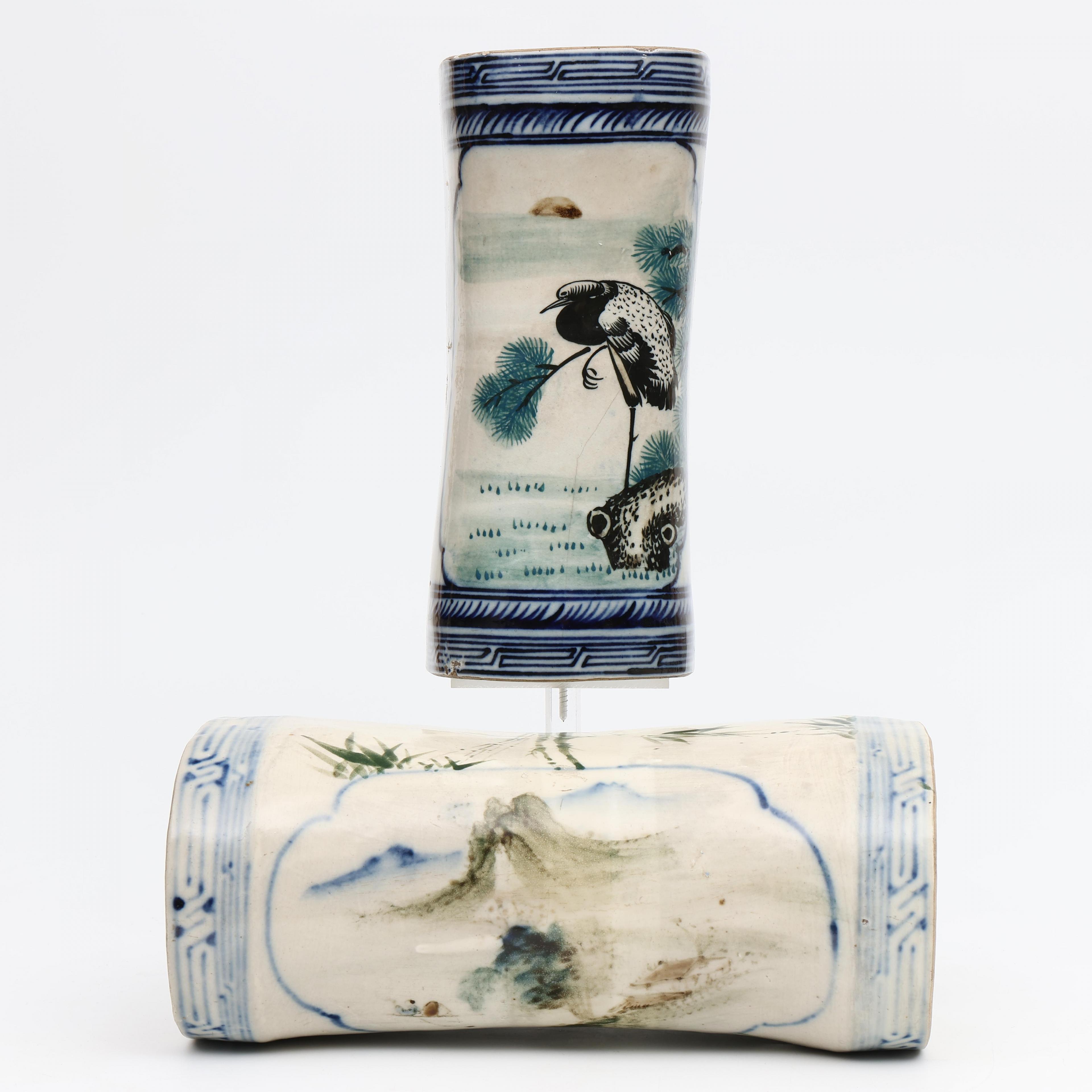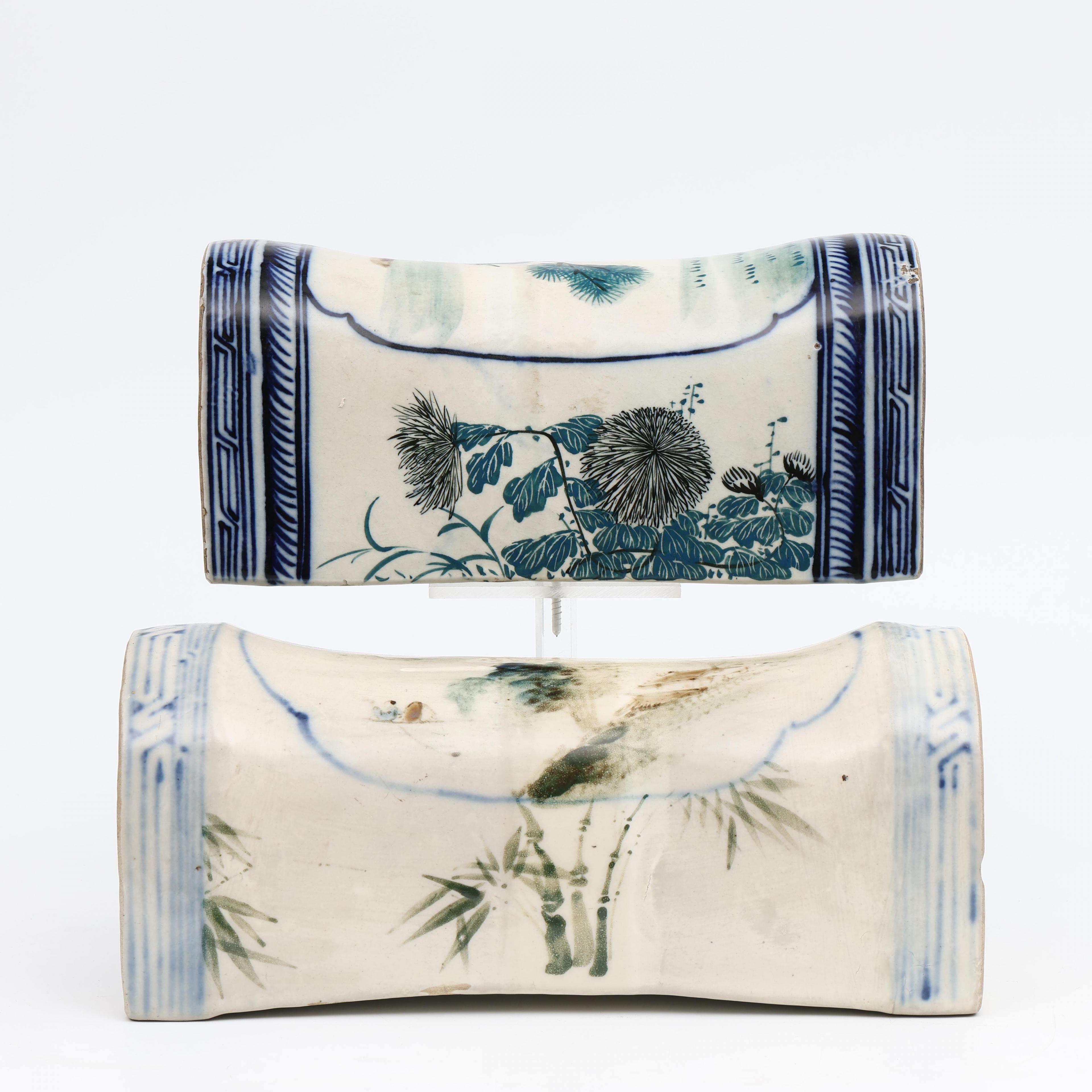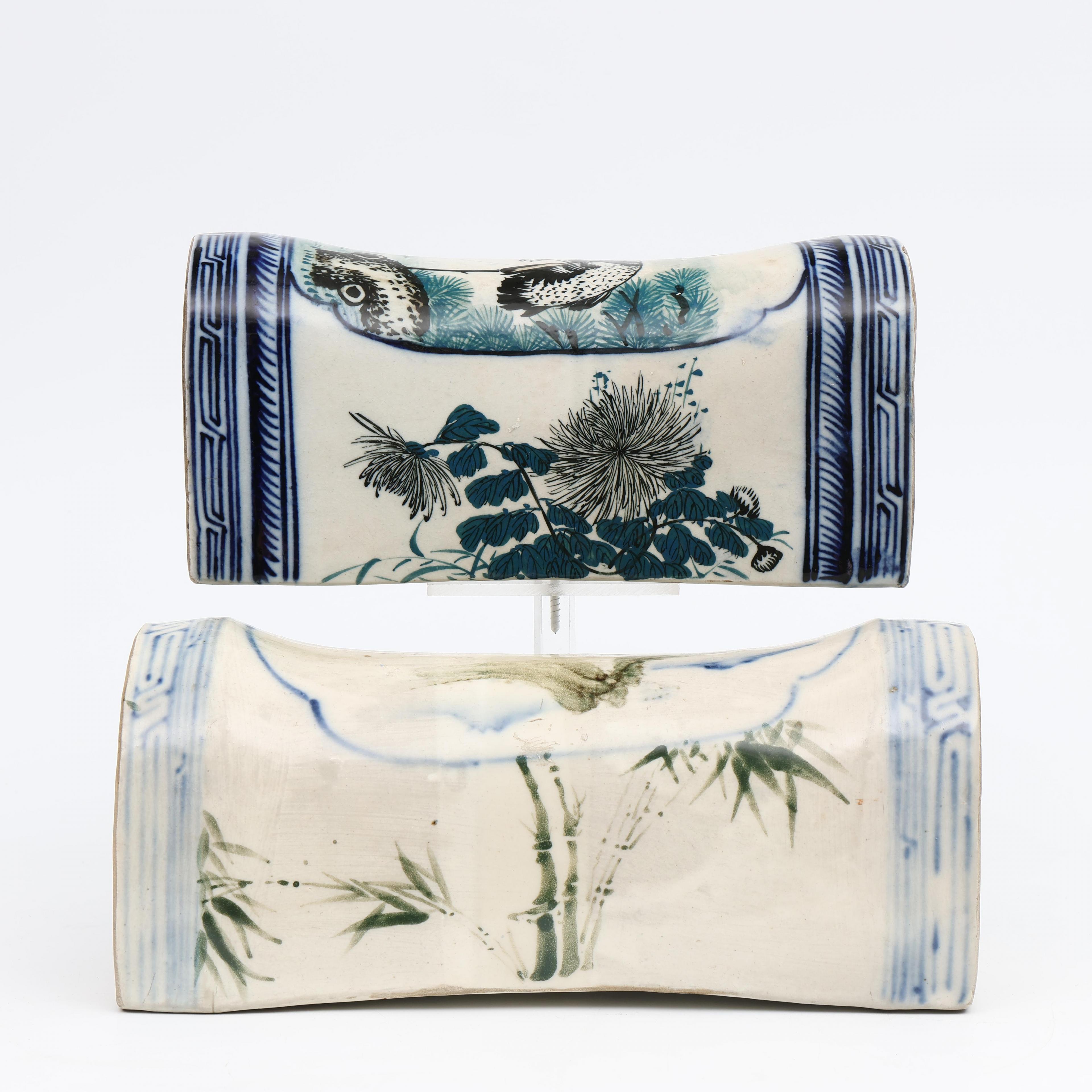 China, two blue and white porcelain neck rests, 20th century;