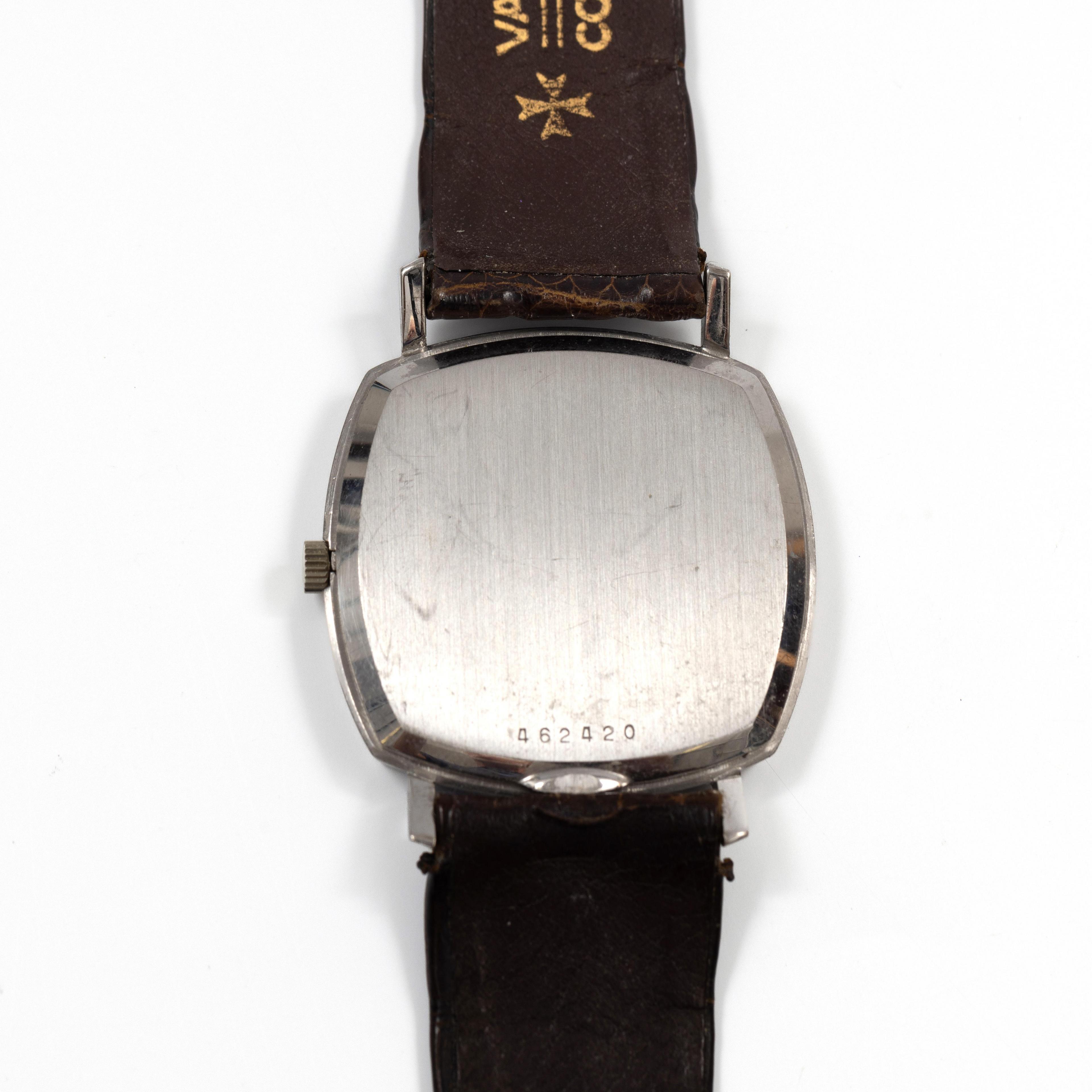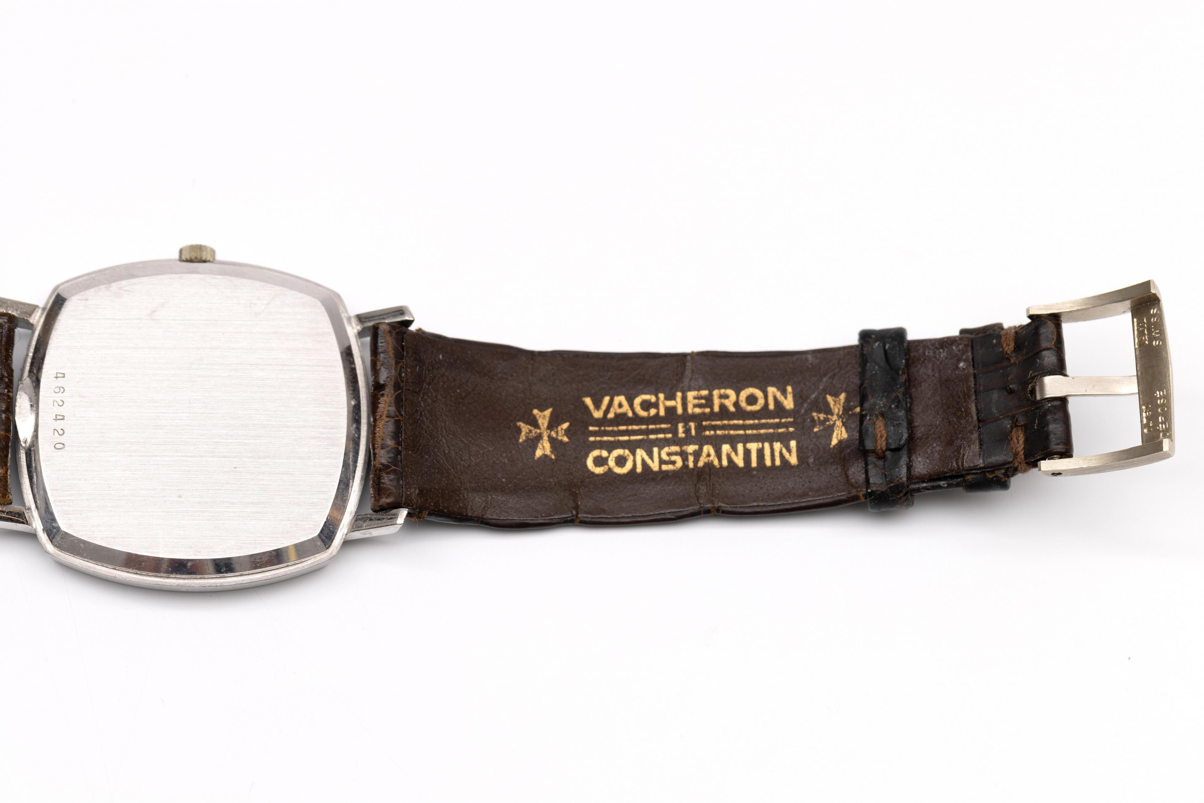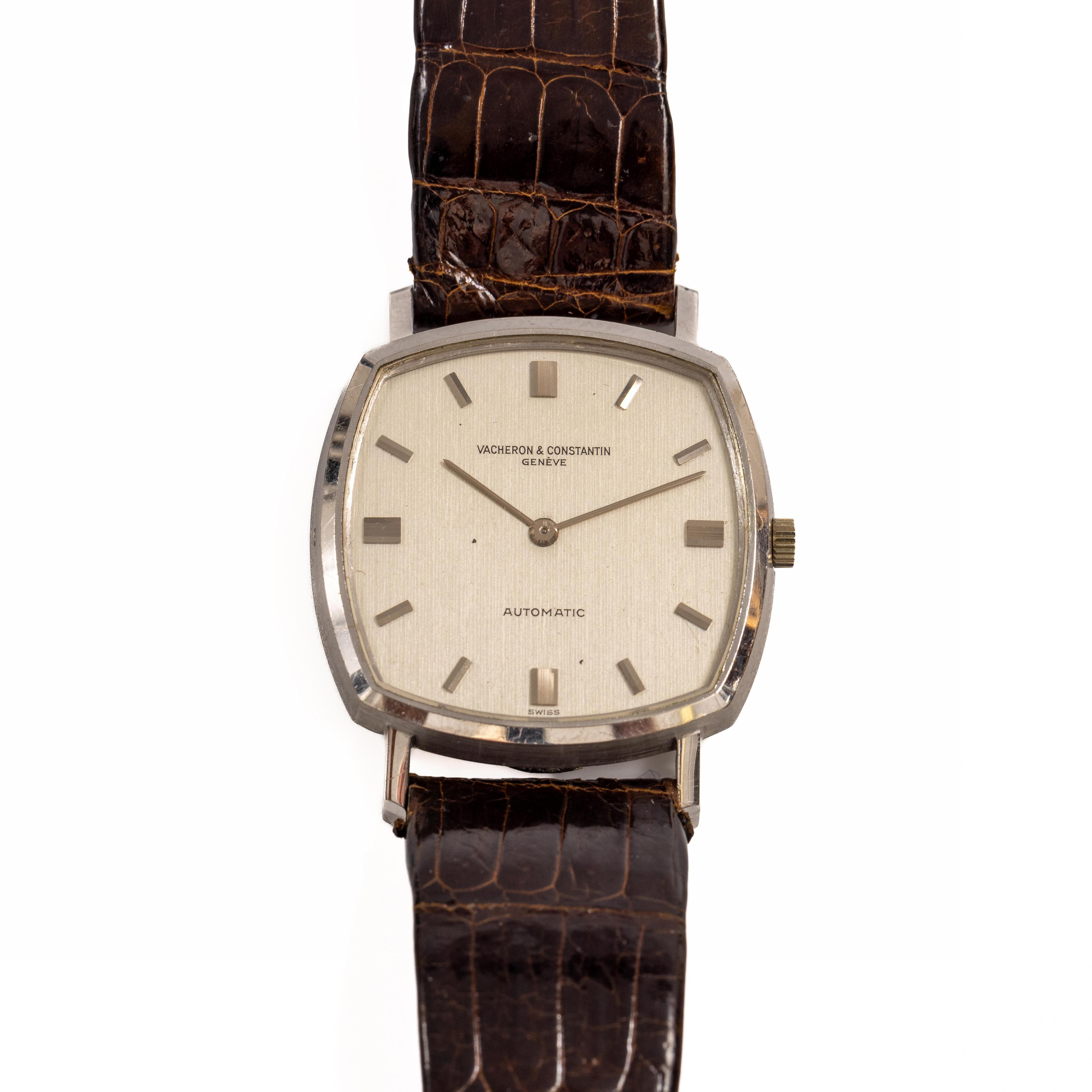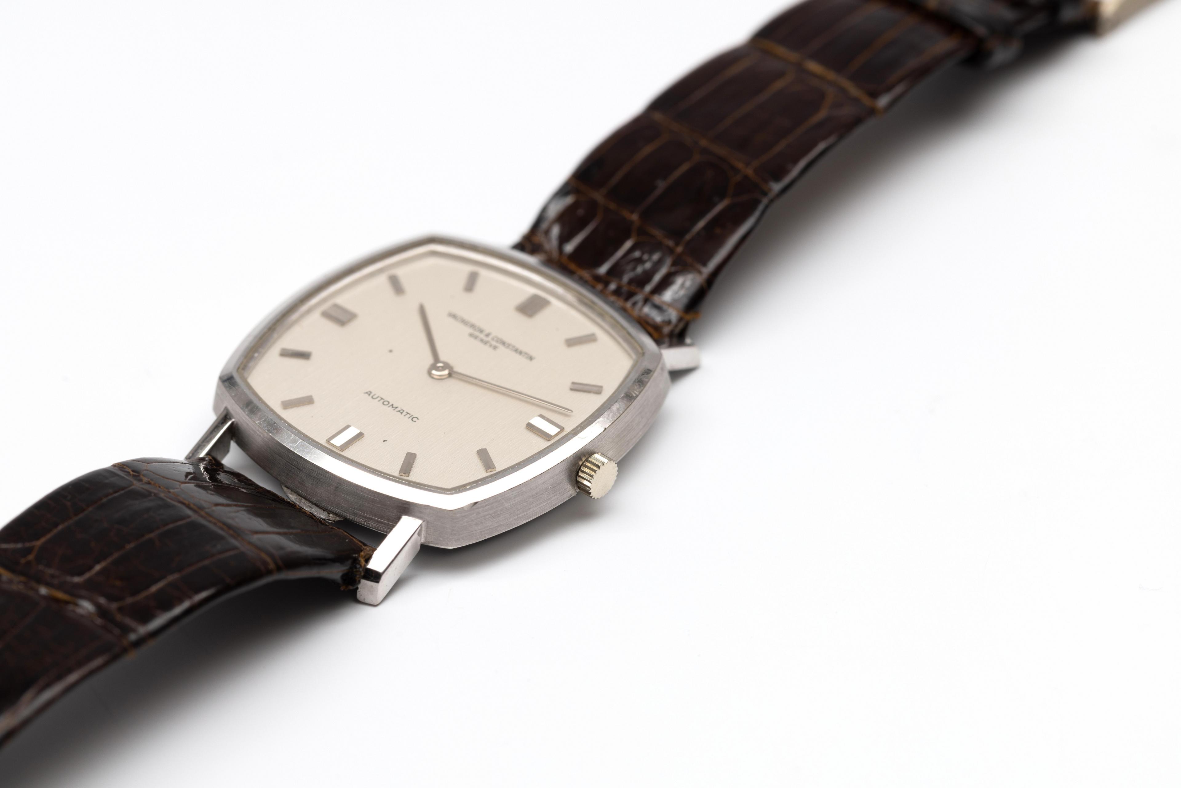 Vacheron Constantin, 18k. white gold wristwatch. Automatic. With a silver-coloured dial and baton hour markers. On an original dark brown leather strap. Numbered 7390 on the inside.