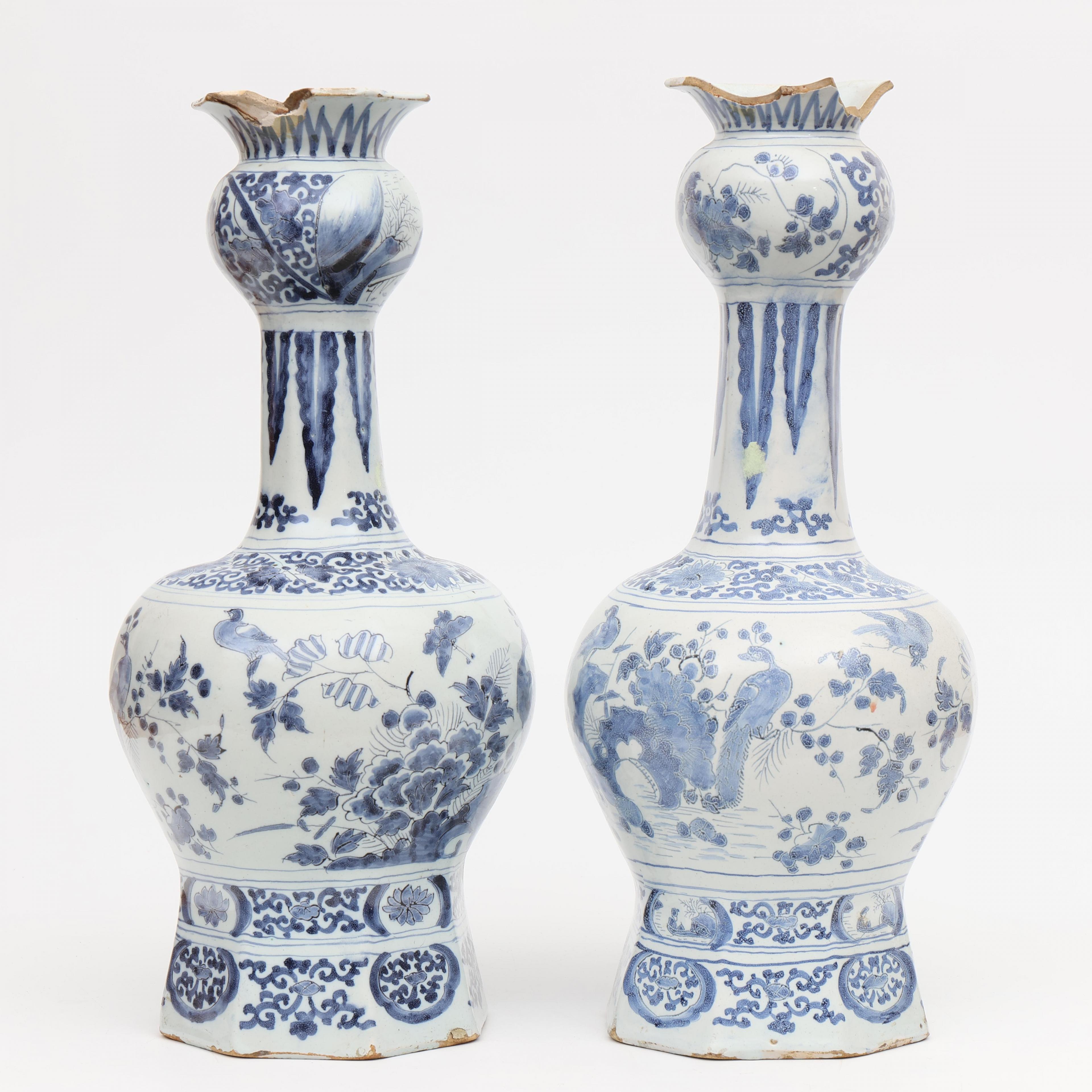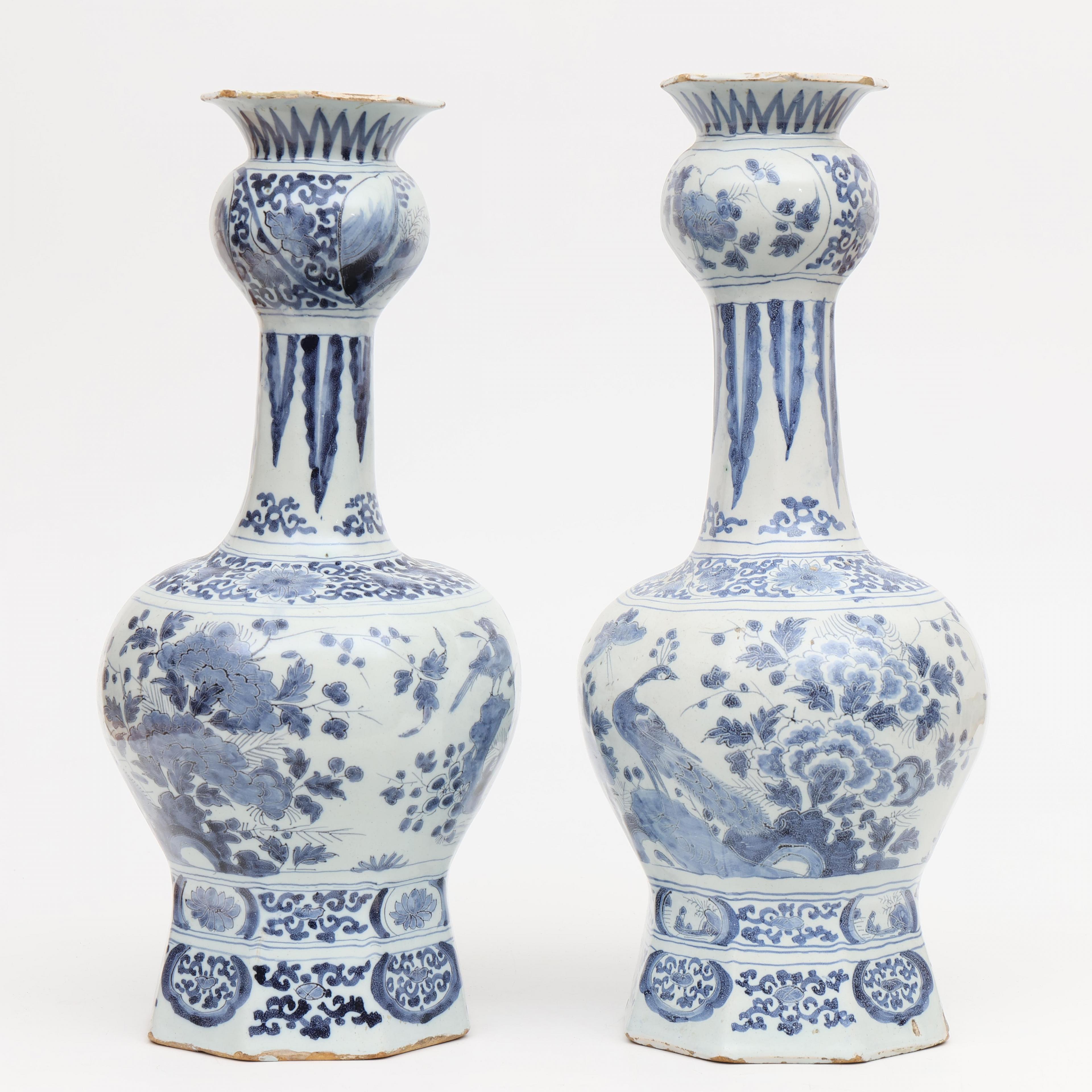 Uitgevoerd met florale schildering, pauwen en vlinders. (beide beschadigd).