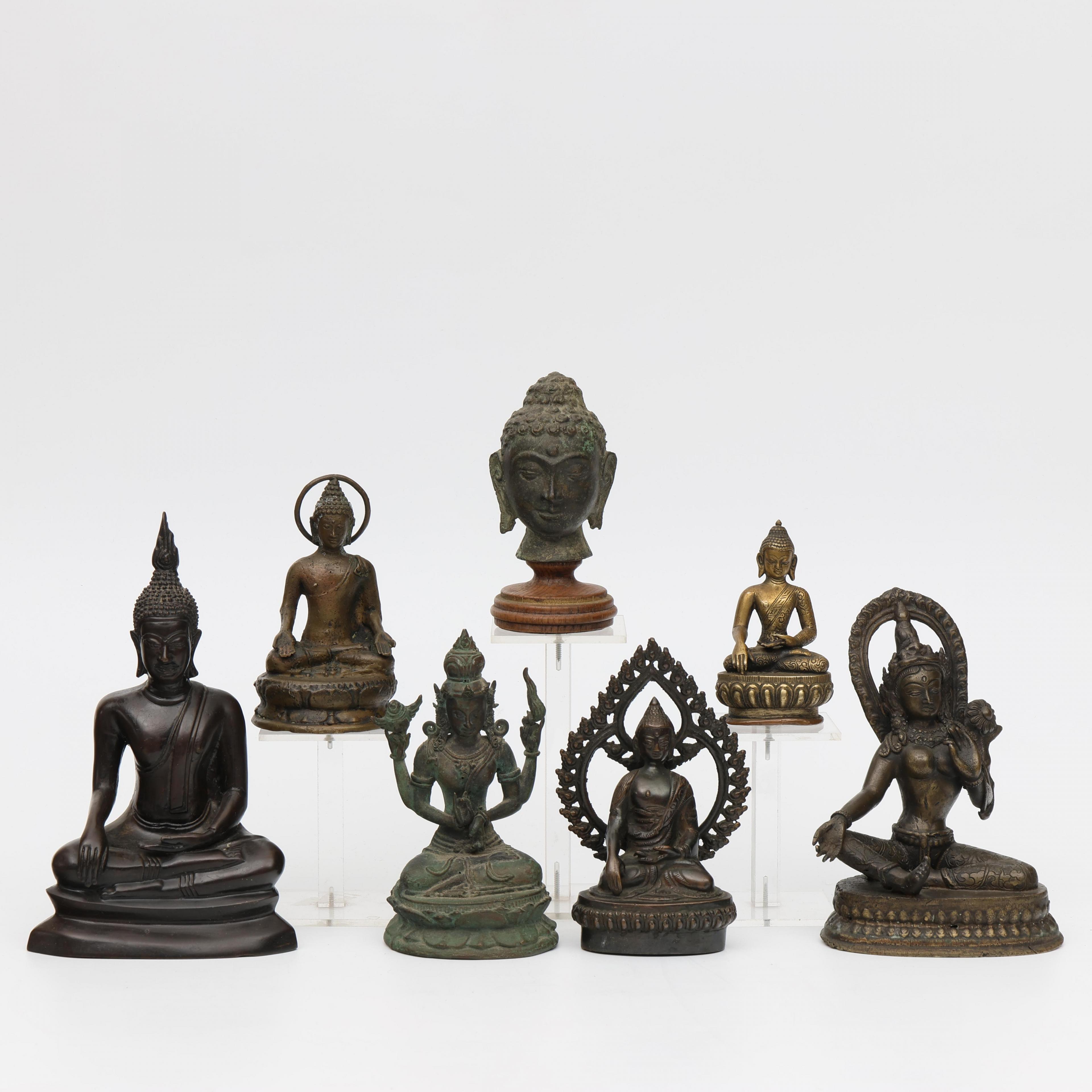 Zuid-Oost Azië, zeven bronzen en metalen Boeddha's;