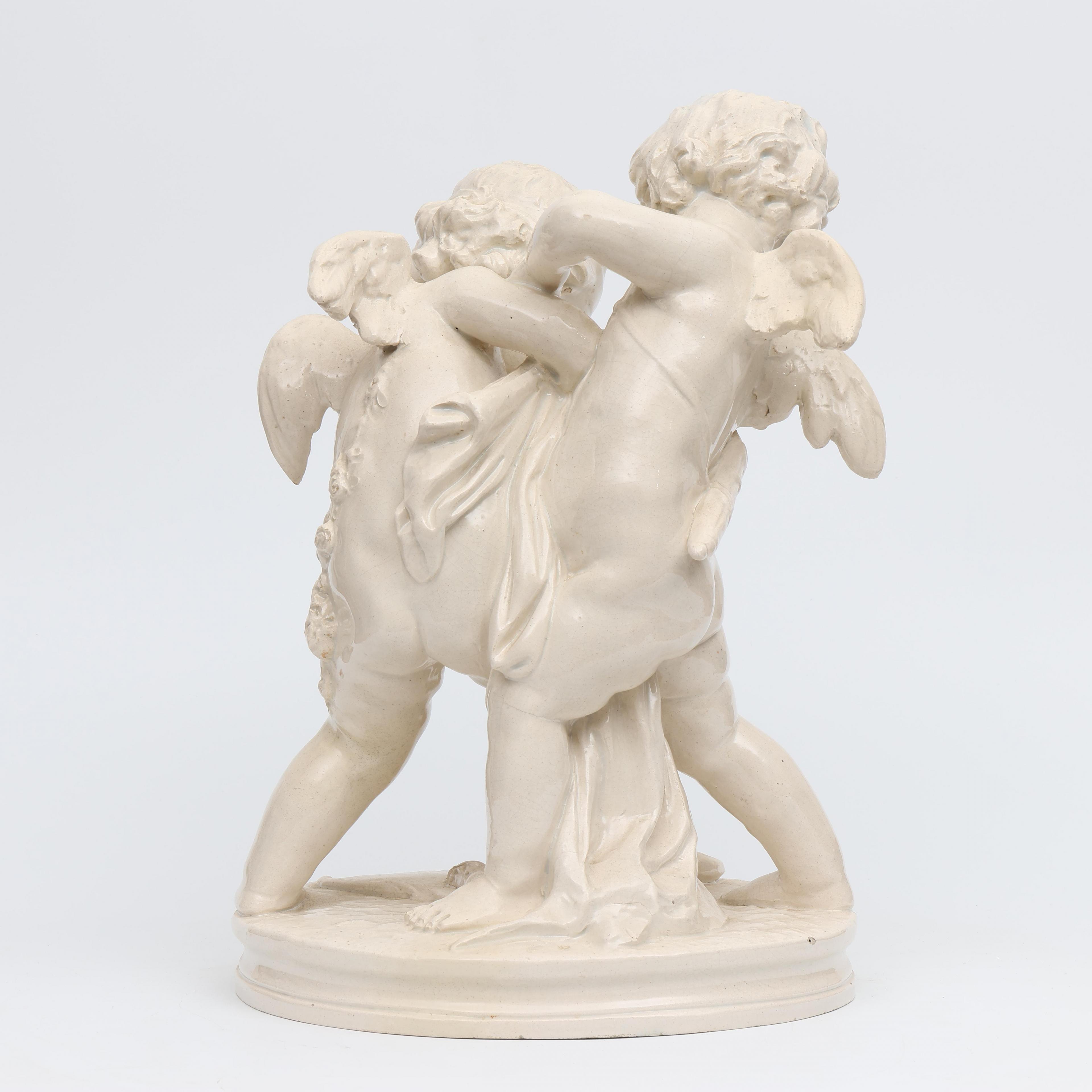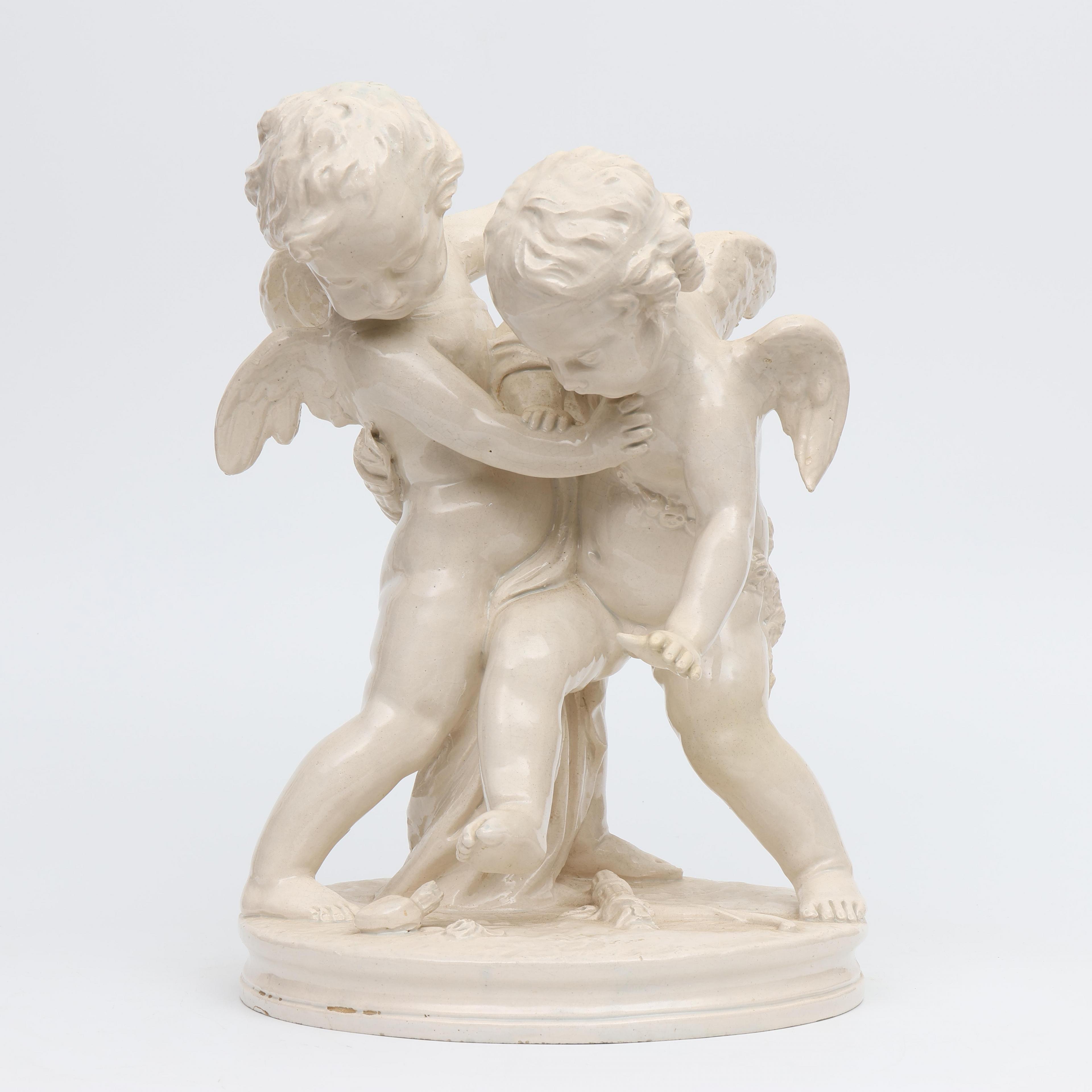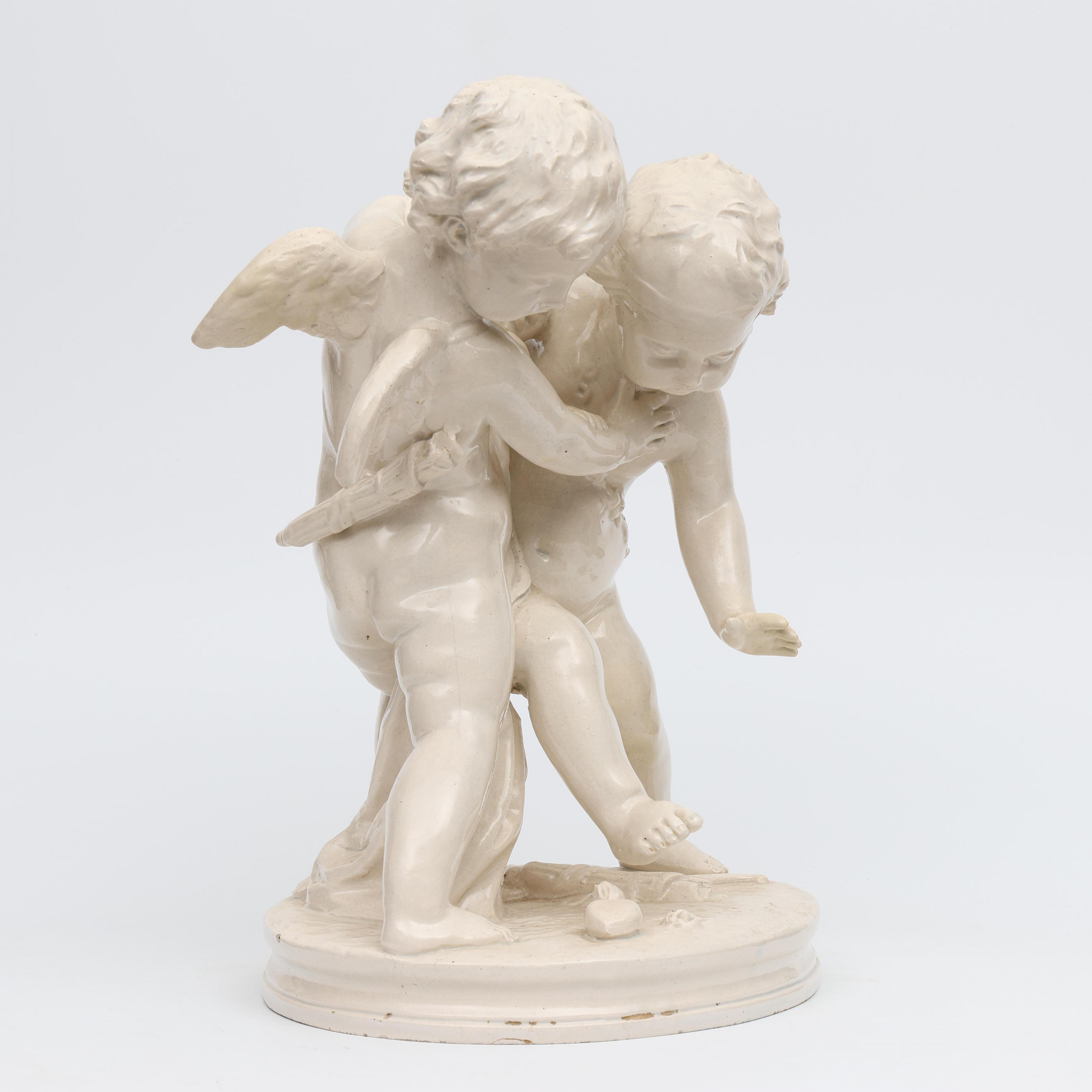 Italië, wit aardewerk vormstuk, putti vechtend om hart, circa 1900;