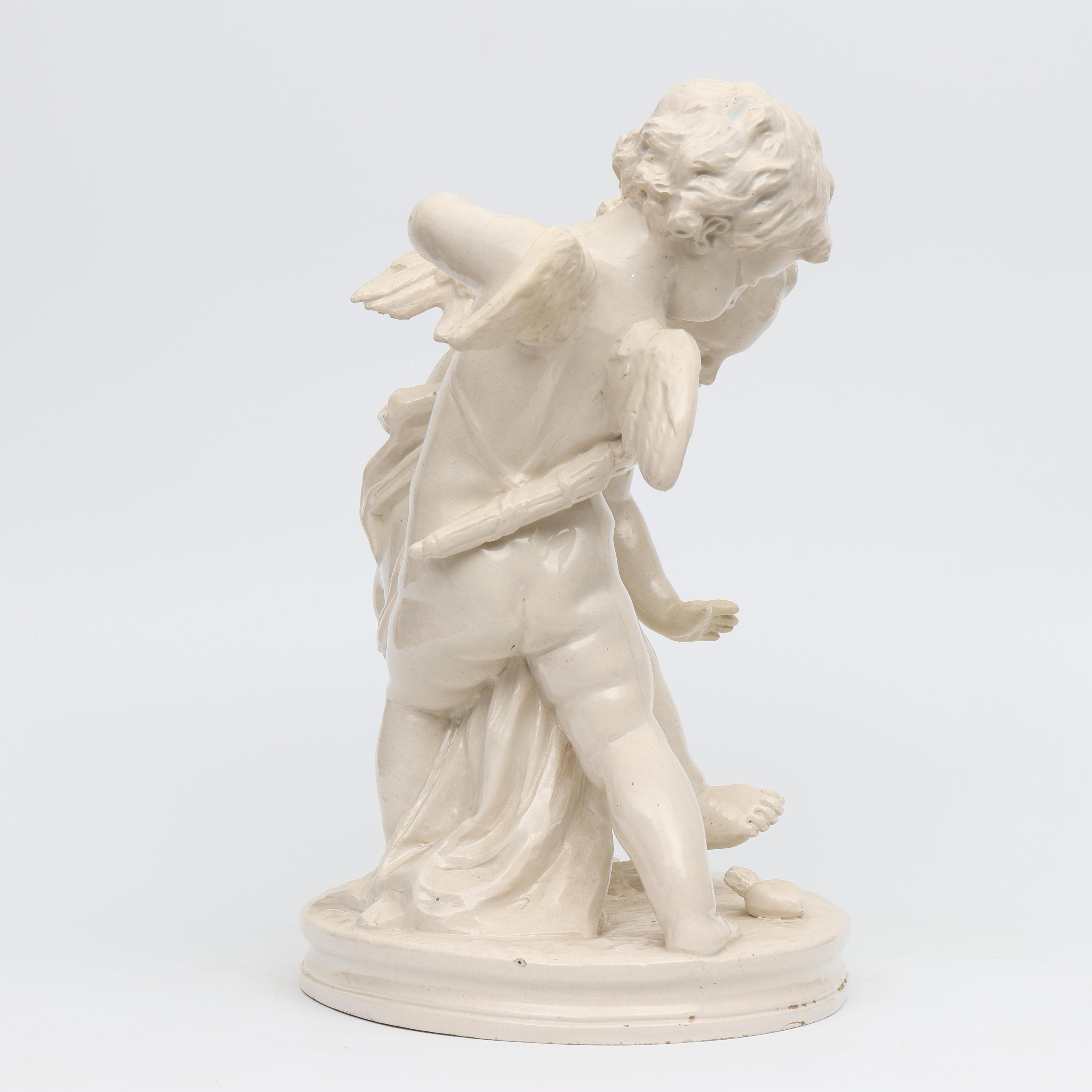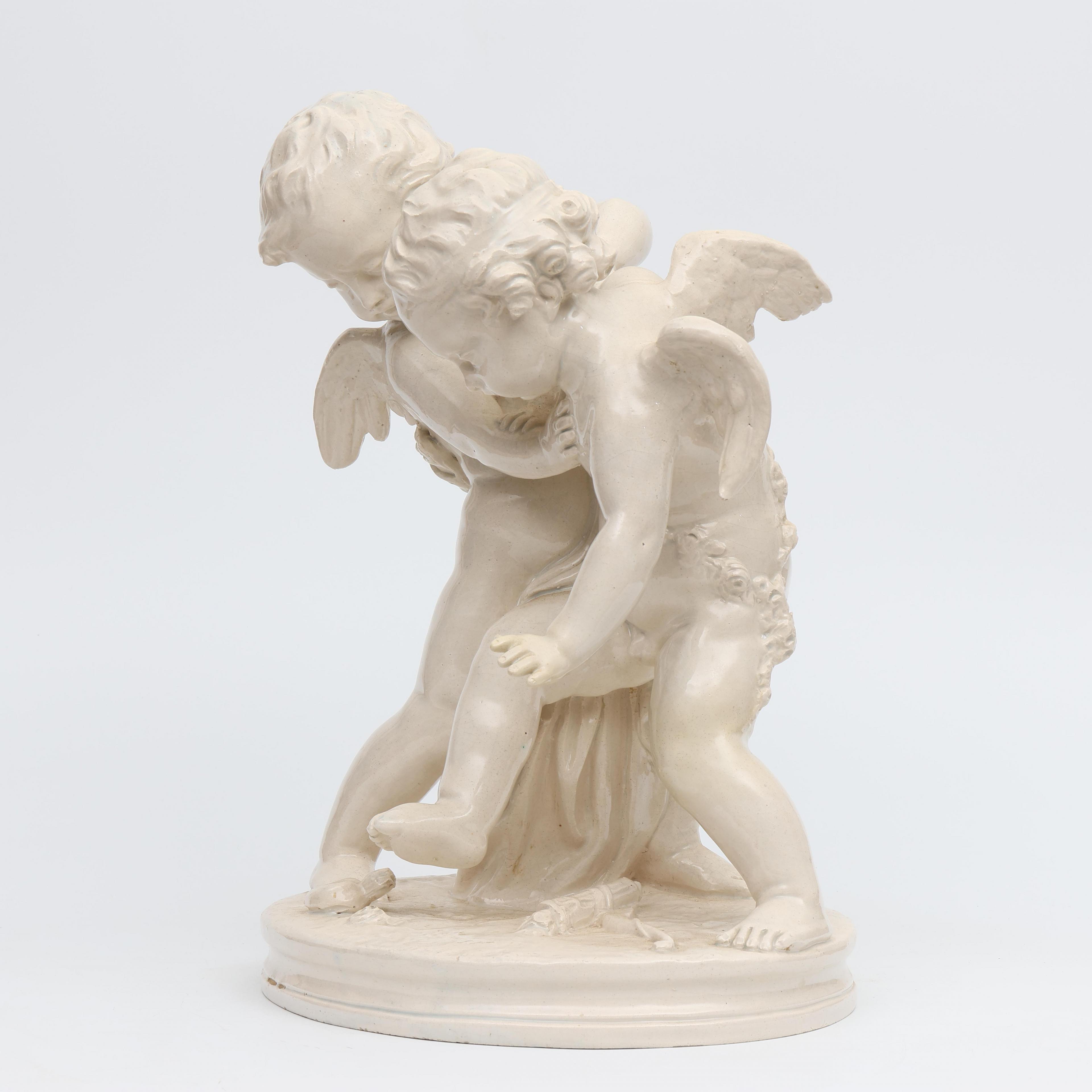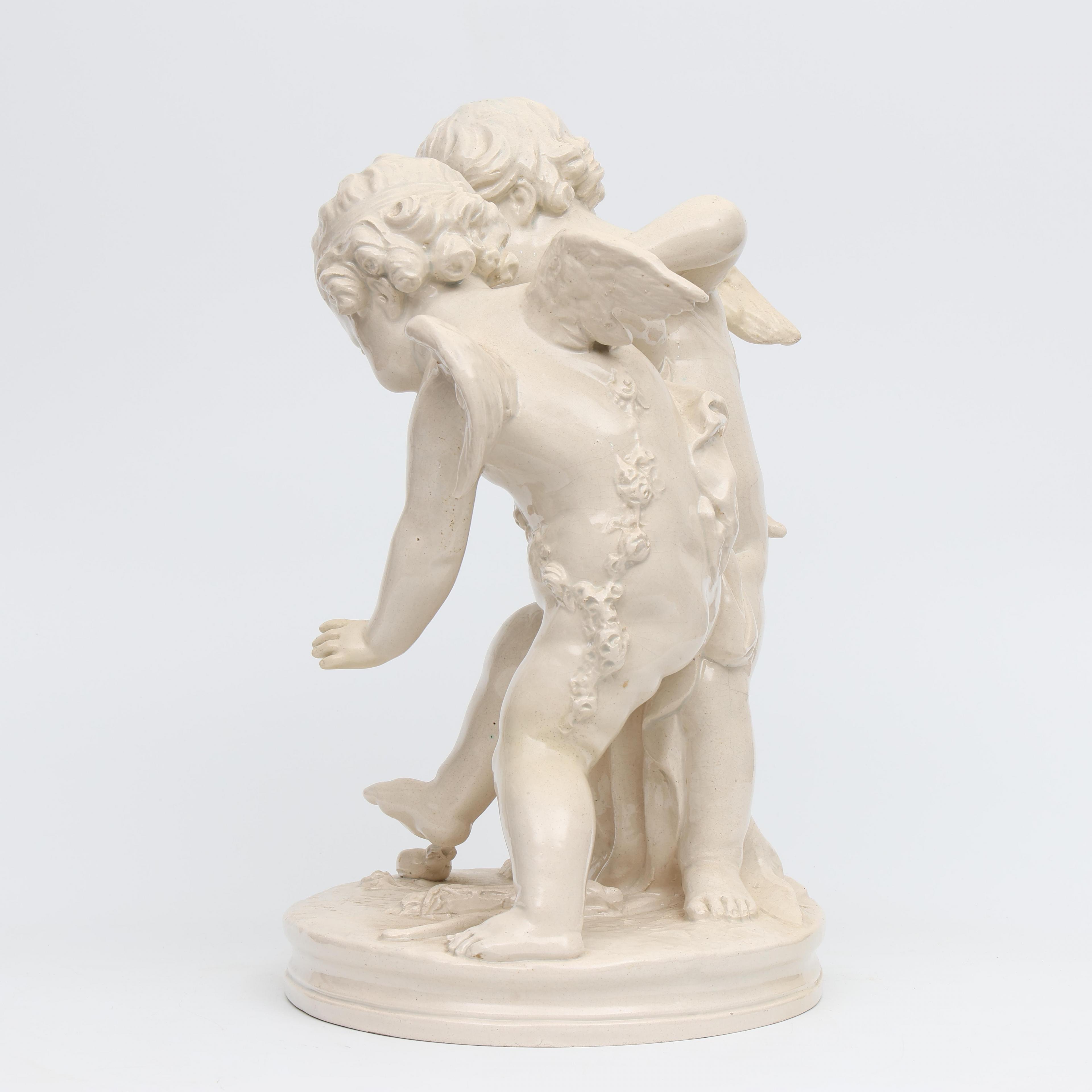 Italië, wit aardewerk vormstuk, putti vechtend om hart, circa 1900;
