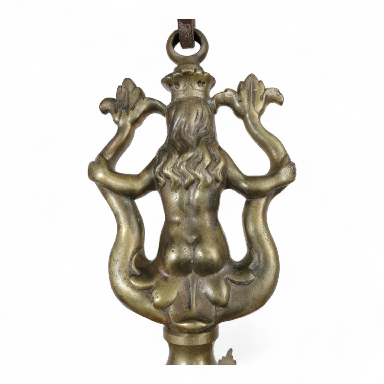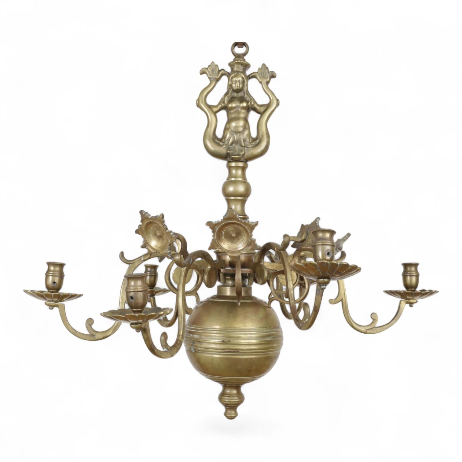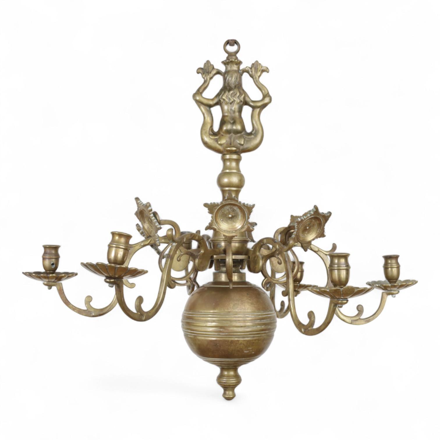 Messing zeslichts kaarsenbolkroon, 18e eeuw,