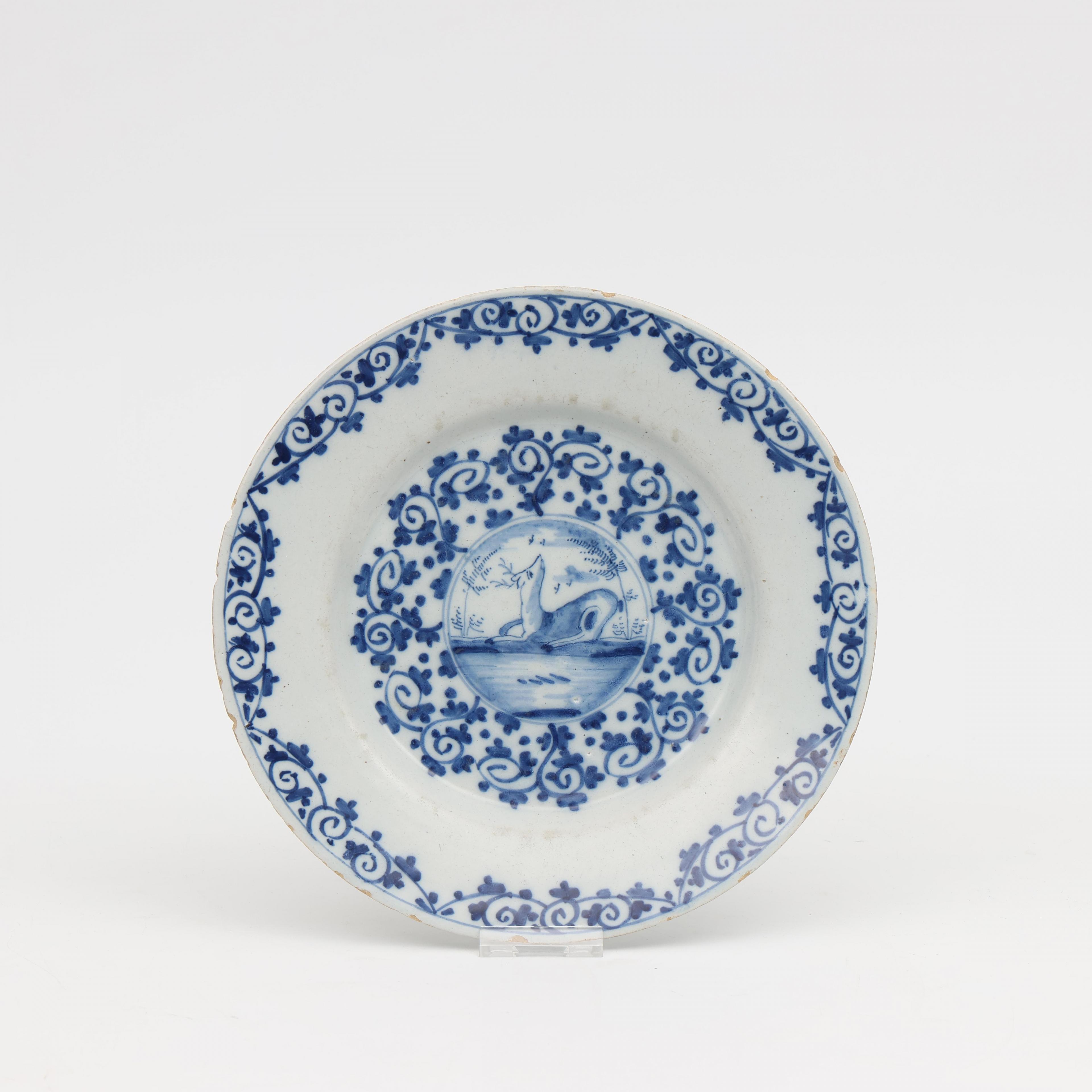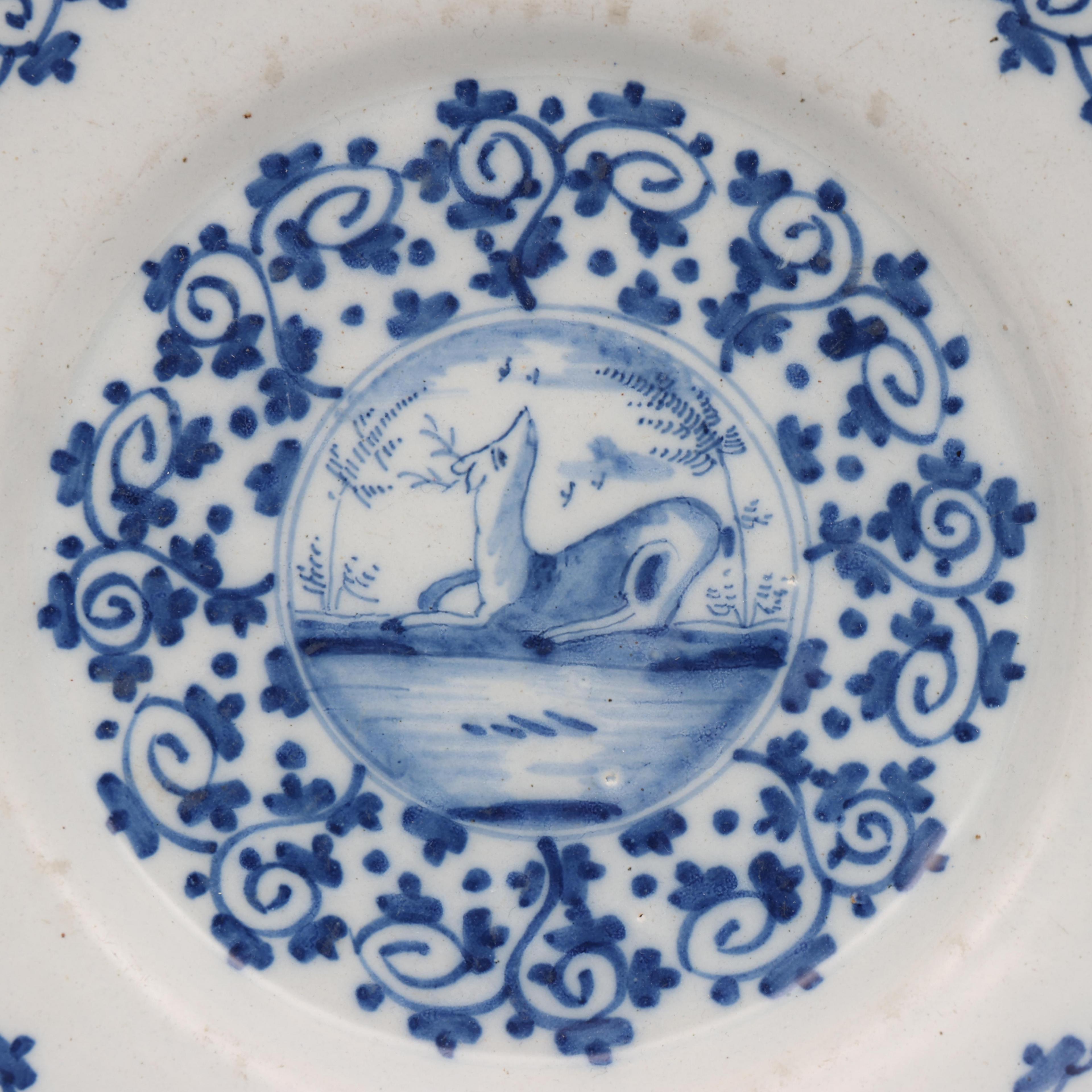 Delft, blauw wit aardewerk schotel, 18e eeuw;