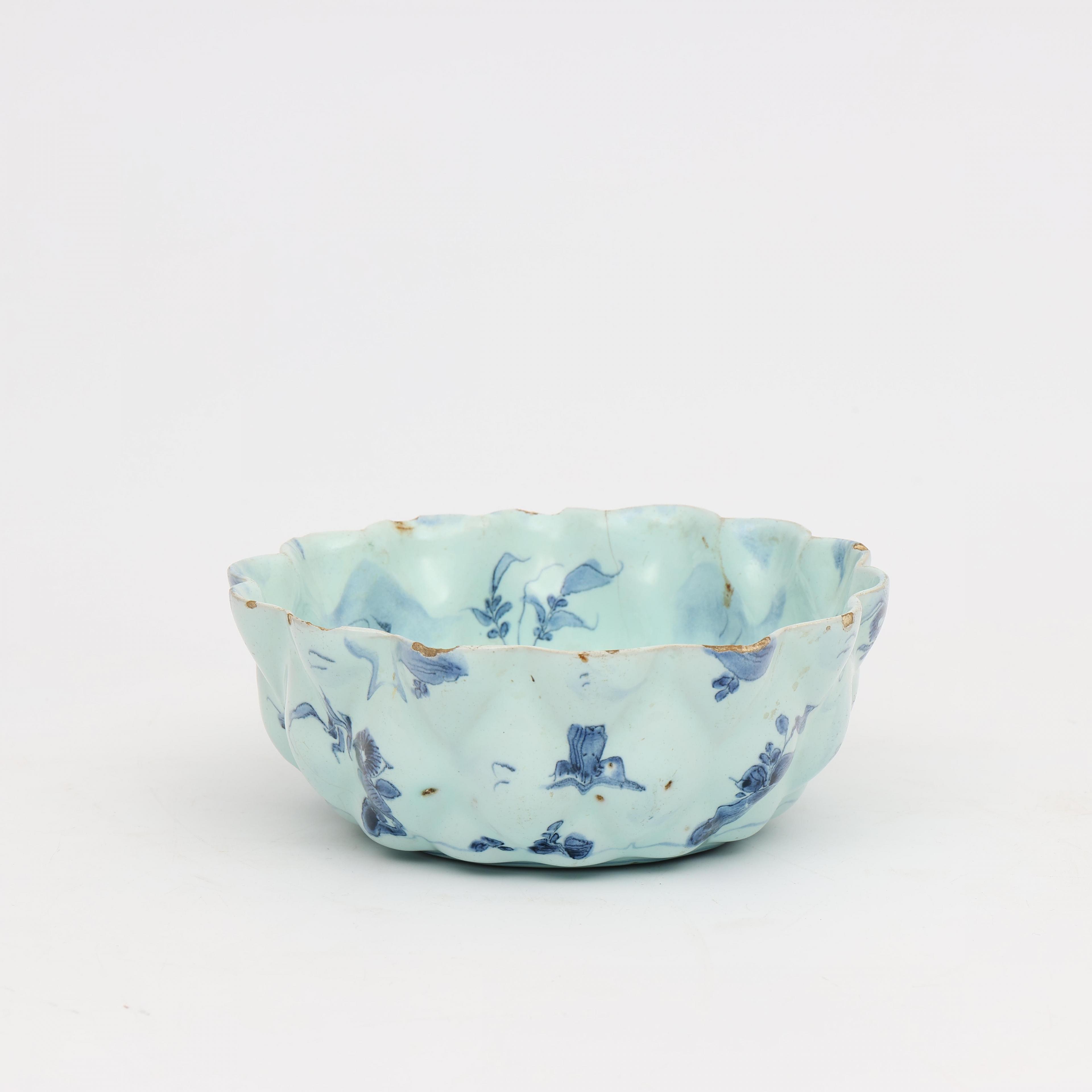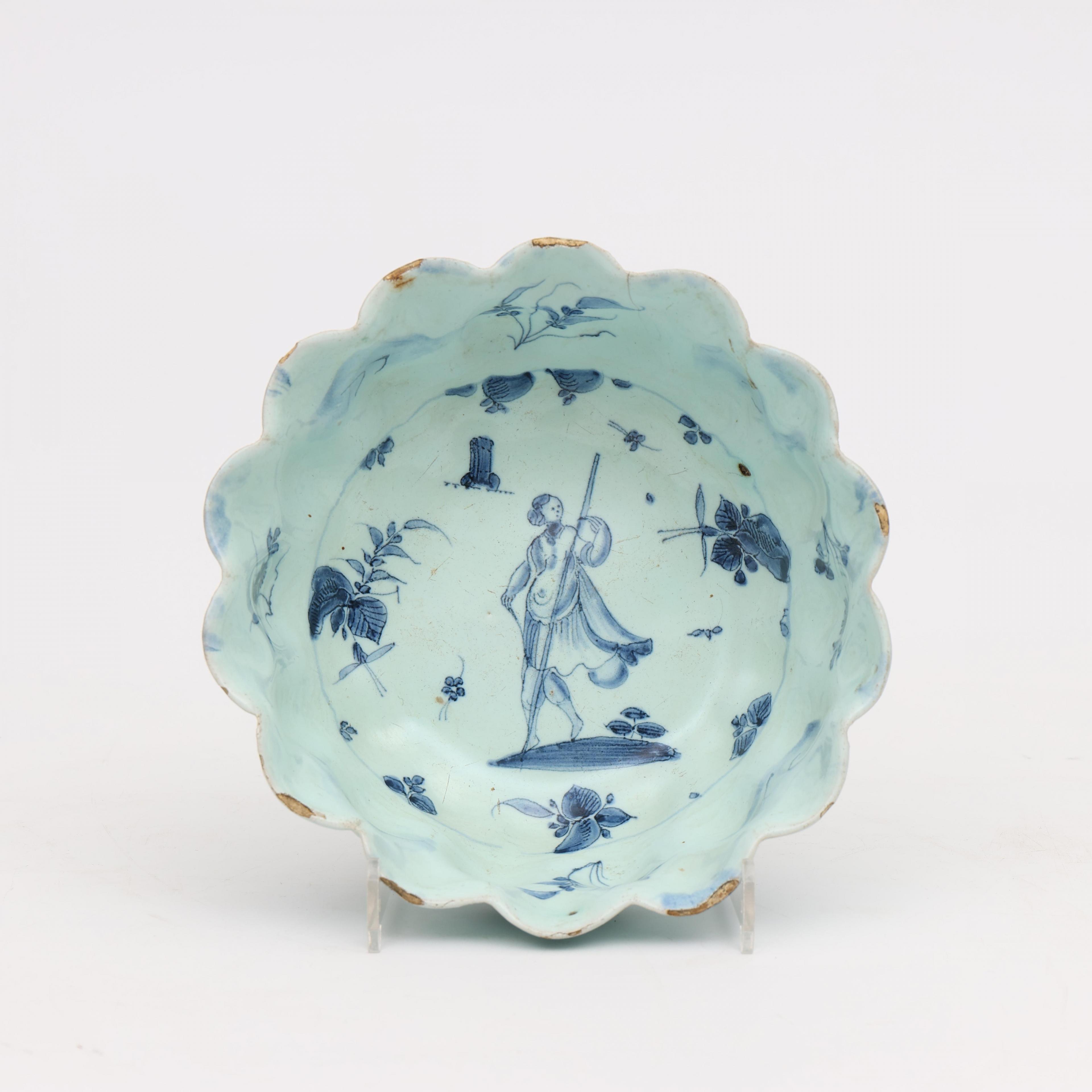 Italië, blauw wit aardewerk gelobde schaal, Savona, 18e eeuw;