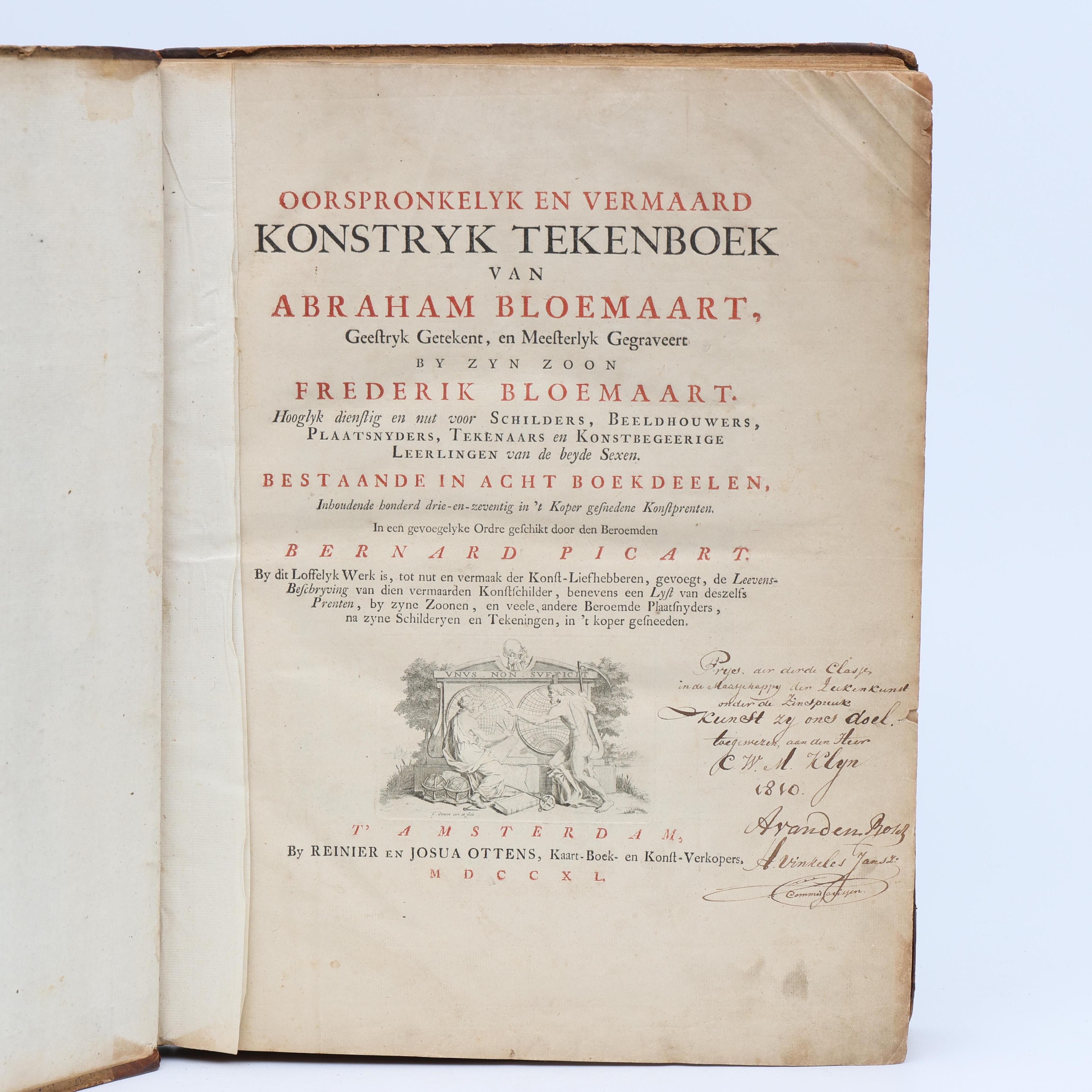 Antiquarische werk: Oorspronkelyk en Vermaard Konstryk Tekenboek van Abraham Bloemaart. Geestryk Getekent, en Meesterlyk Gegraveert by zyn zoon Frederik Bloemaart. Uitgegeven te Amsterdam by Reinier en Josua Ottens, 1740;