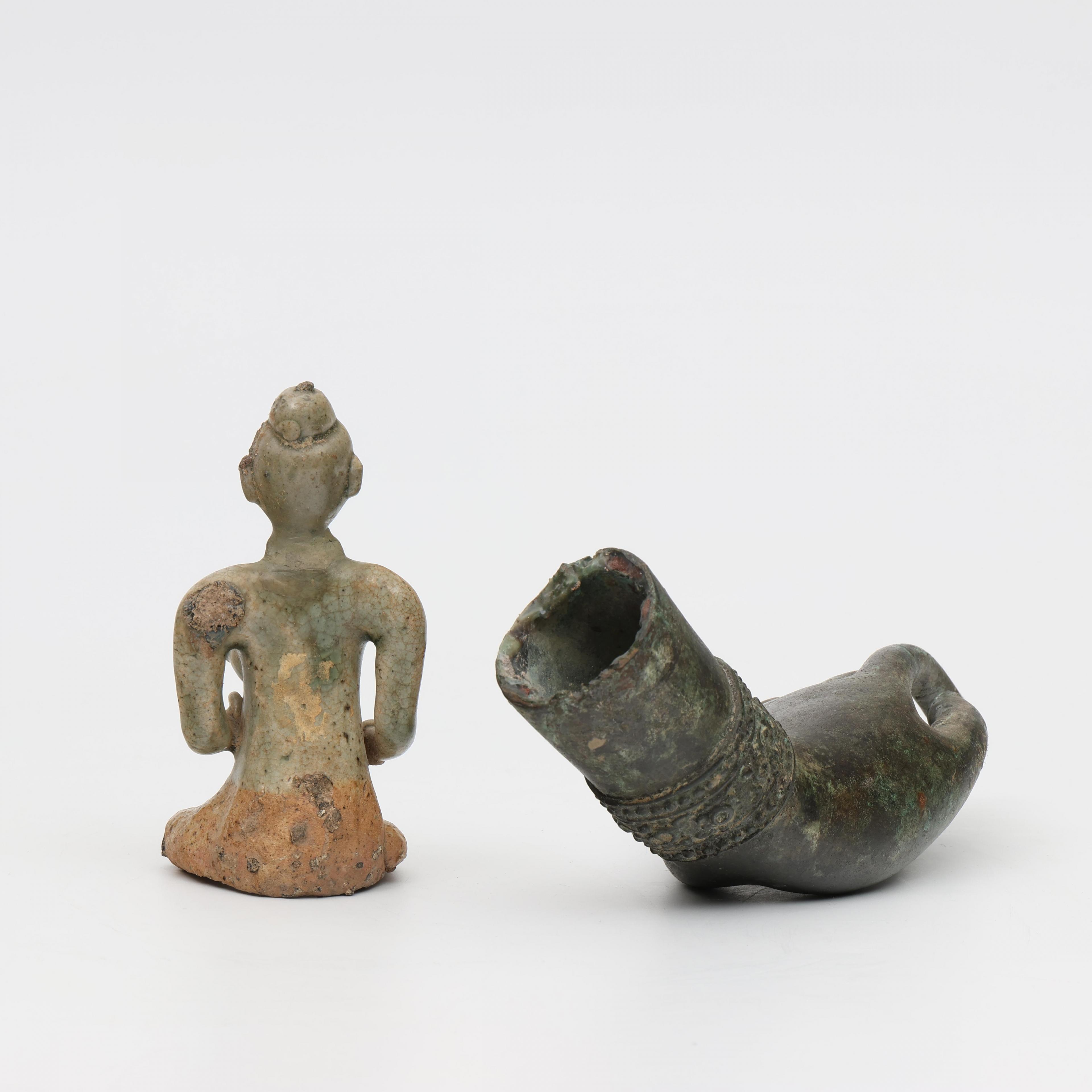 Herewith a green glazed earthenware figure.